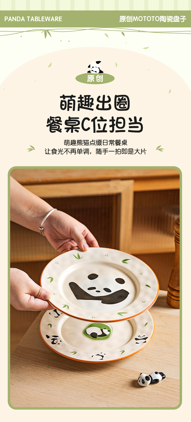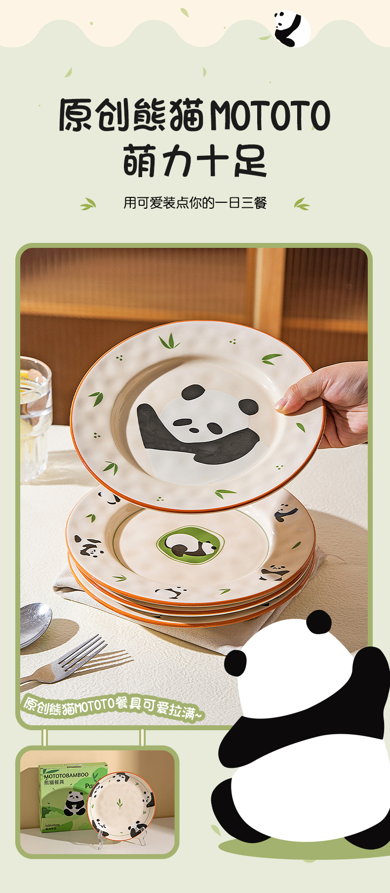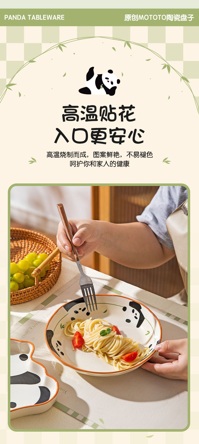 摩登主妇mototo熊猫盘子家用陶瓷菜盘2025新款餐具儿童早餐盘深盘