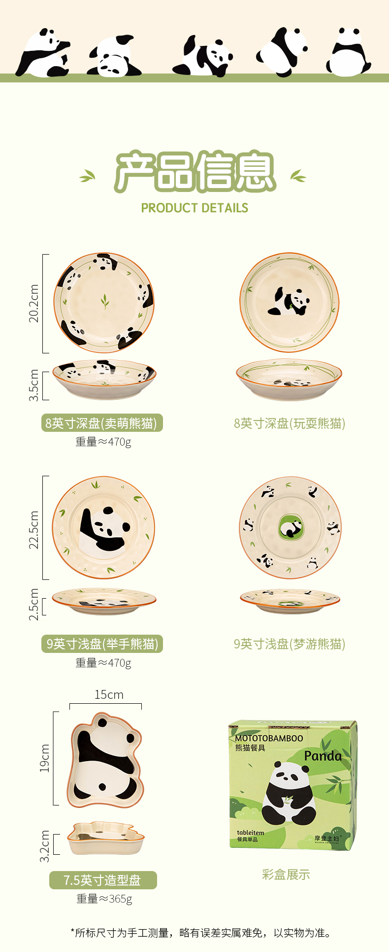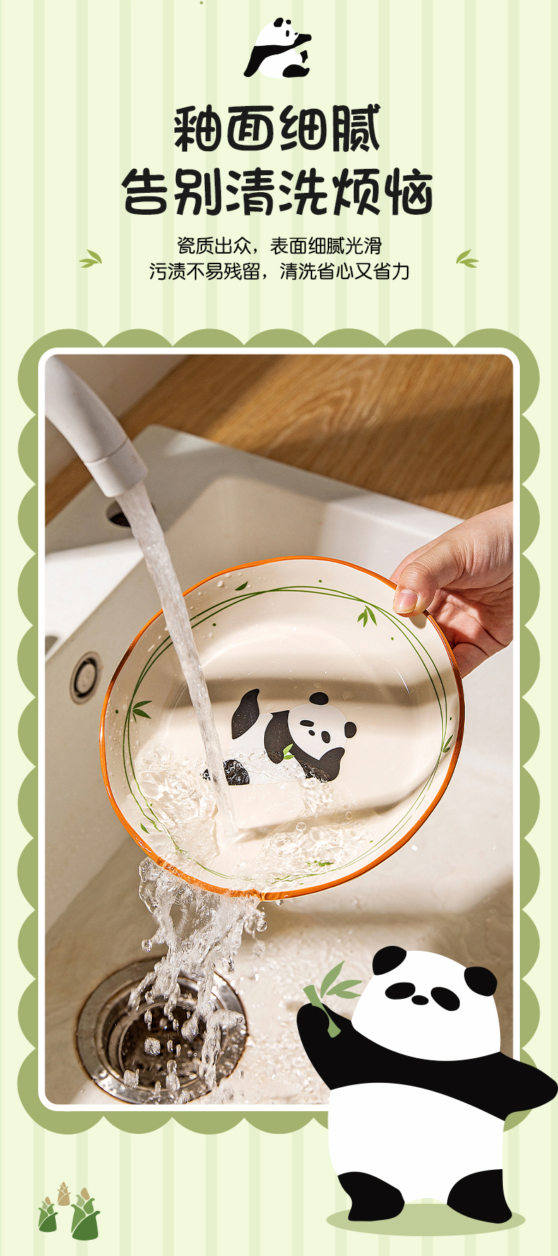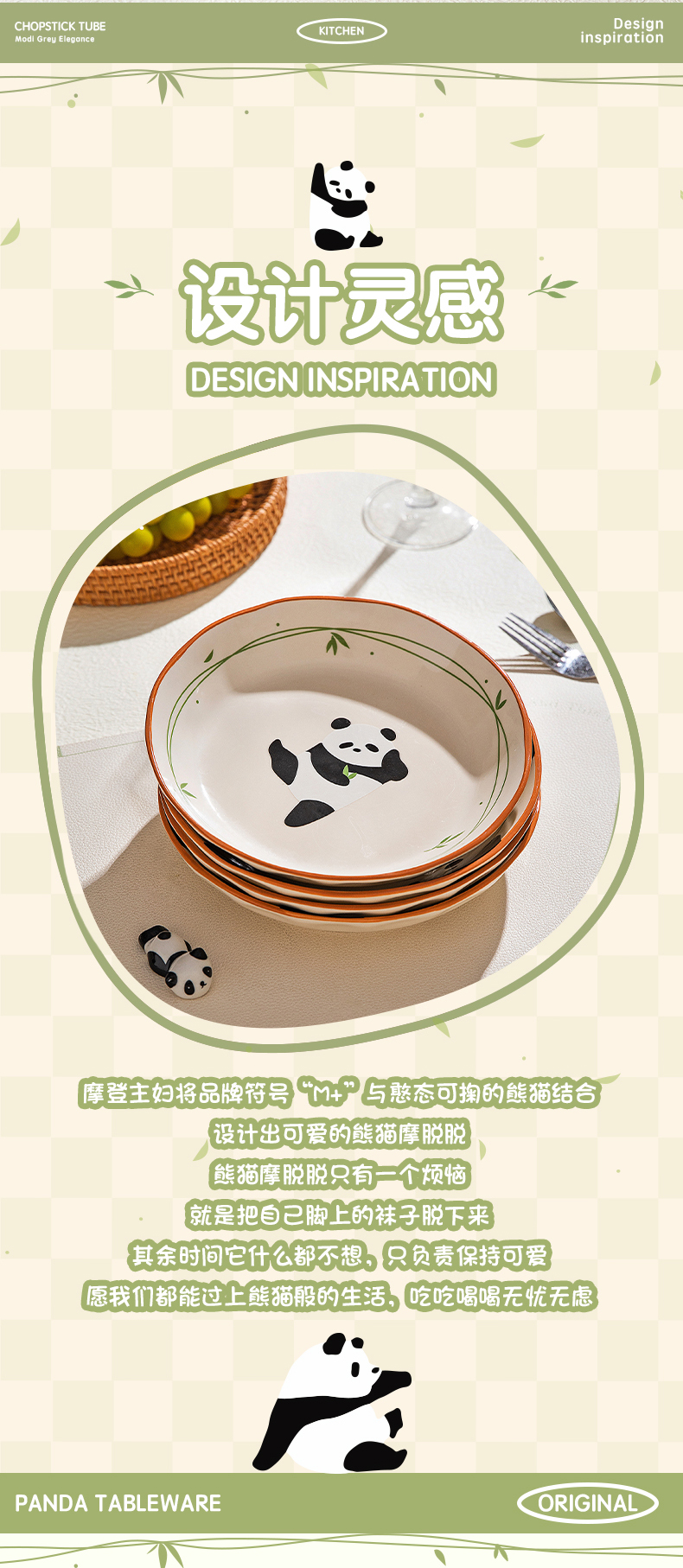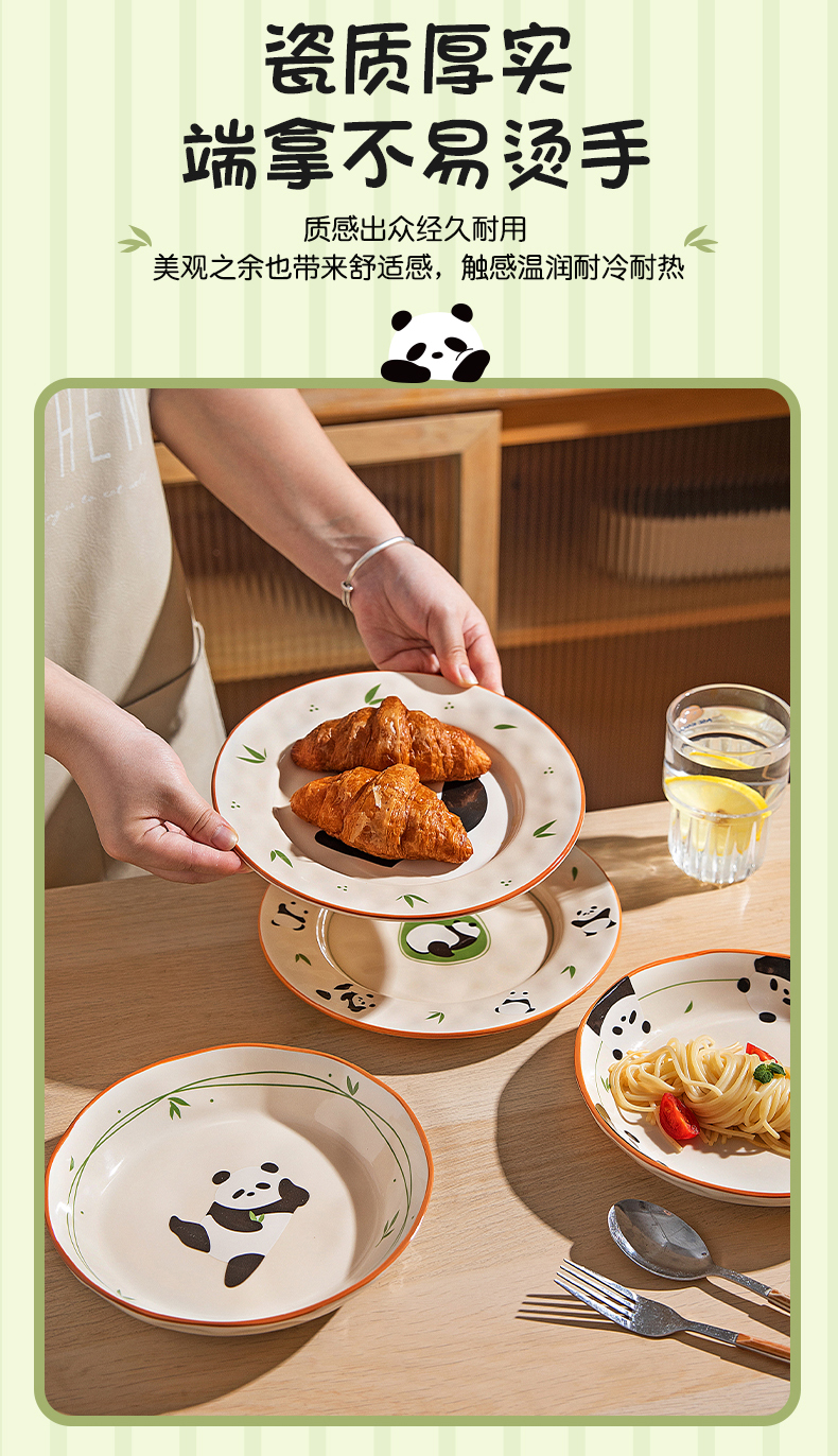 摩登主妇mototo熊猫盘子家用陶瓷菜盘2025新款餐具儿童早餐盘深盘
