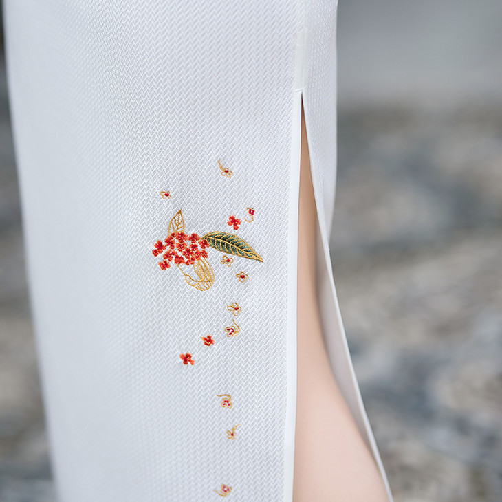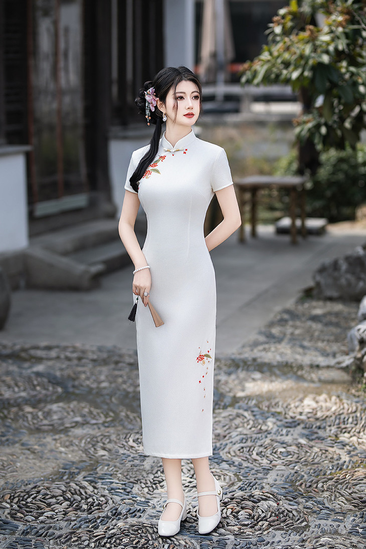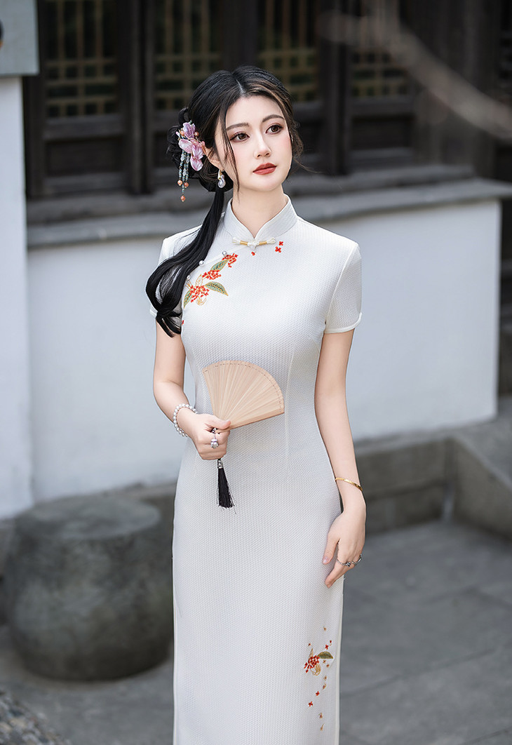 2025新款高端旗袍加绒加厚米白色LSB4162