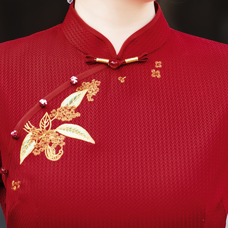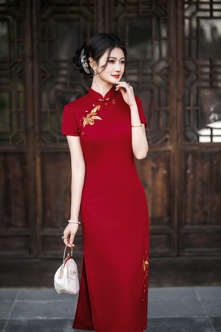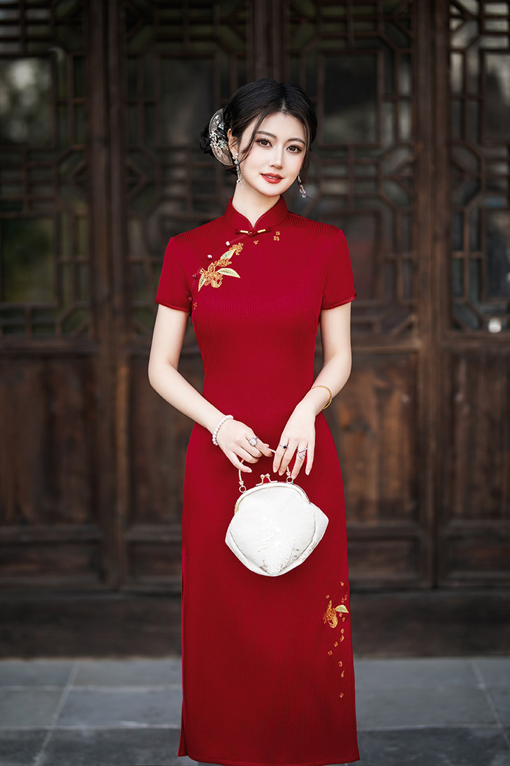 长款醋酸旗袍2025礼服敬酒宴会连衣裙高贵气质刺绣花国风新中式旗袍8150