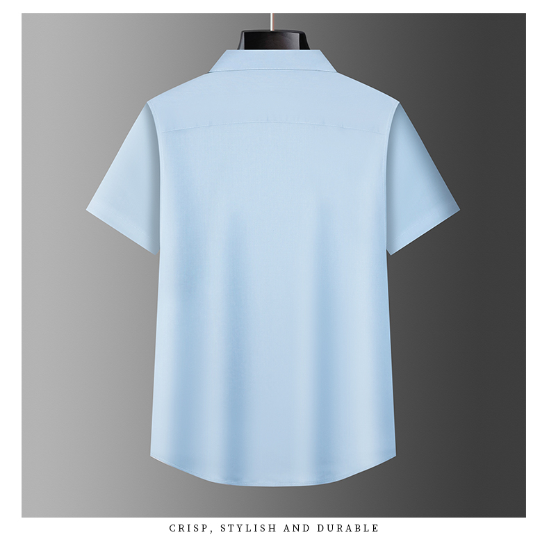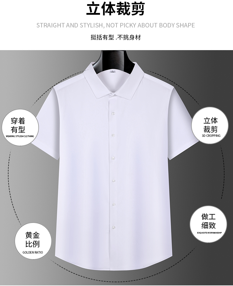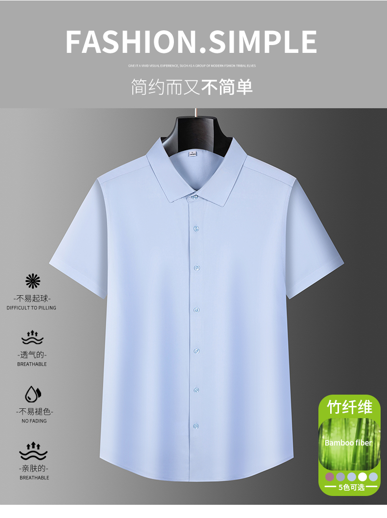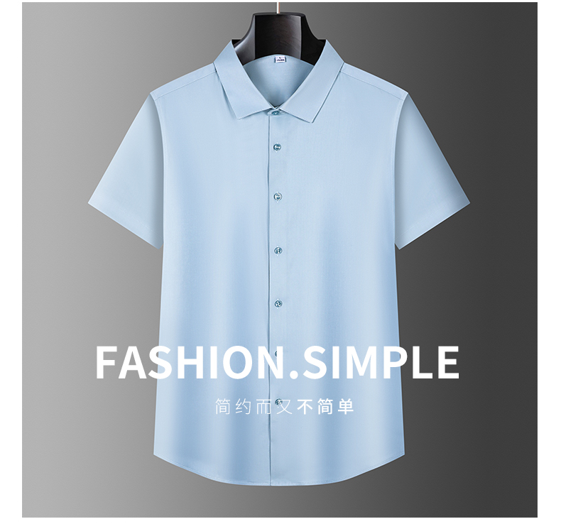 【竹纤维】【DKP】大依优型大码短袖衬衫翻领休闲纯色半袖男宽松商务上衣胖子加肥加大