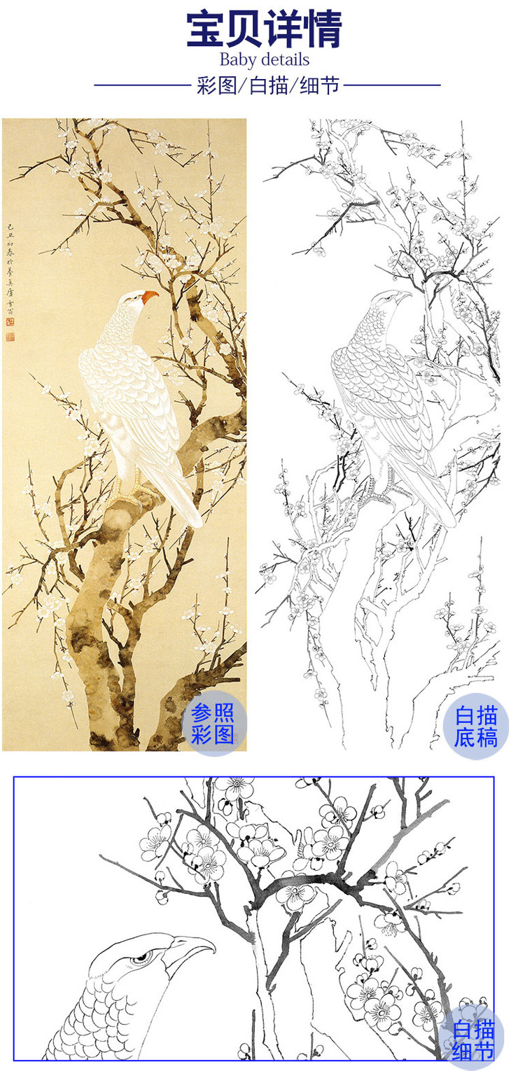 陈之佛竖幅工笔花鸟白描底稿-梅树白鹰-QA33