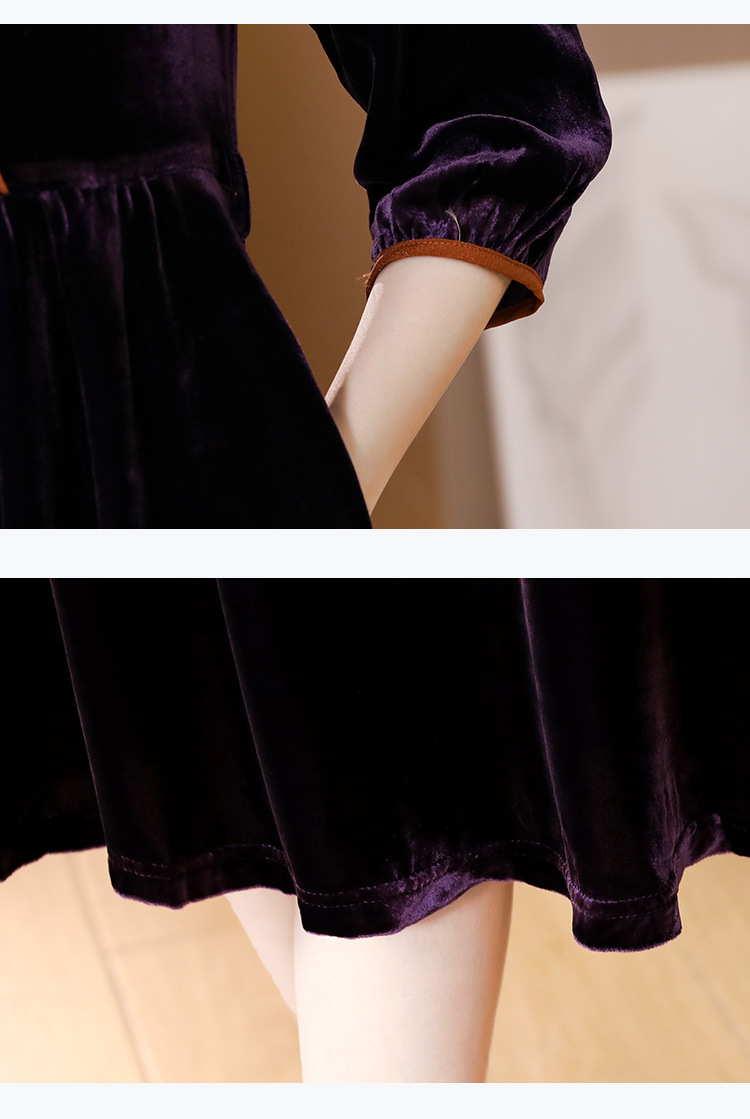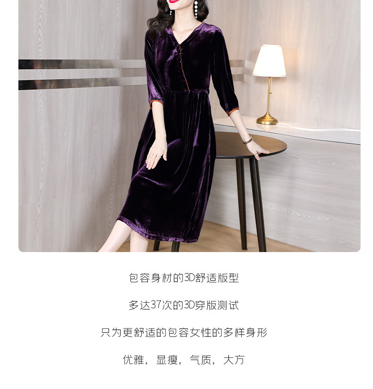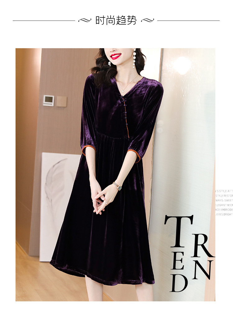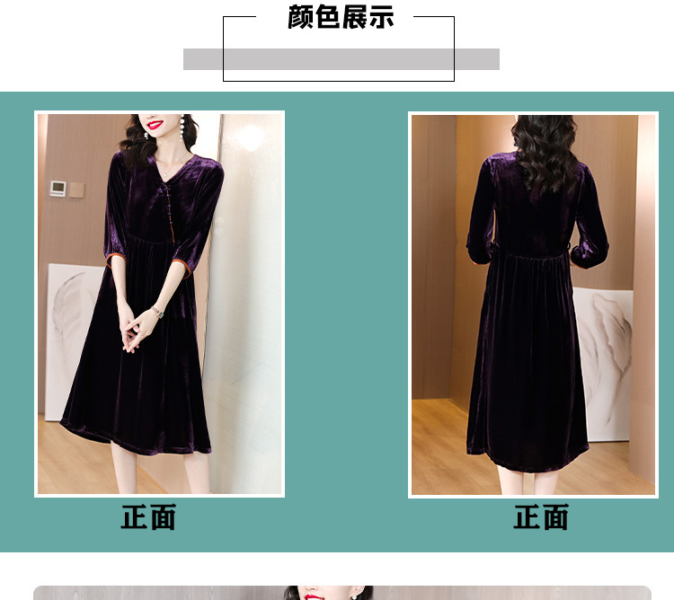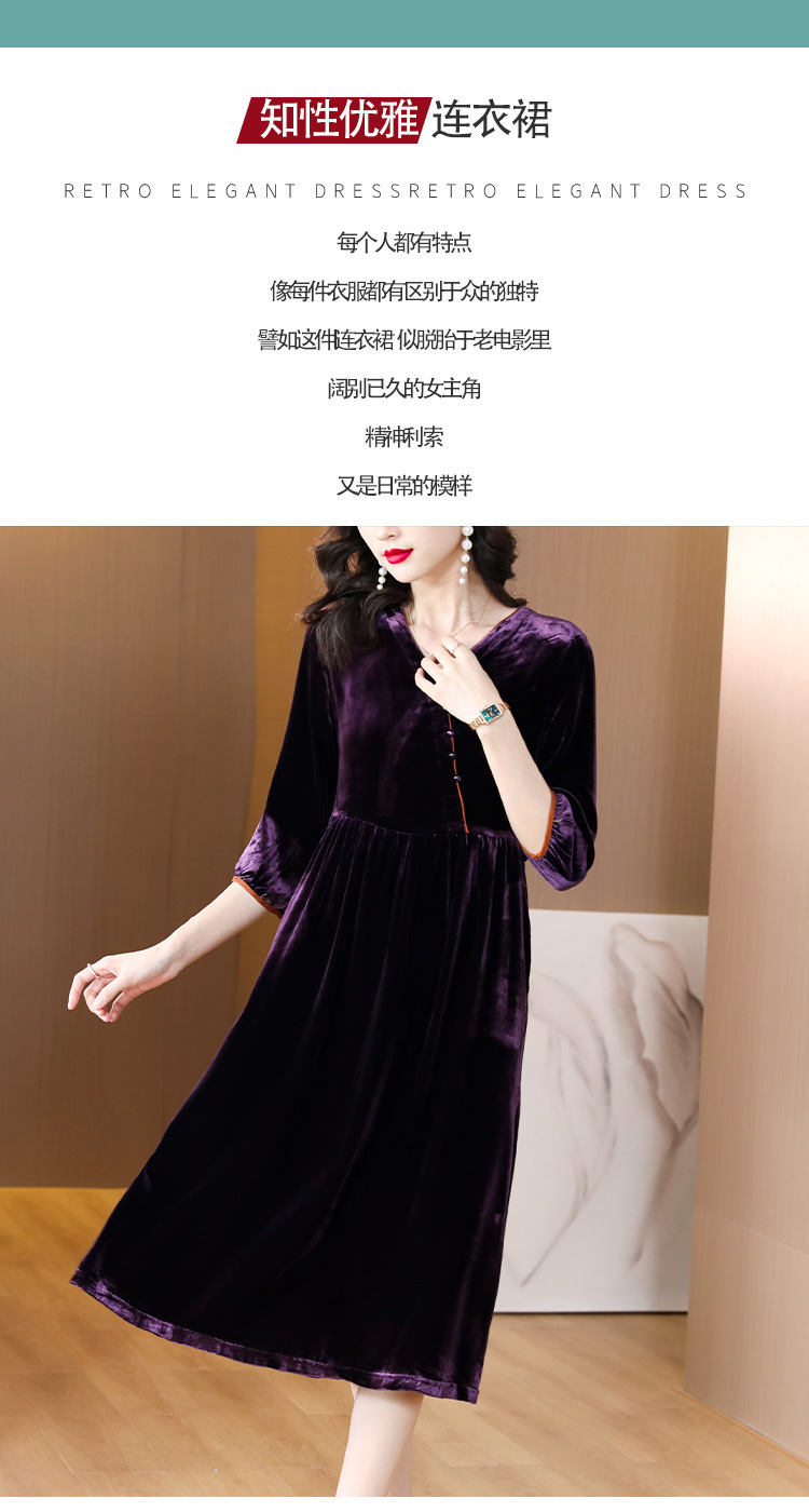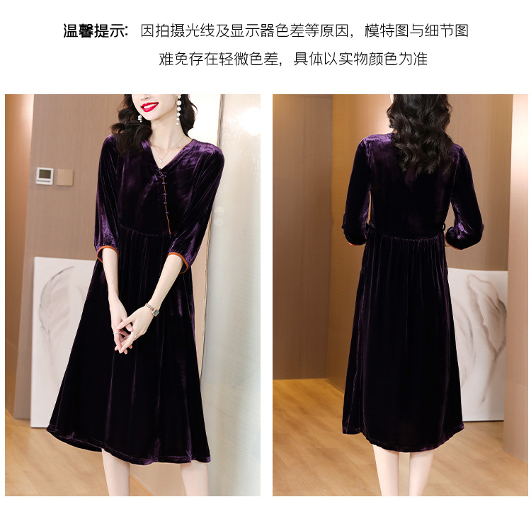 AHM lry4205复古V领金丝绒连衣裙优雅国风中长裙 商品图4