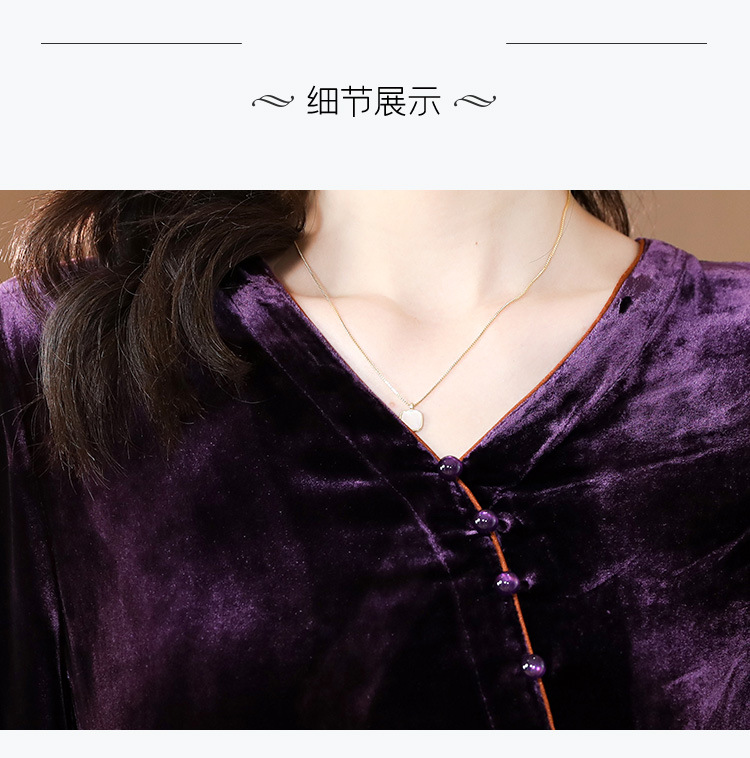 AHM lry4205复古V领金丝绒连衣裙优雅国风中长裙 商品图2