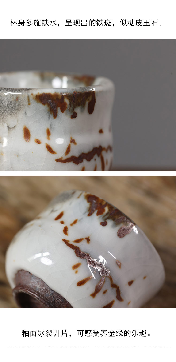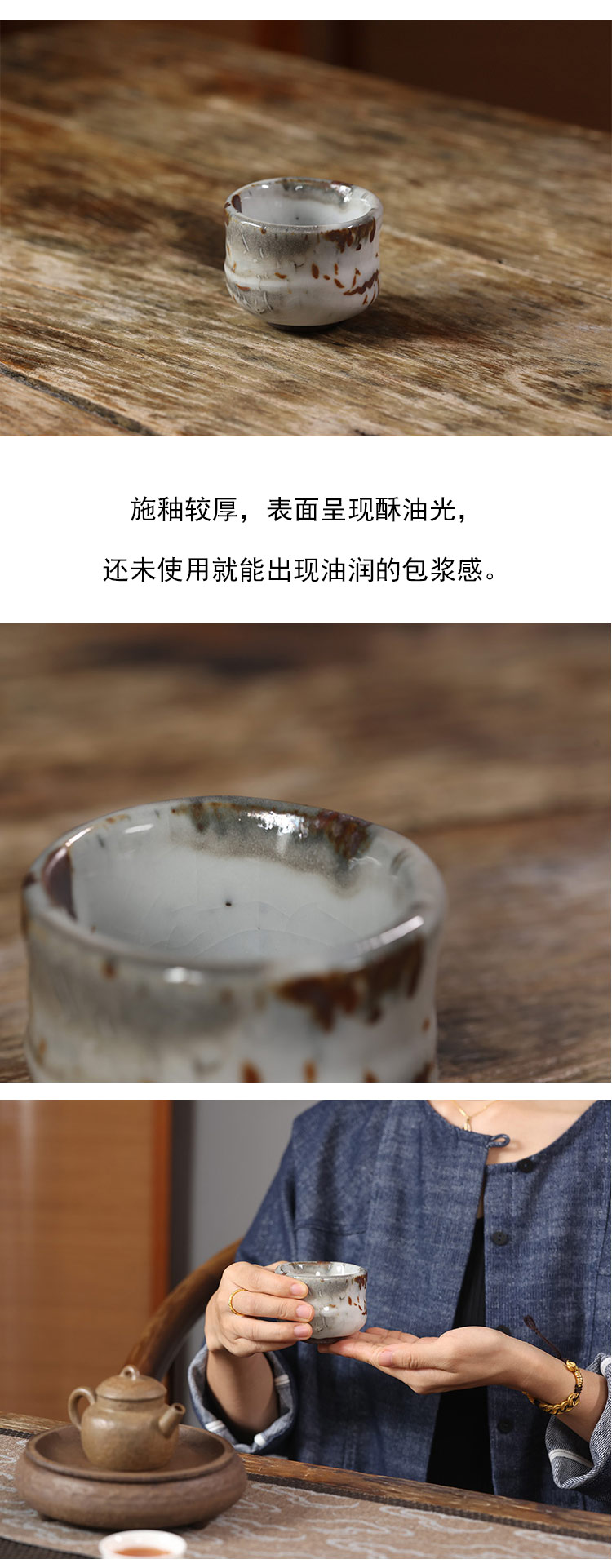 茶香记 蒙涛 铁斑志野杯 手捏杯 酥油光 冰裂开片 釉面丰富 主人杯