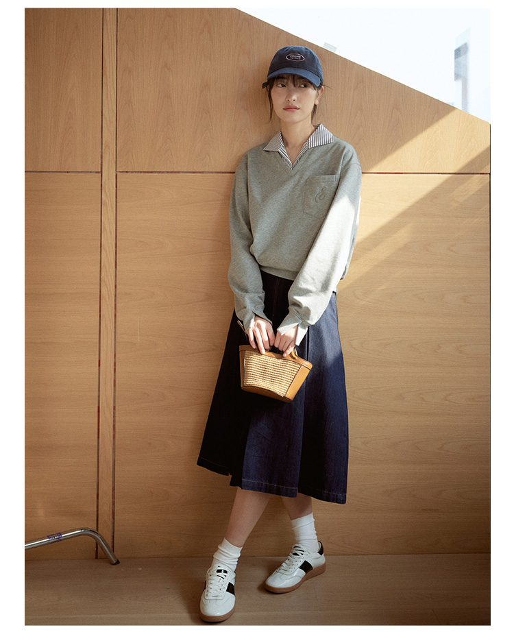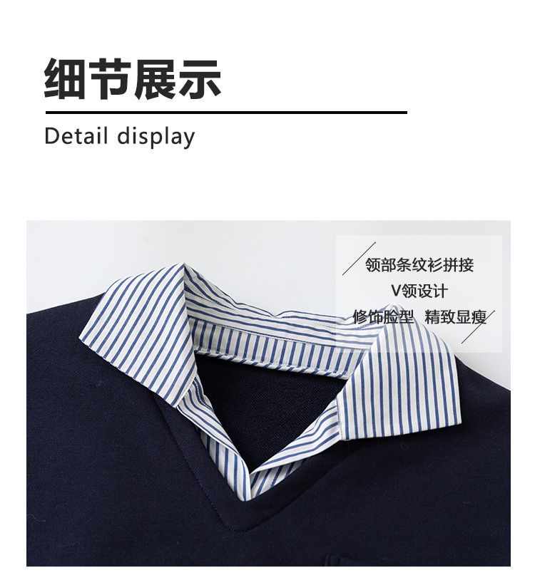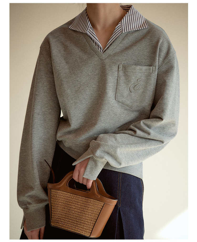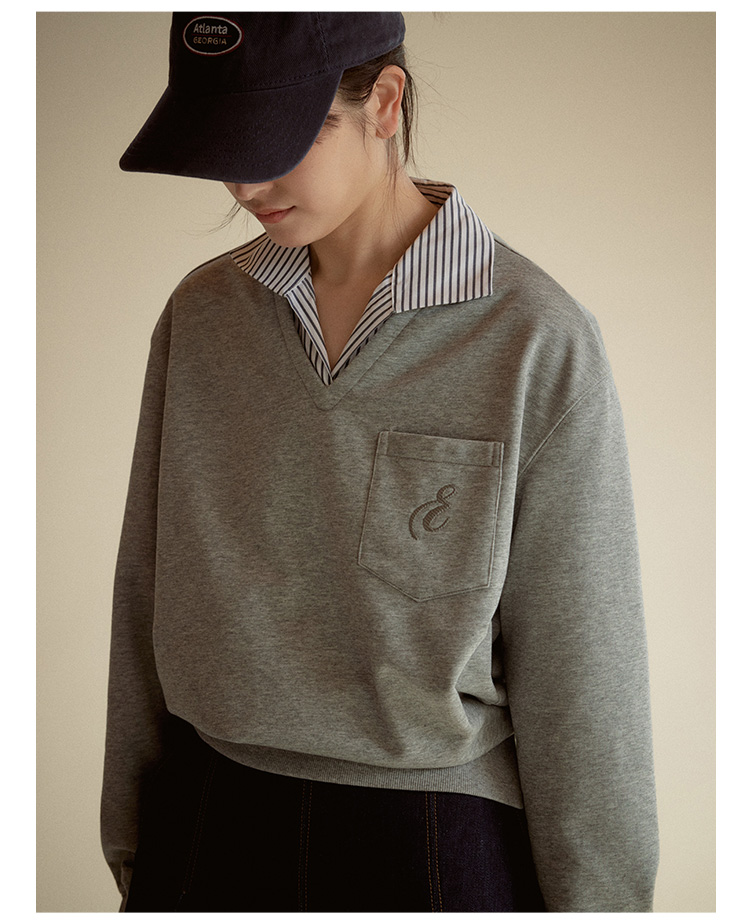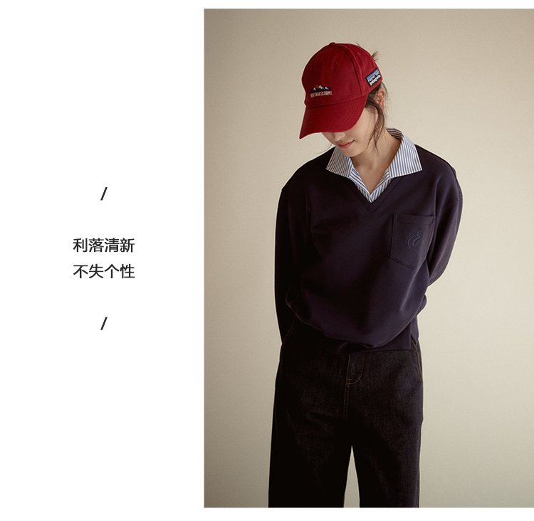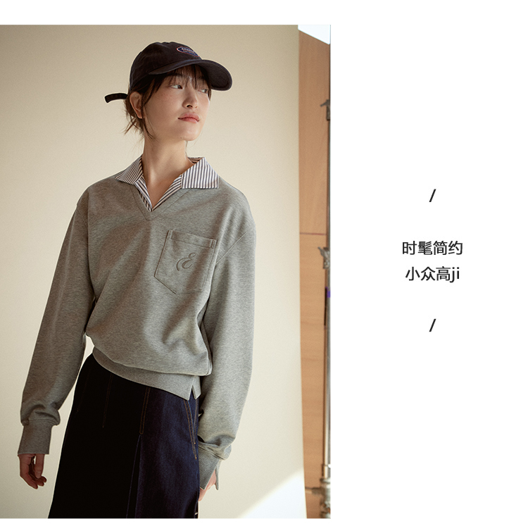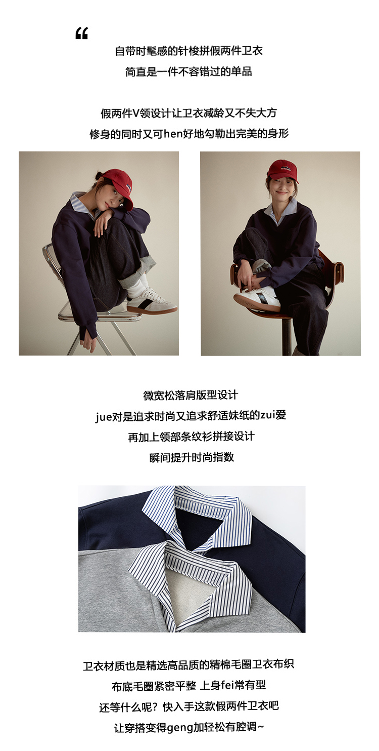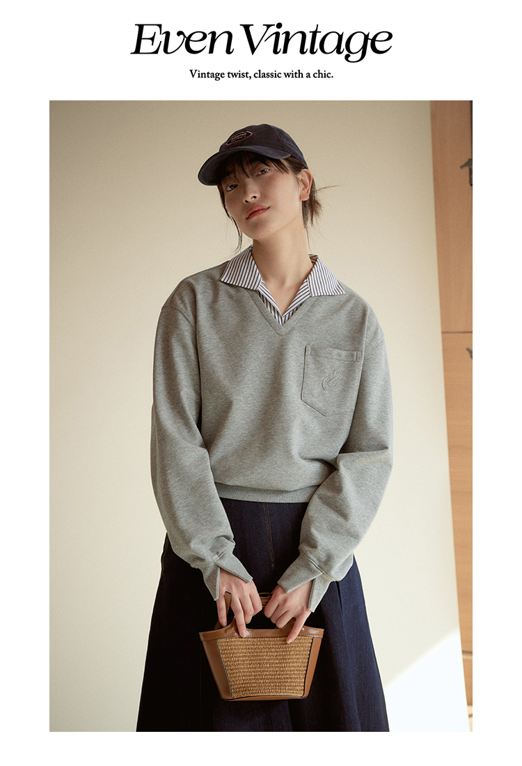 Even Vintage|秋季叠穿感 拼接条纹假两件字母刺绣休闲简约卫衣女