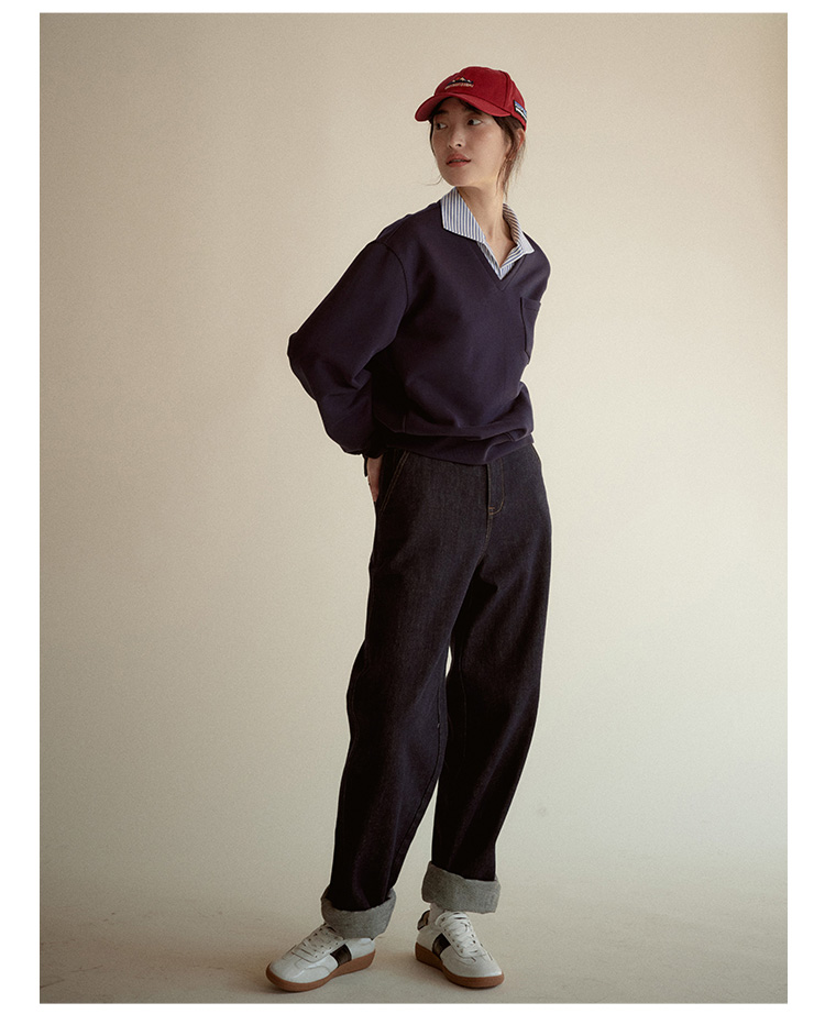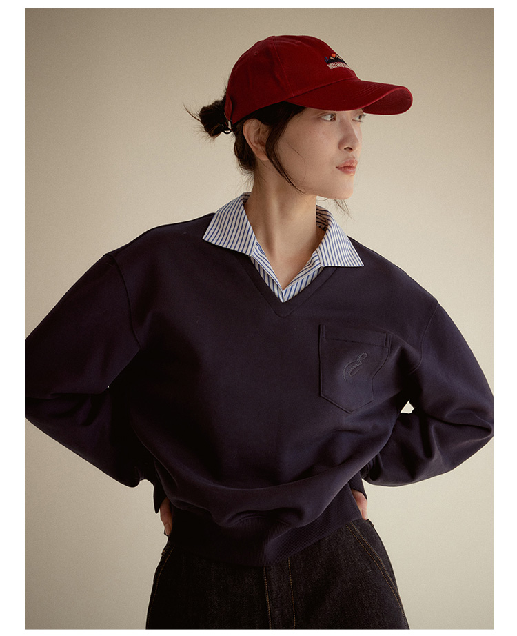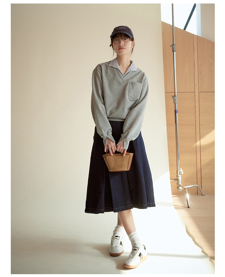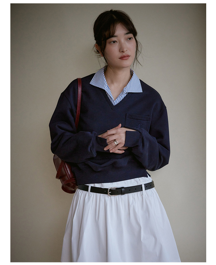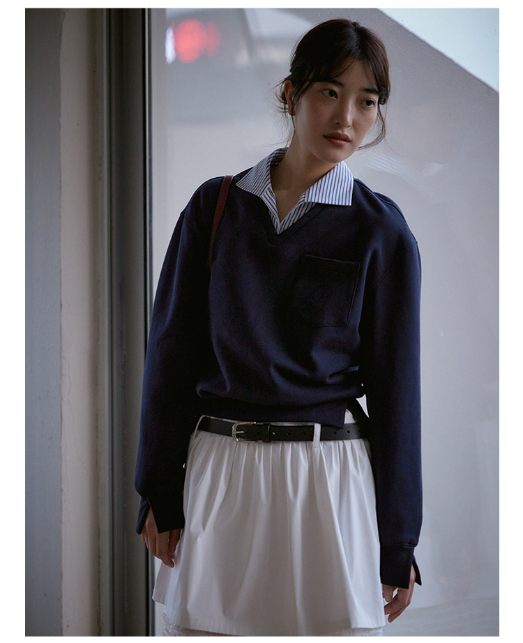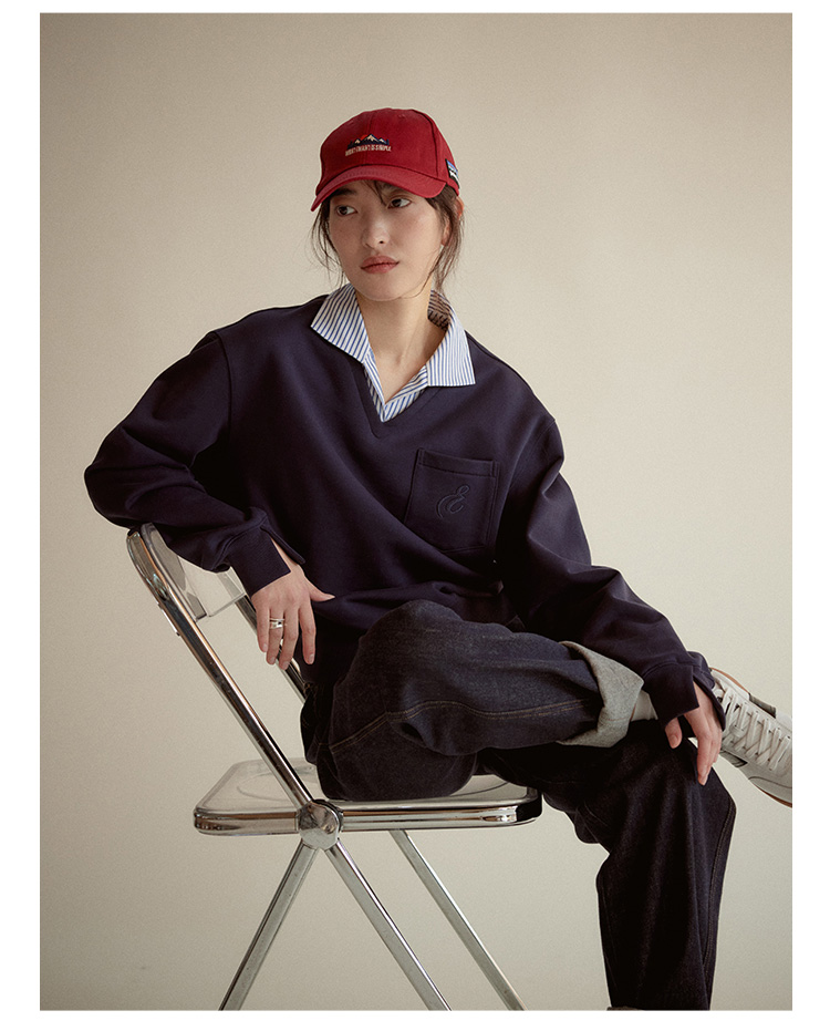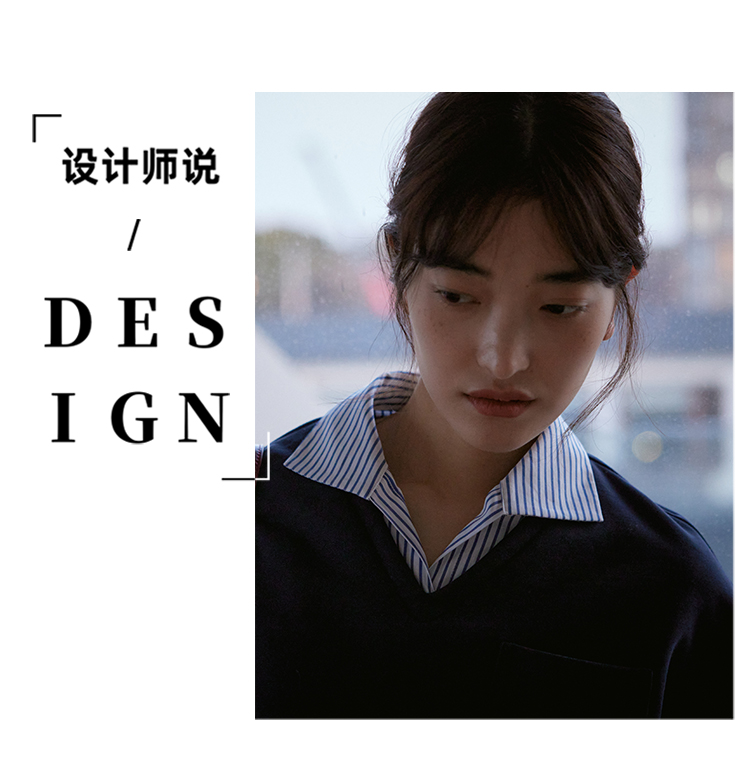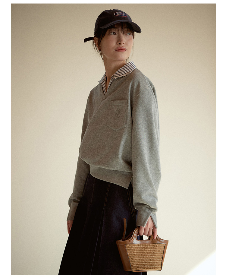 Even Vintage|秋季叠穿感 拼接条纹假两件字母刺绣休闲简约卫衣女