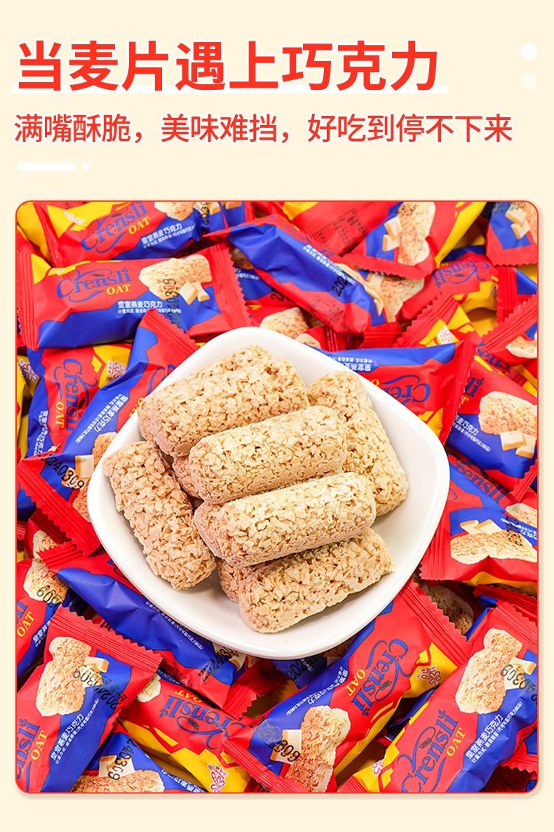 【浓郁麦香!酥酥脆脆】燕麦巧克力早餐营养麦片酥零食喜糖休闲糖果能量棒.xb