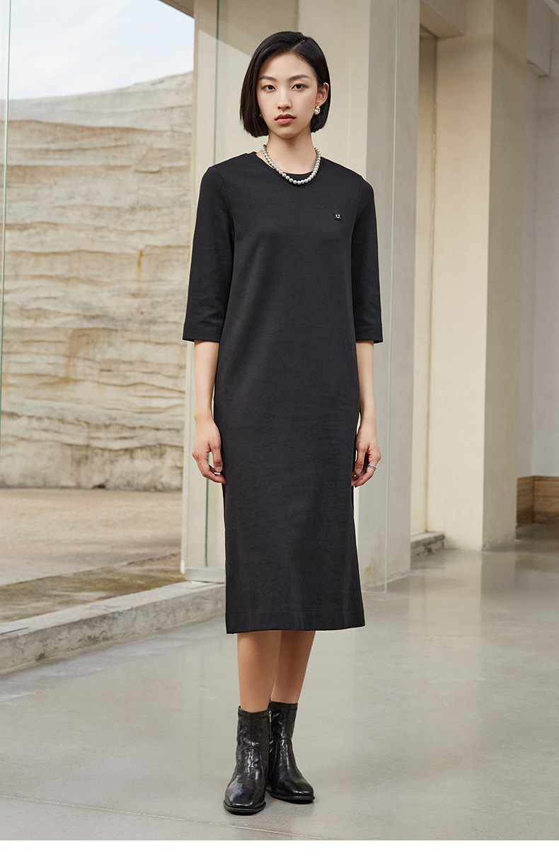 极简魅力!黑色中袖连衣裙,诠释低调高级感