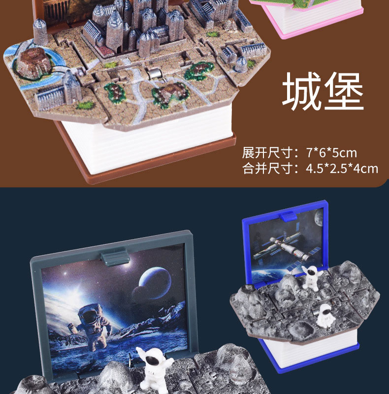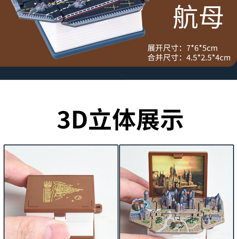 【3D立体折叠弹爆书钥匙扣】可折叠的天安门航空母舰挂件玩具 恐龙熊猫城堡圣诞迷你钥匙扣件小饰品
