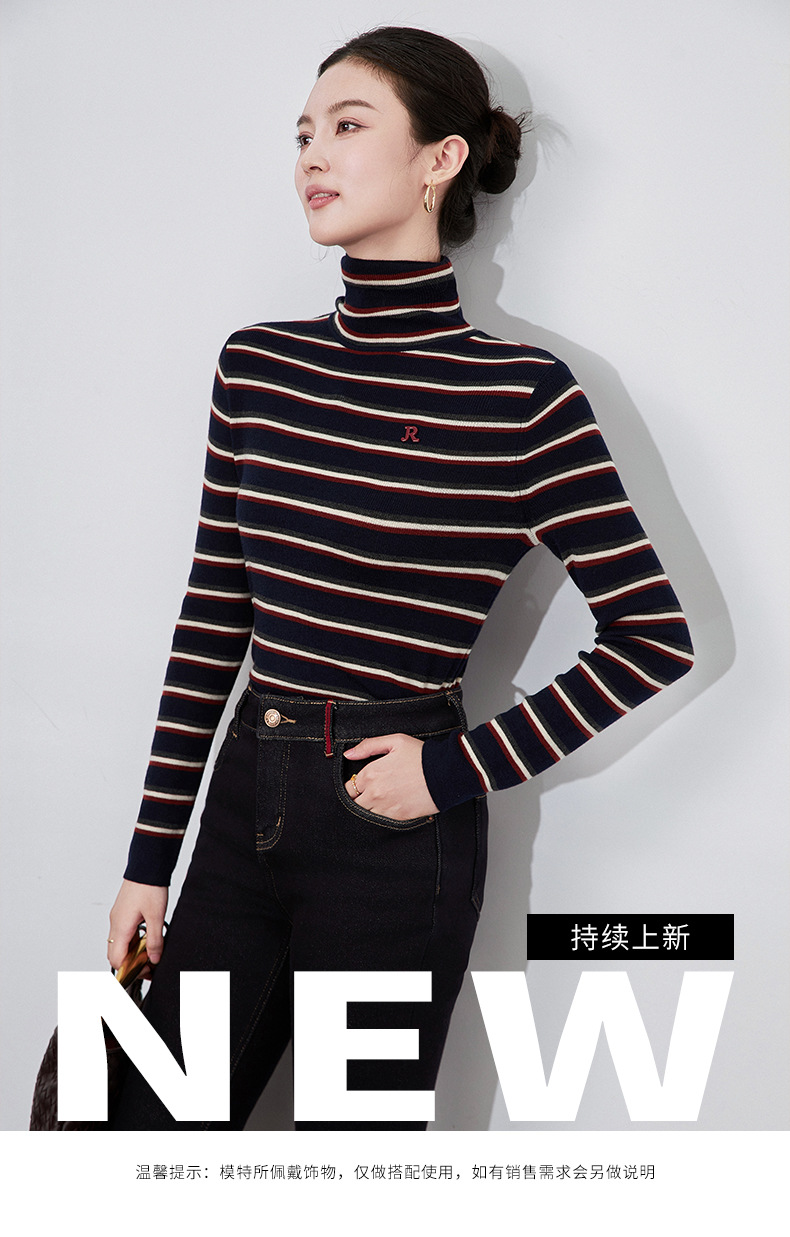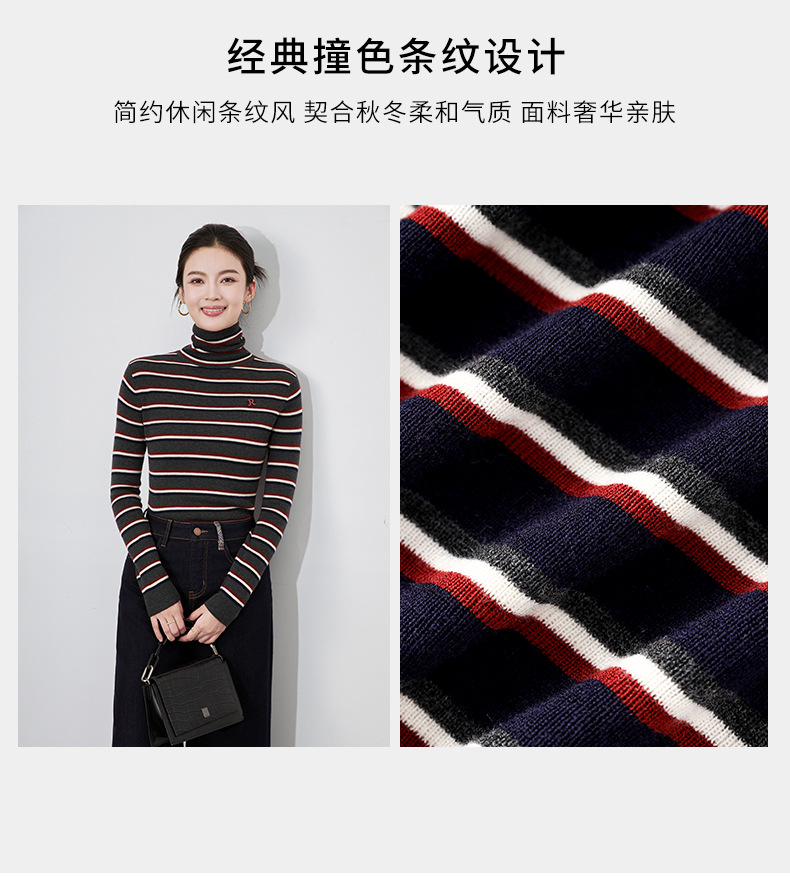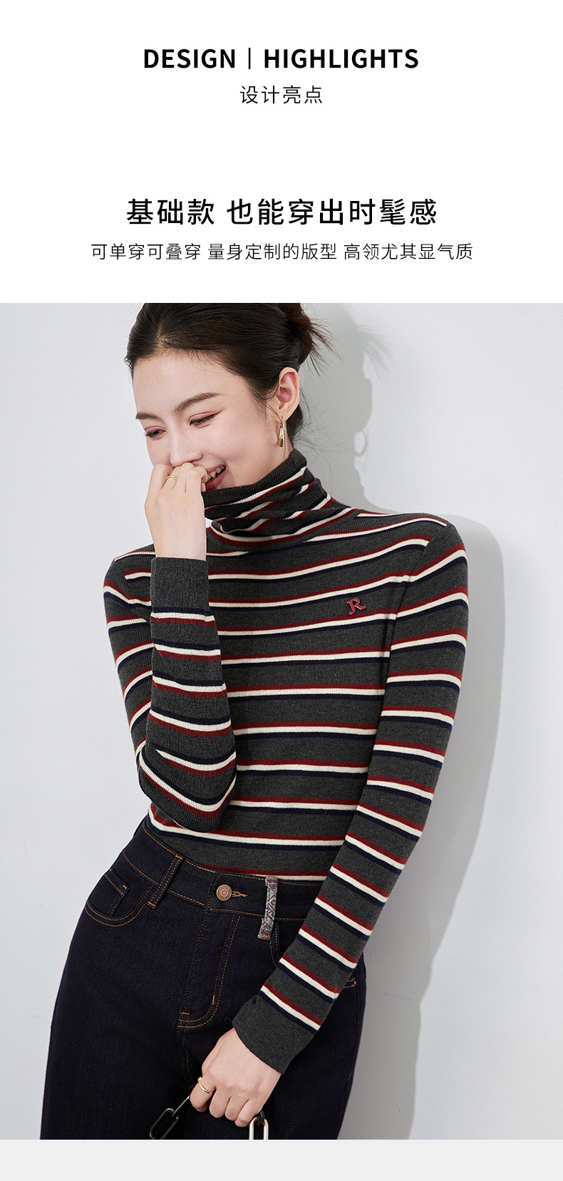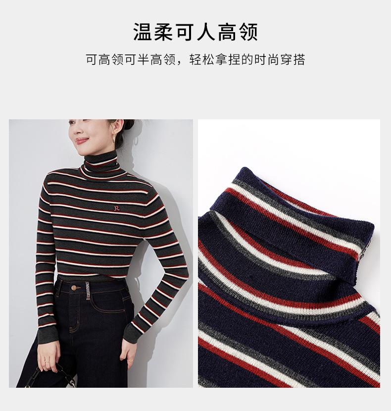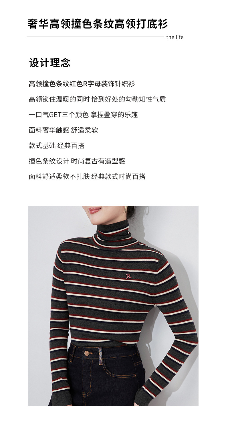 【高货wl】全新升级【铂金会员174/天猫239/差价65】(20452) 洛诗琳秋冬新款简约休闲高领撞色条纹打底针织衫流行上衣