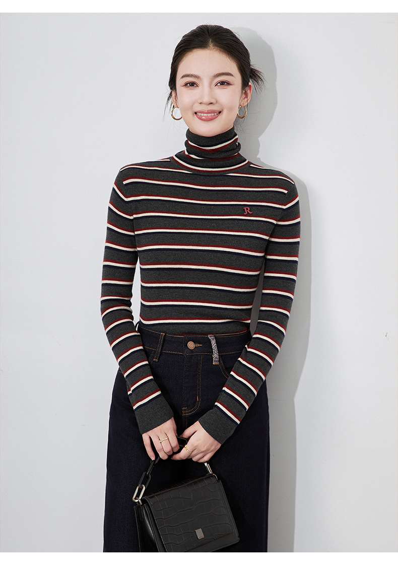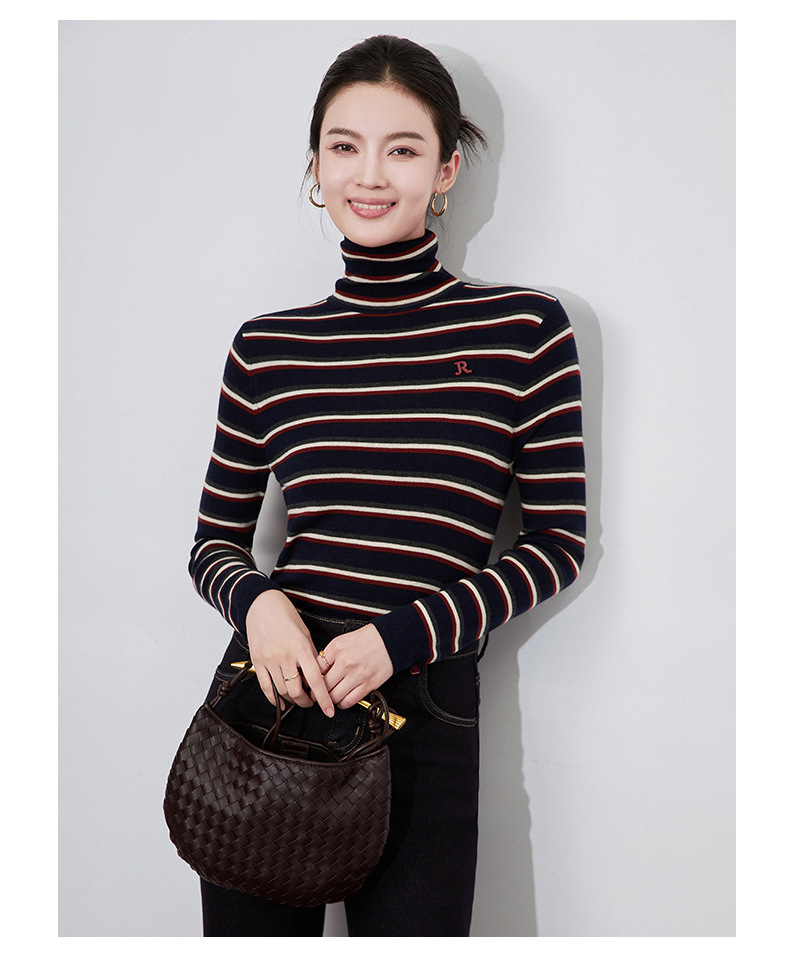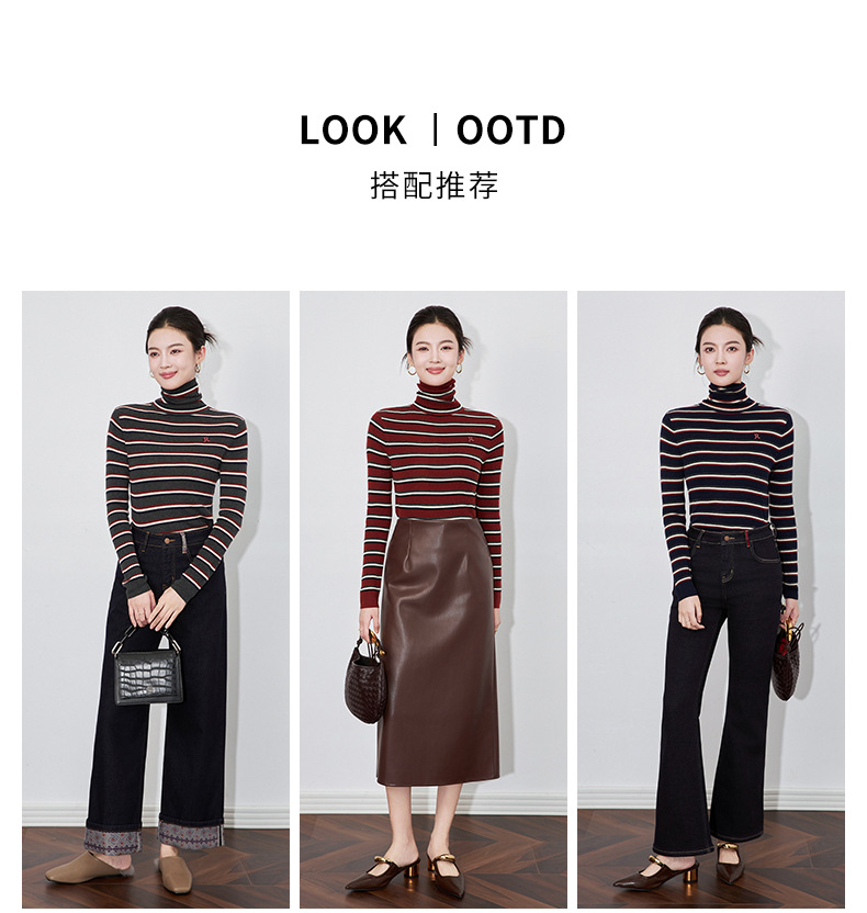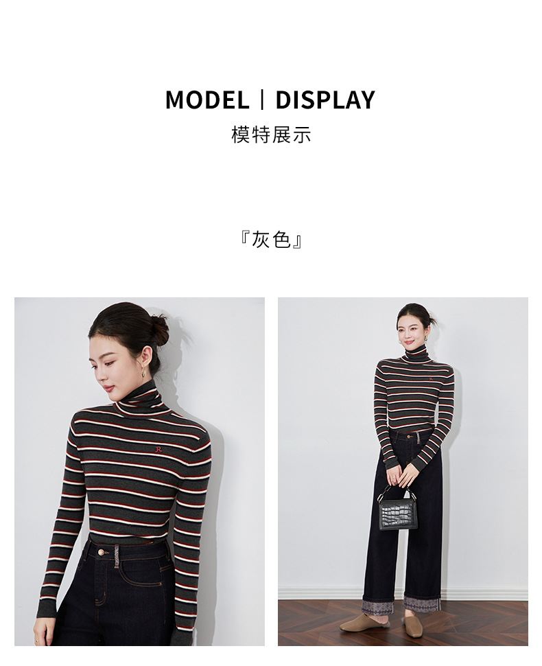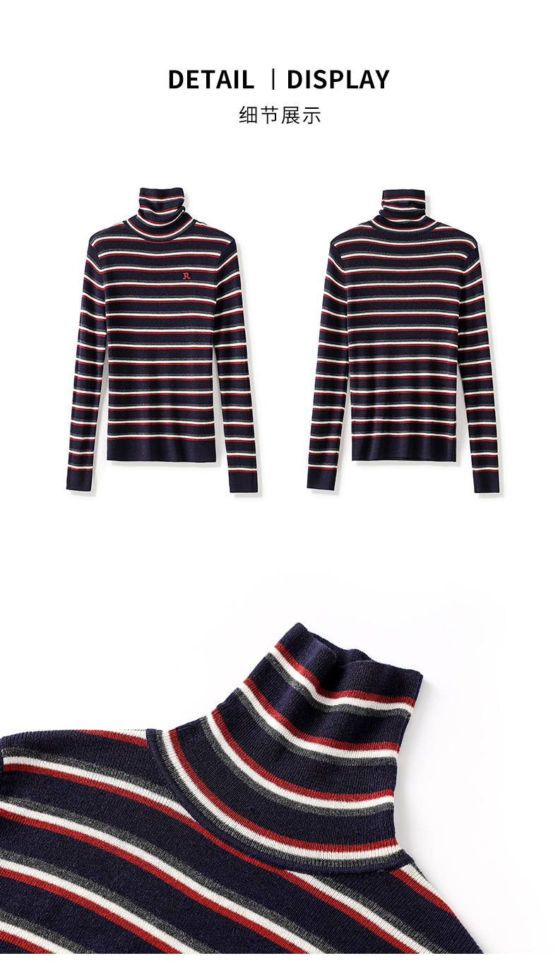 【高货wl】全新升级【铂金会员174/天猫239/差价65】(20452) 洛诗琳秋冬新款简约休闲高领撞色条纹打底针织衫流行上衣