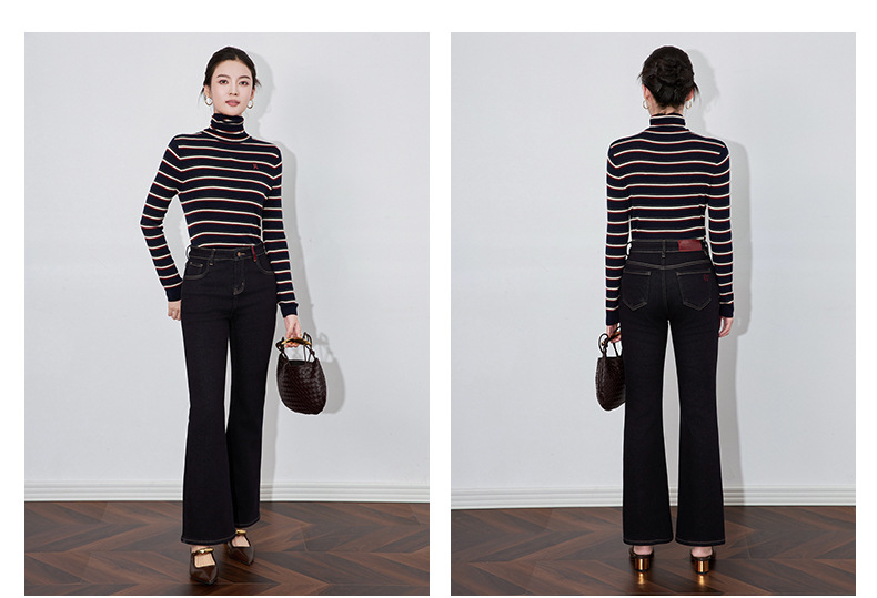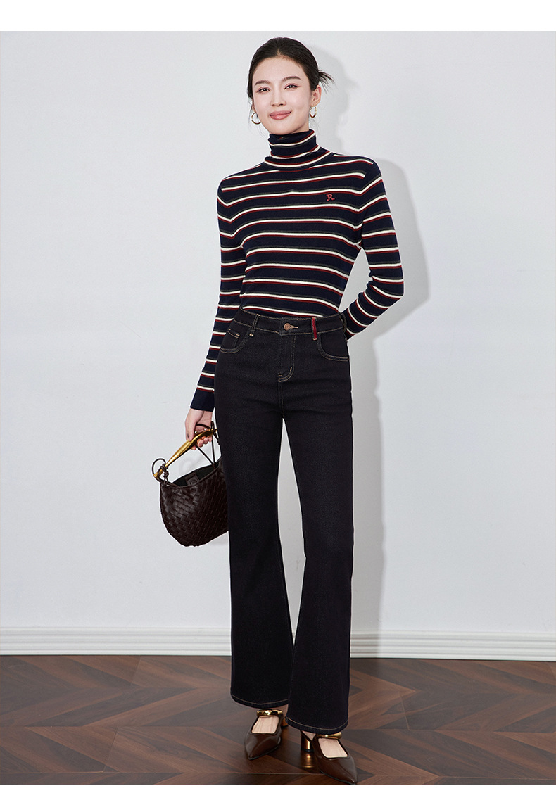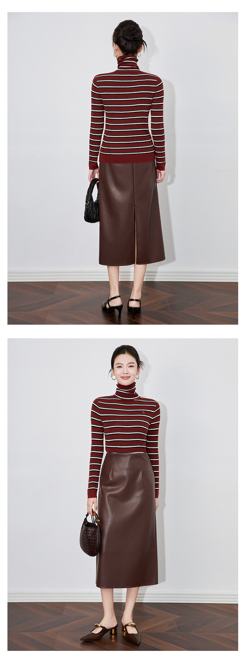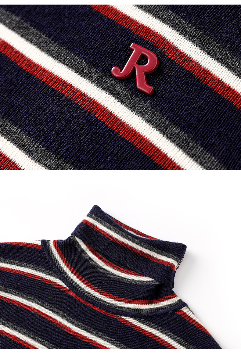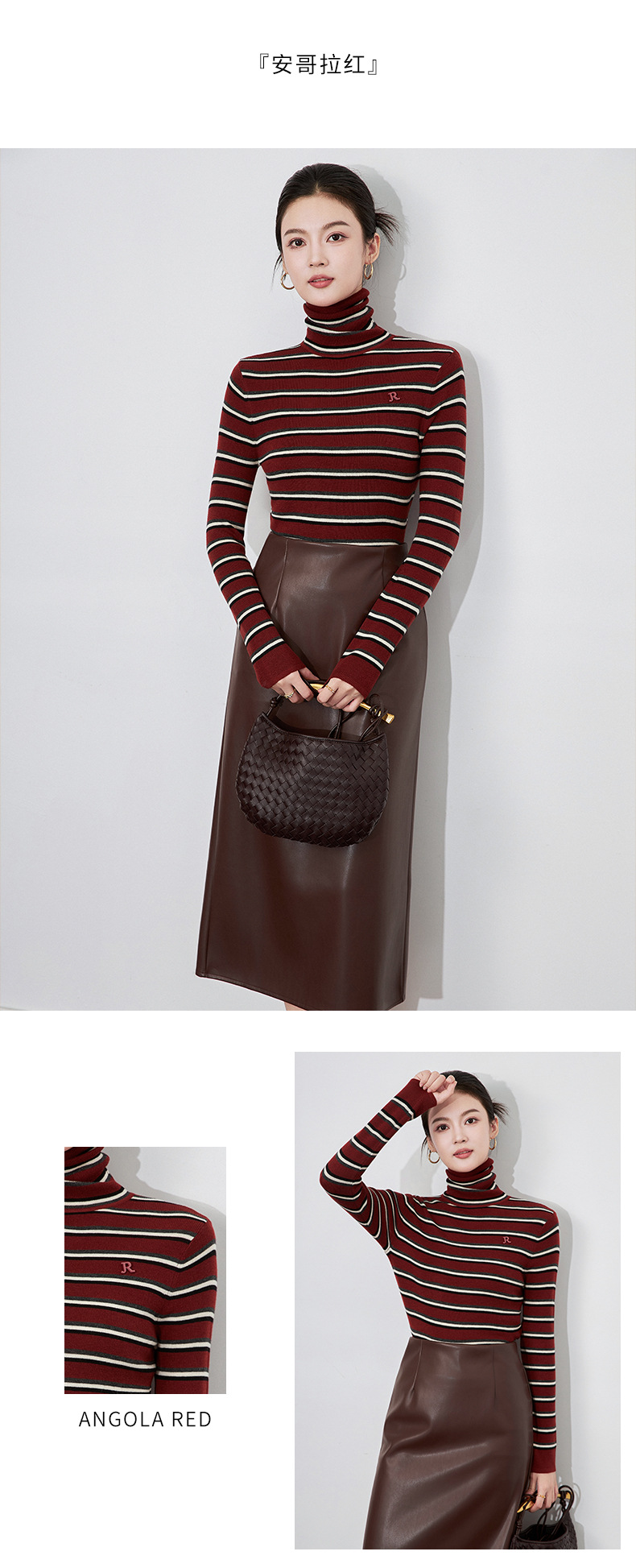 【高货wl】全新升级【铂金会员174/天猫239/差价65】(20452) 洛诗琳秋冬新款简约休闲高领撞色条纹打底针织衫流行上衣