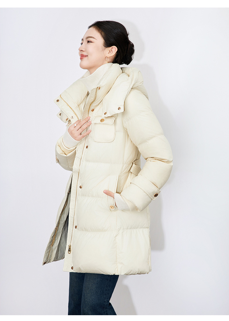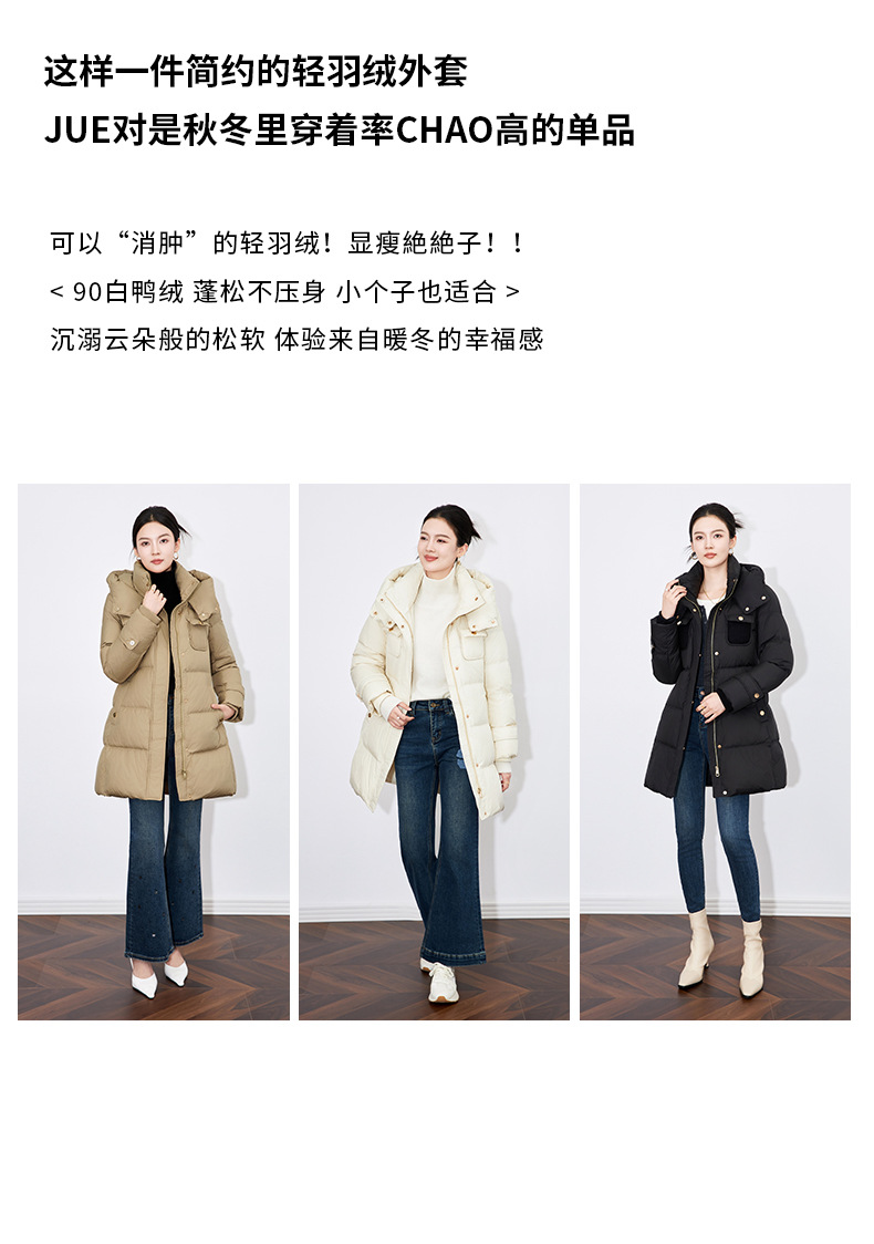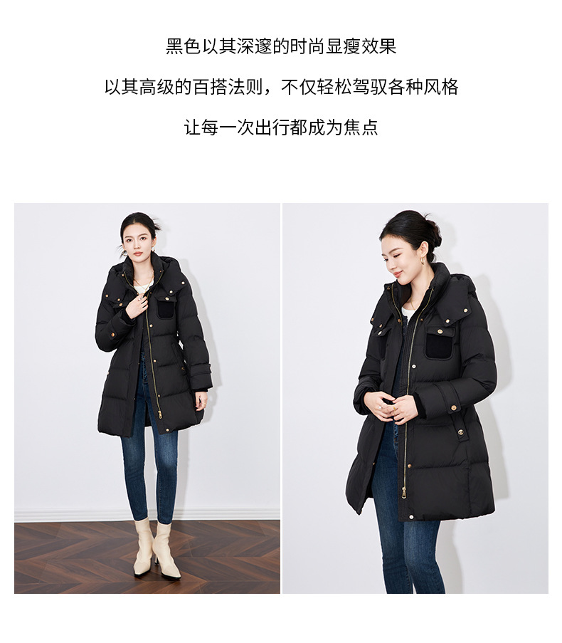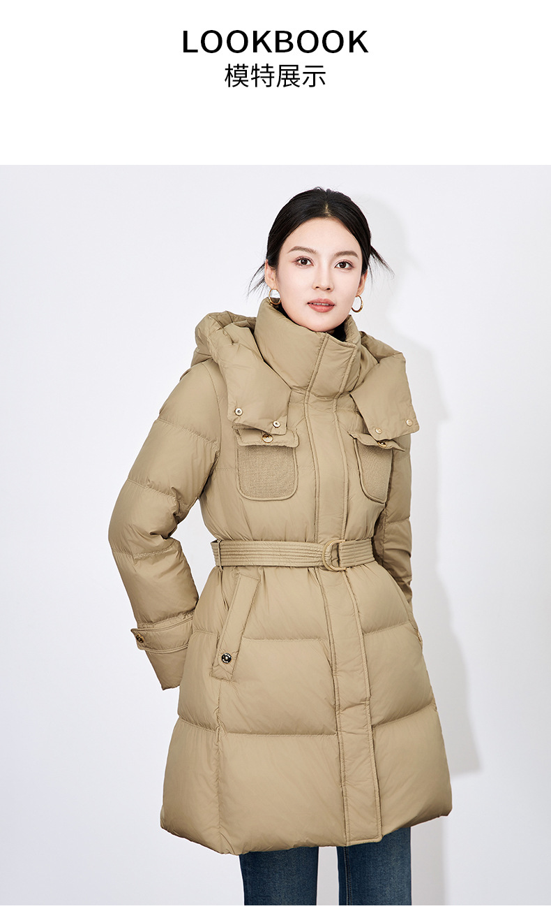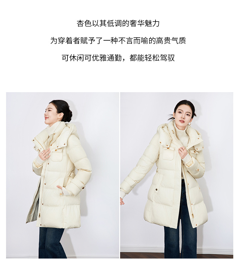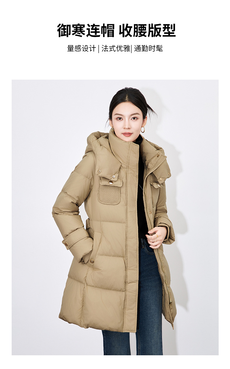 【高货wl】全新升级【铂金会员735/天猫999/差价264】(03208)洛诗琳新款保暖加厚连帽羽绒服高级感白鸭绒中长款外套
