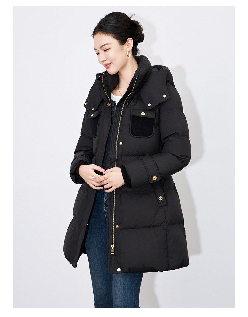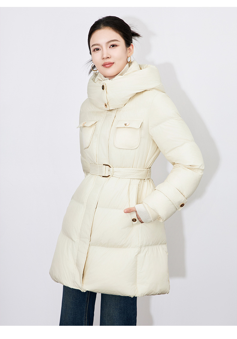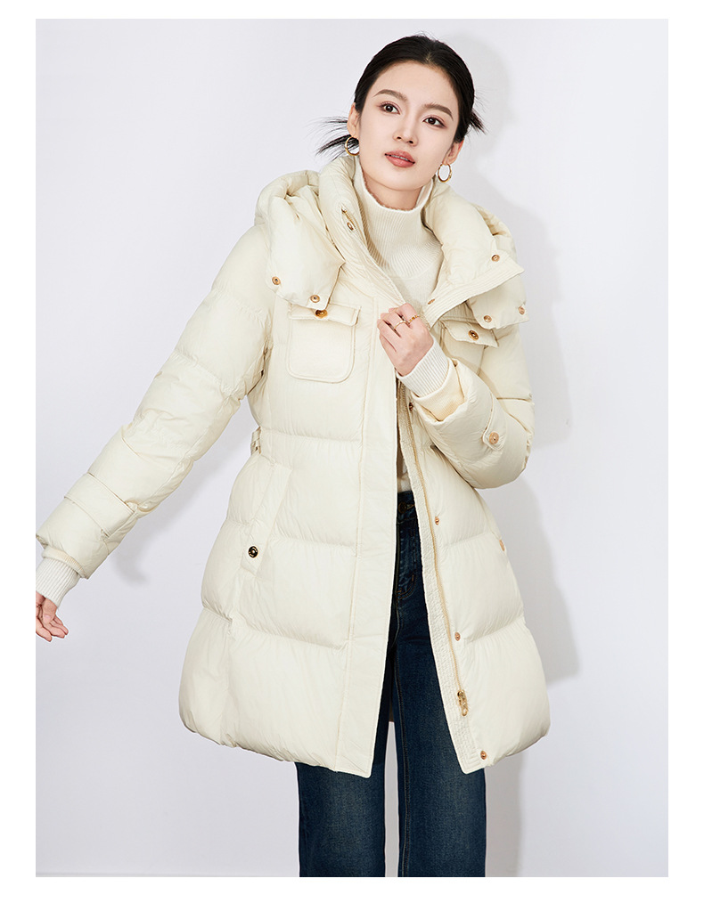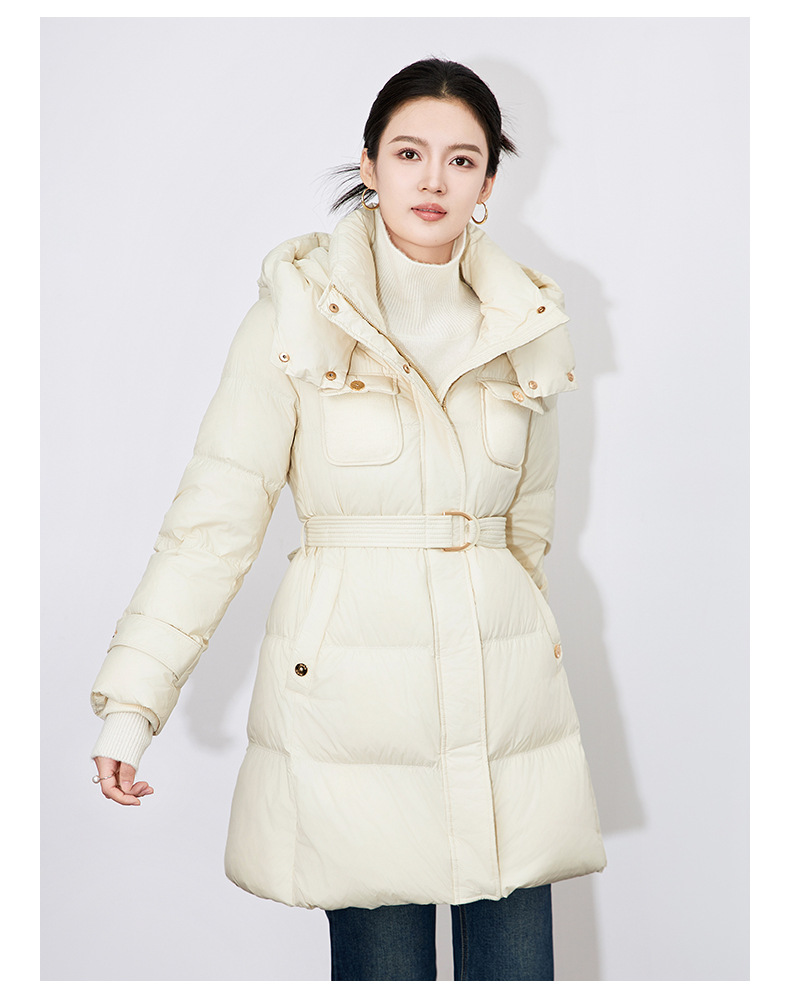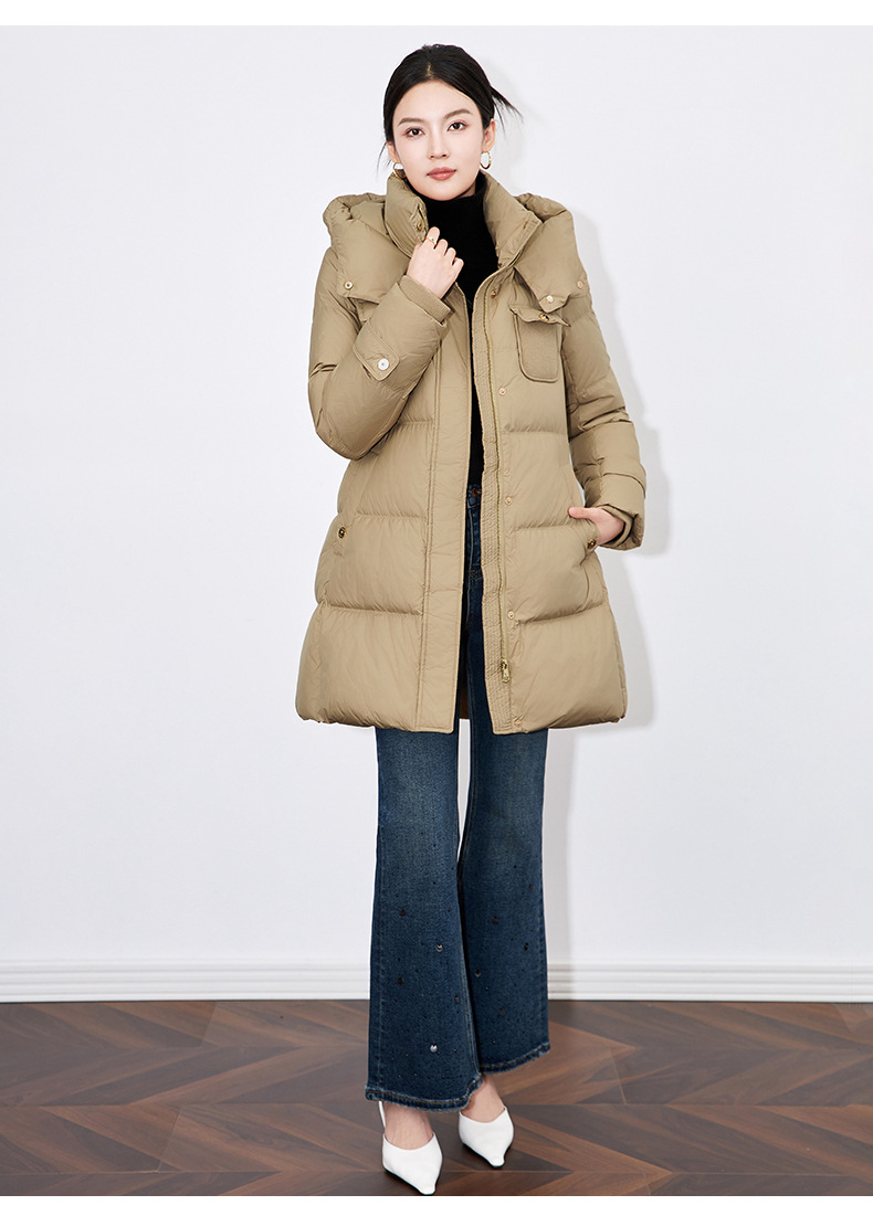 【高货wl】全新升级【铂金会员735/天猫999/差价264】(03208)洛诗琳新款保暖加厚连帽羽绒服高级感白鸭绒中长款外套