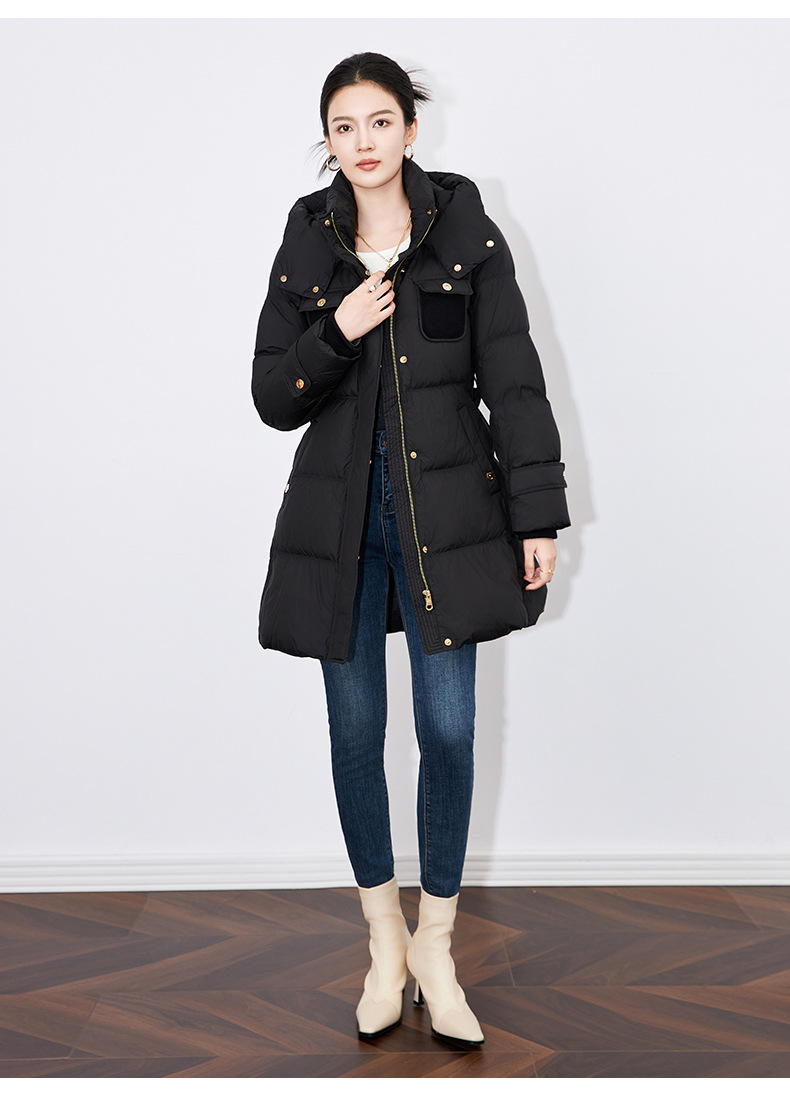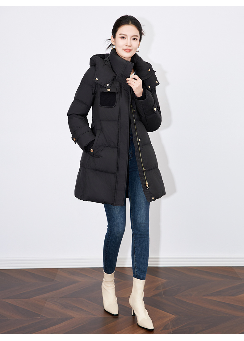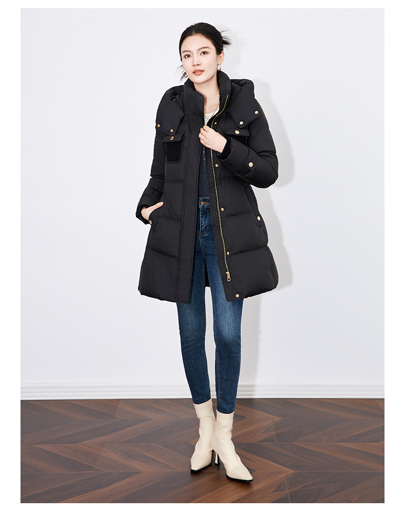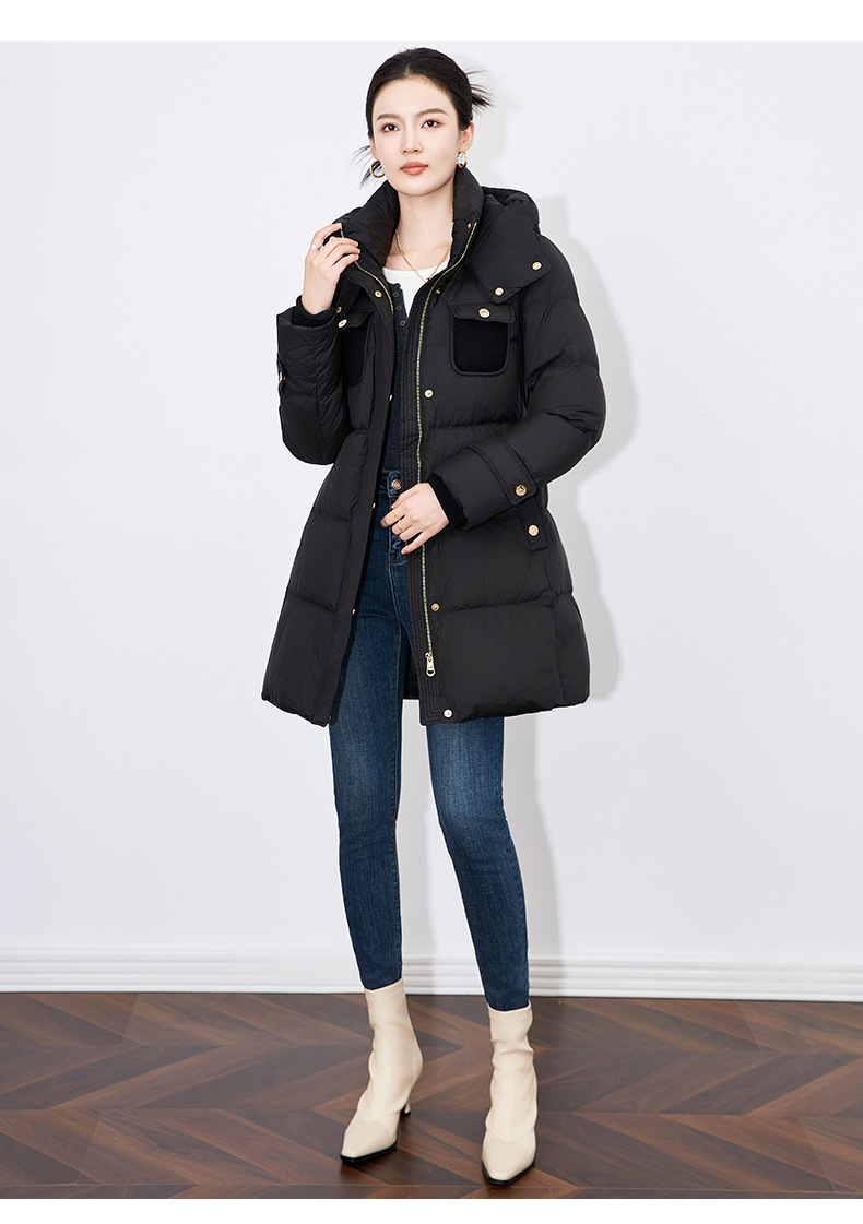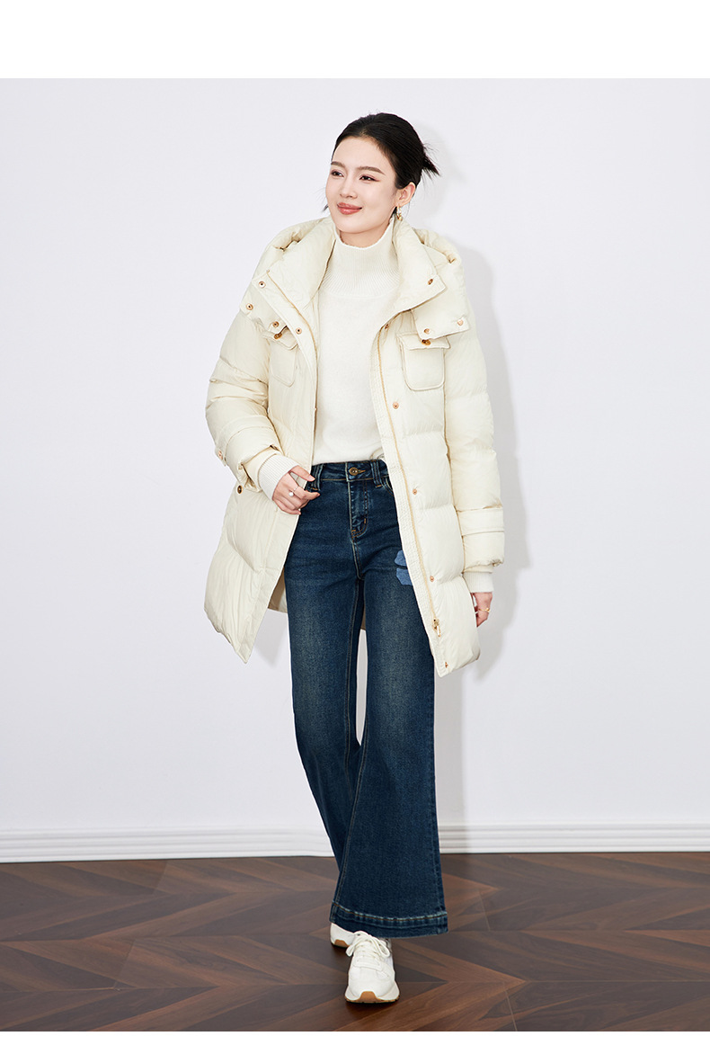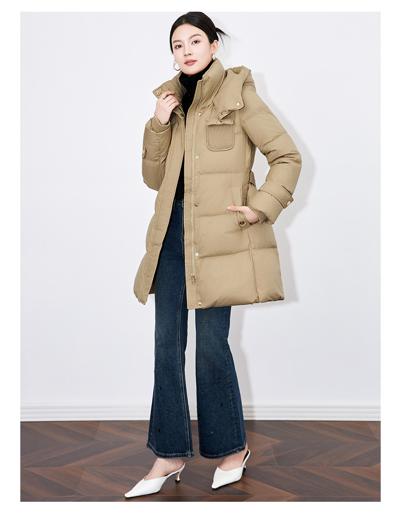 【高货wl】全新升级【铂金会员735/天猫999/差价264】(03208)洛诗琳新款保暖加厚连帽羽绒服高级感白鸭绒中长款外套