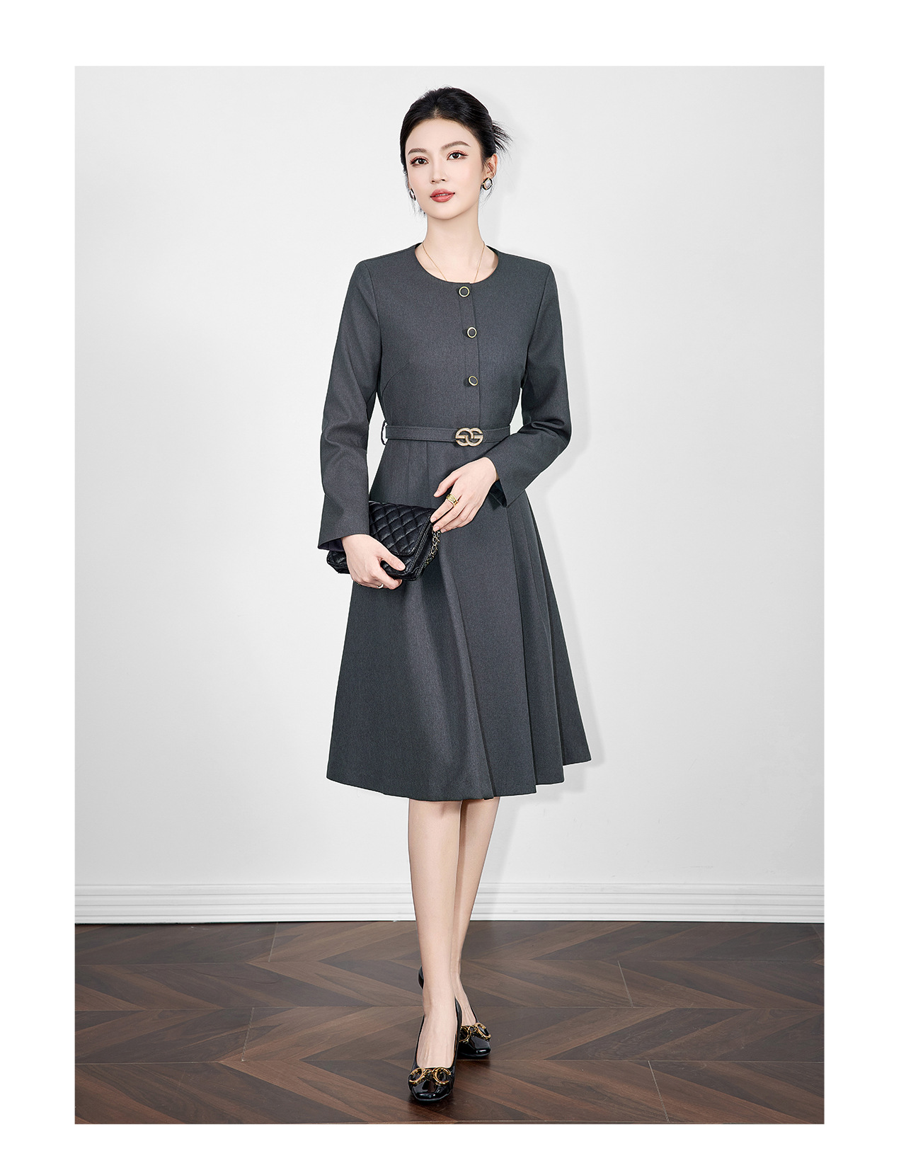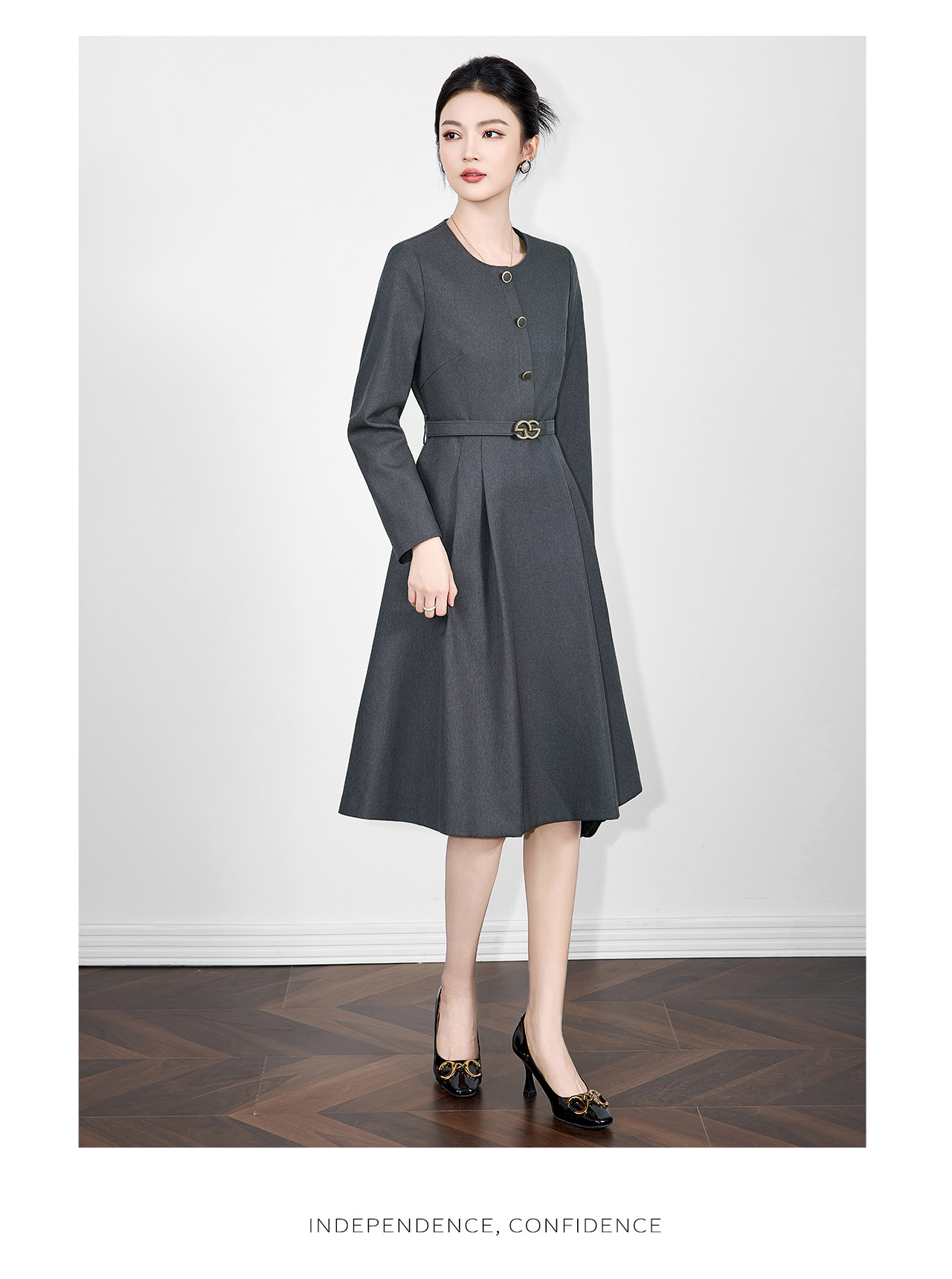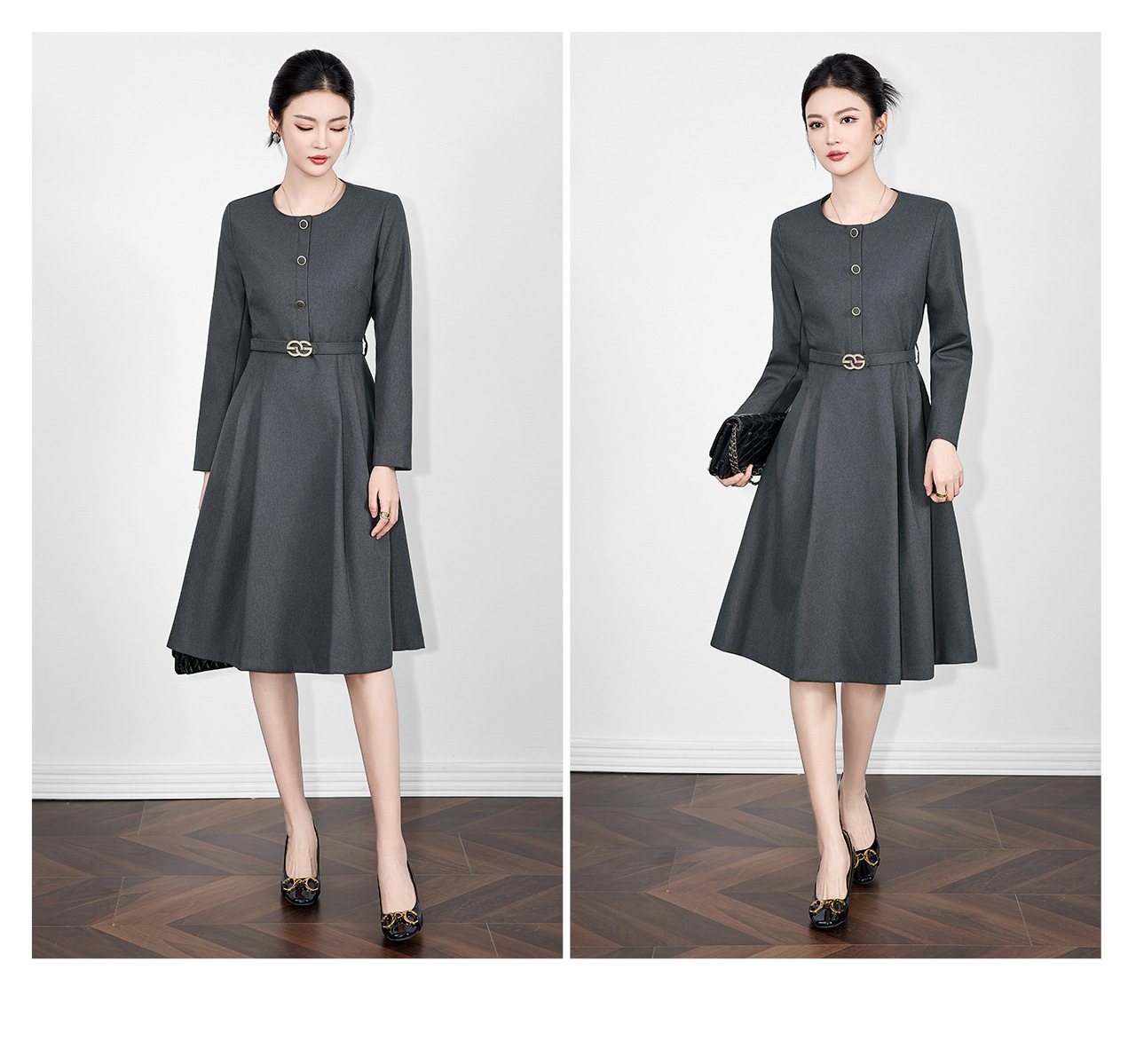「高货wl」全新升级【铂金会员321/天猫429/差价108】(72207)洛诗琳气质通勤单排扣连衣裙2025秋冬收腰显瘦大摆A字裙