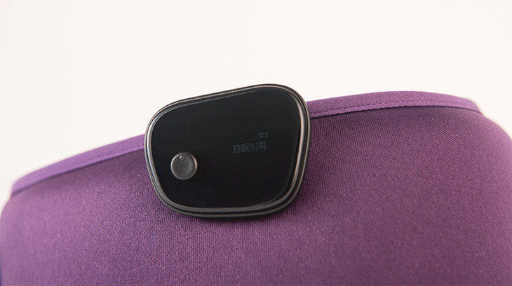无需手机或电脑,按下右上方的控制面板,眼睛部分就能发出忽明忽暗的橙光,两侧的喇叭随时都能播放助眠音频。