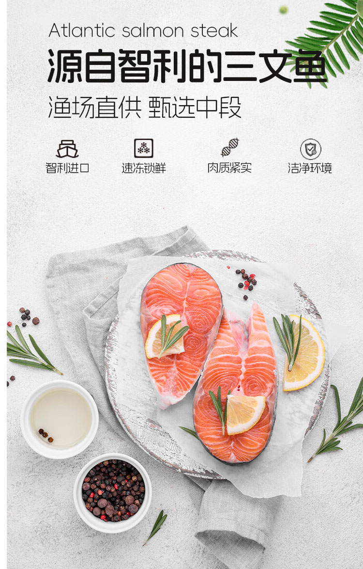 【斌哥优选】智利三文鱼排。只选肥美的鱼中段。野生三文鱼,富含omega-3等微量元素。优质不饱和脂肪,可煎、可蒸、可炒。辅食减脂餐常客。