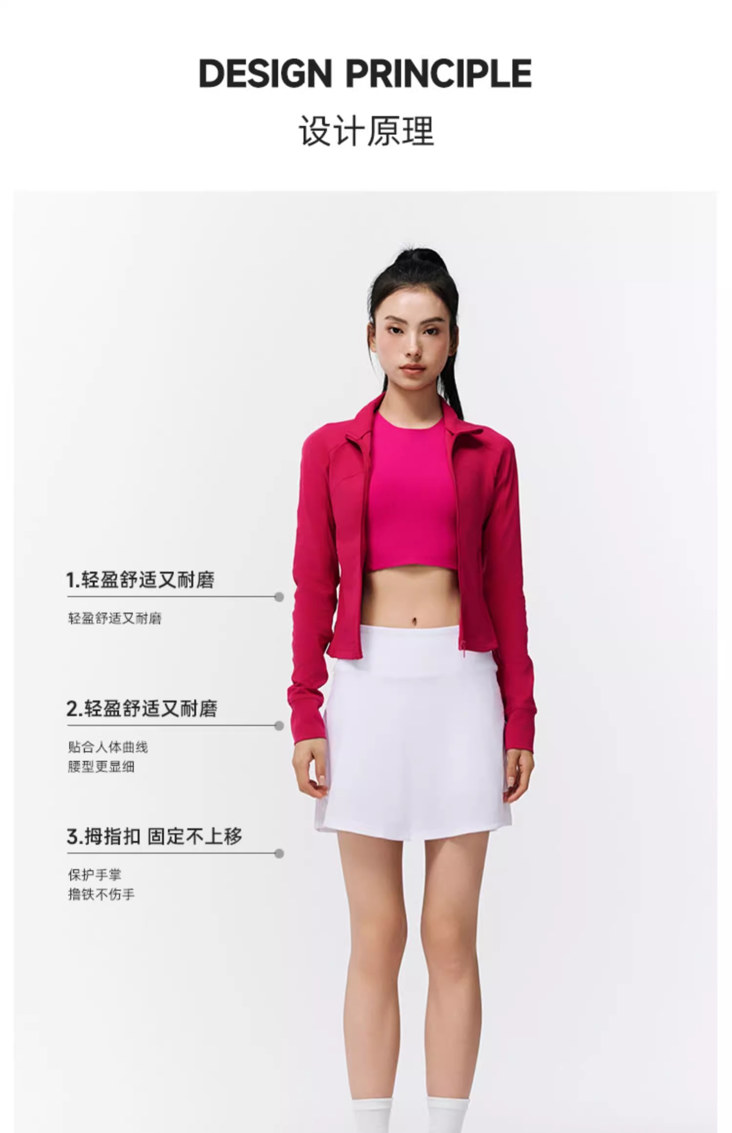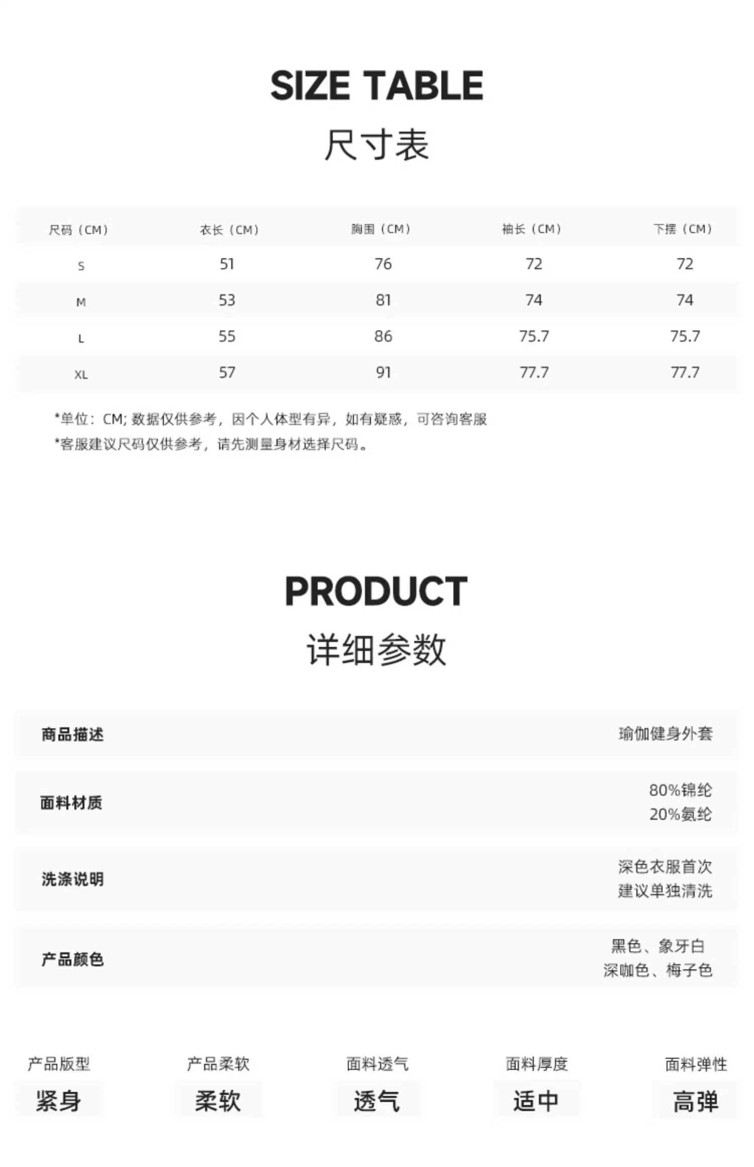跃牌【轻匀系列】裸感瑜伽上衣立领修身短款运动外套WT1596