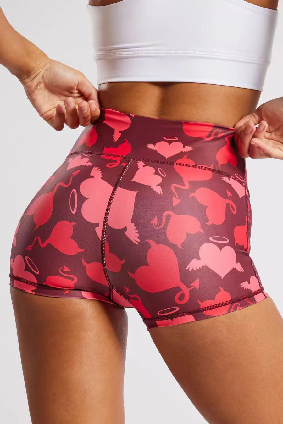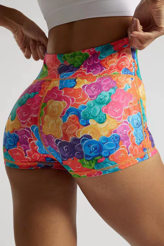 【126元任选2件】跃牌【漫西】系列 卡通印花短裤高腰提臀运动健身跑步瑜伽三分裤女Y205