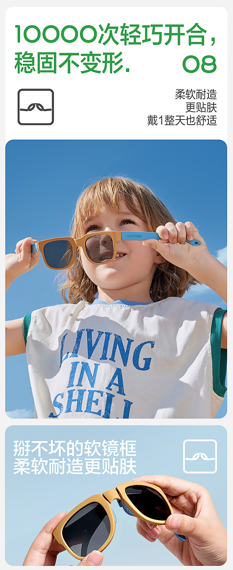 KK树儿童墨镜可折叠男童女童太阳镜偏光防紫外线男孩宝宝眼镜女孩扭扭软糖太阳镜