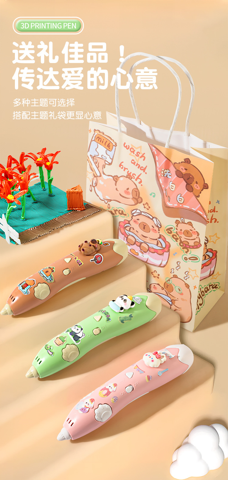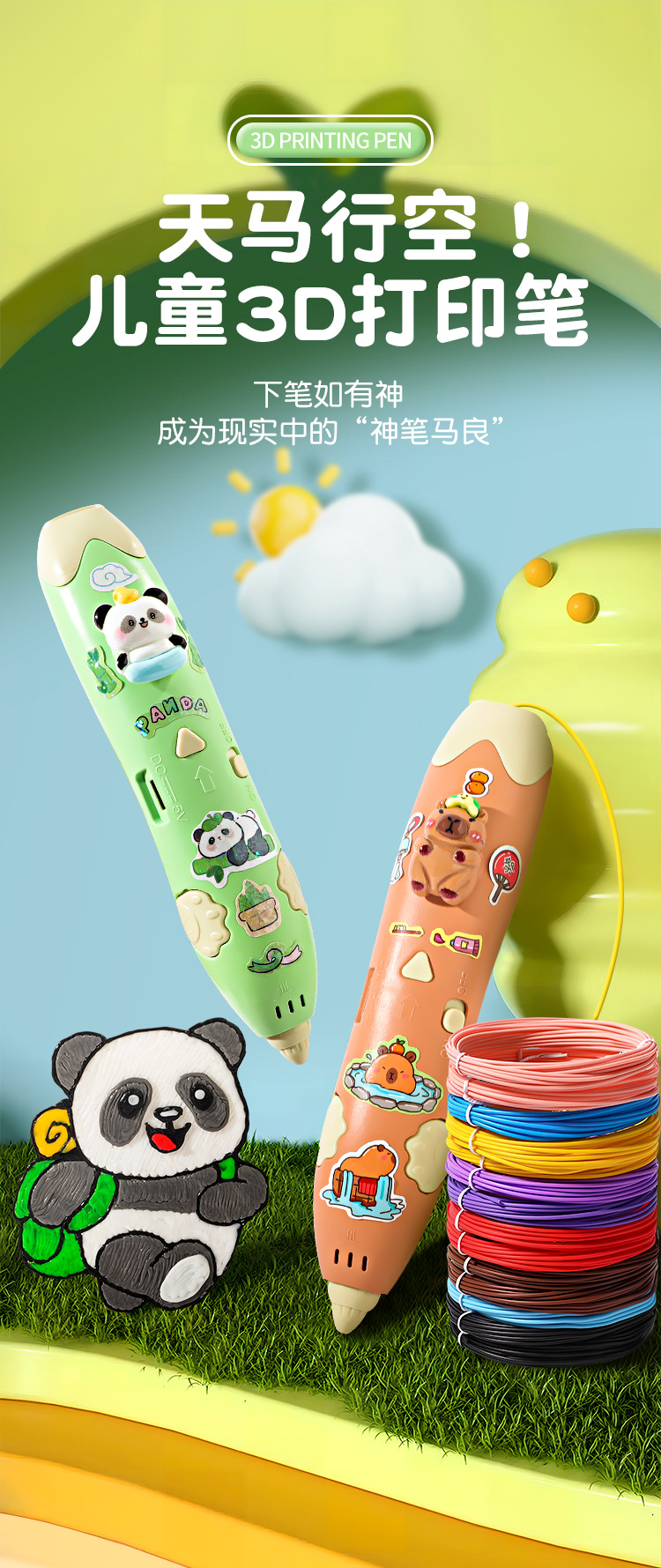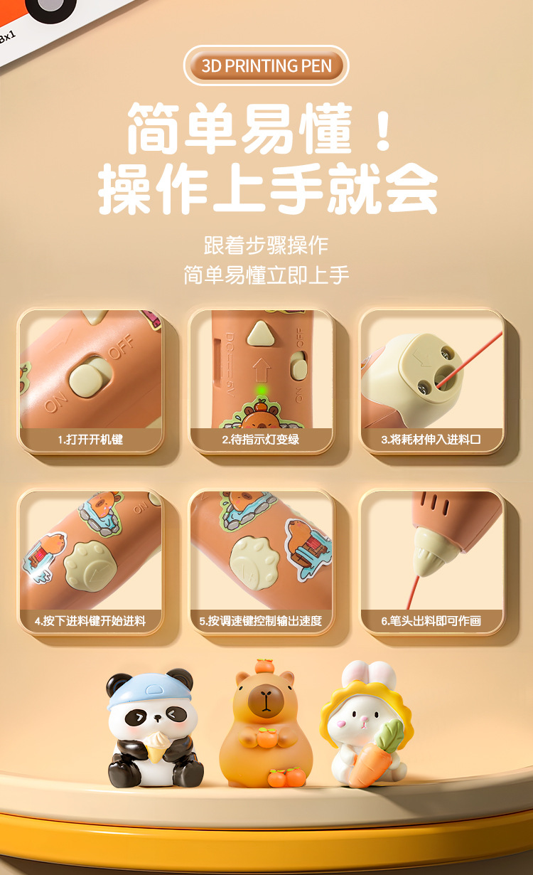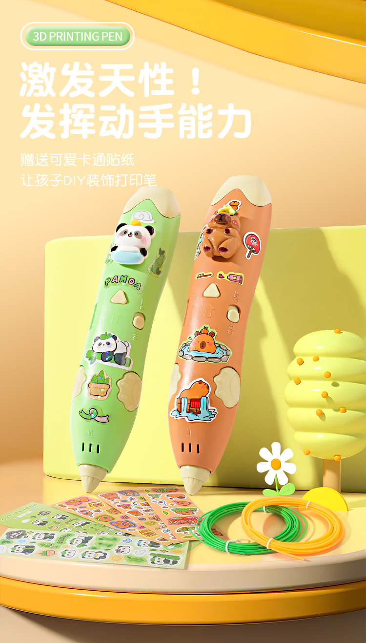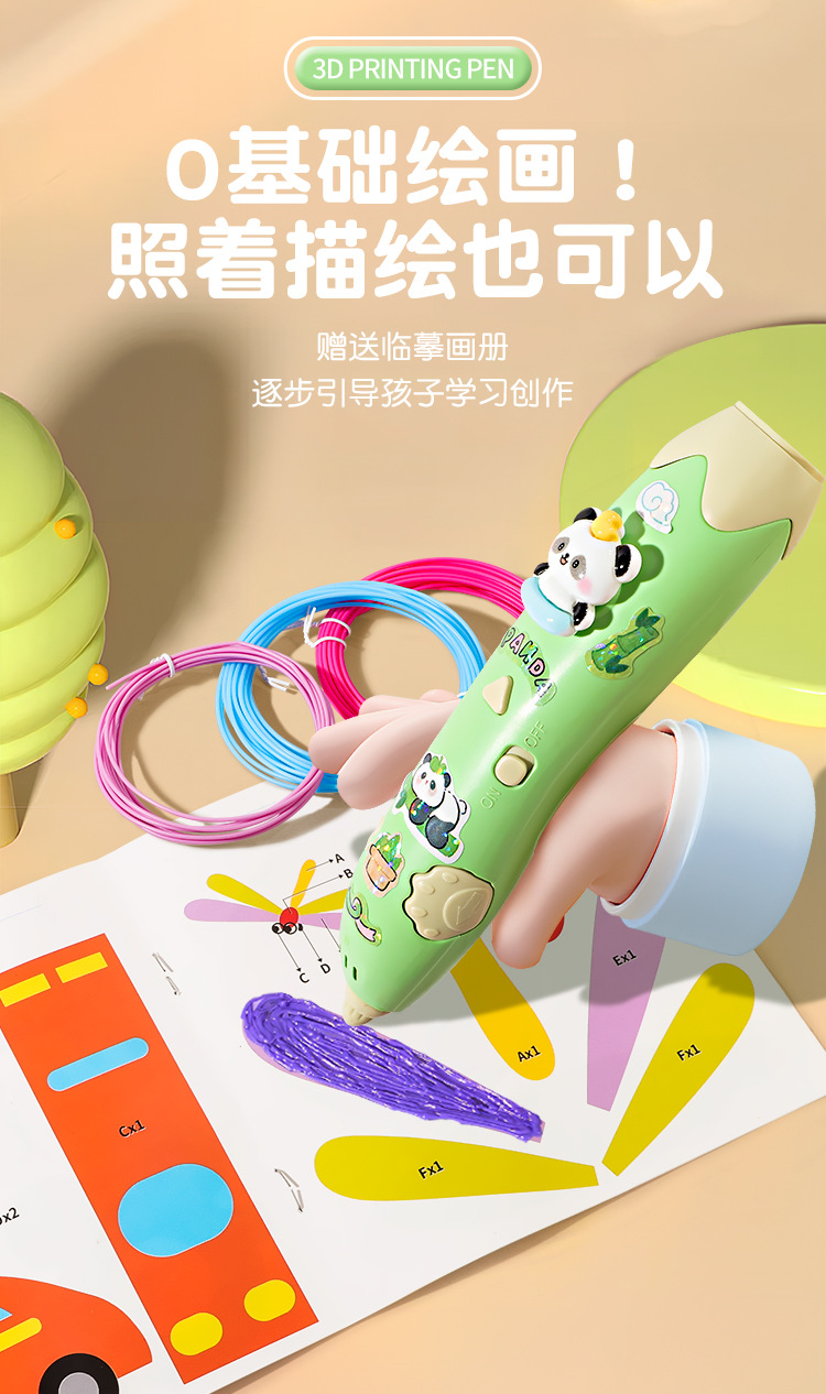 赠送礼袋【0基础绘画!照着描绘也可以】低温熊猫3d打印笔儿童款三d立体打印绘画笔套装小学生女孩子立体。rb