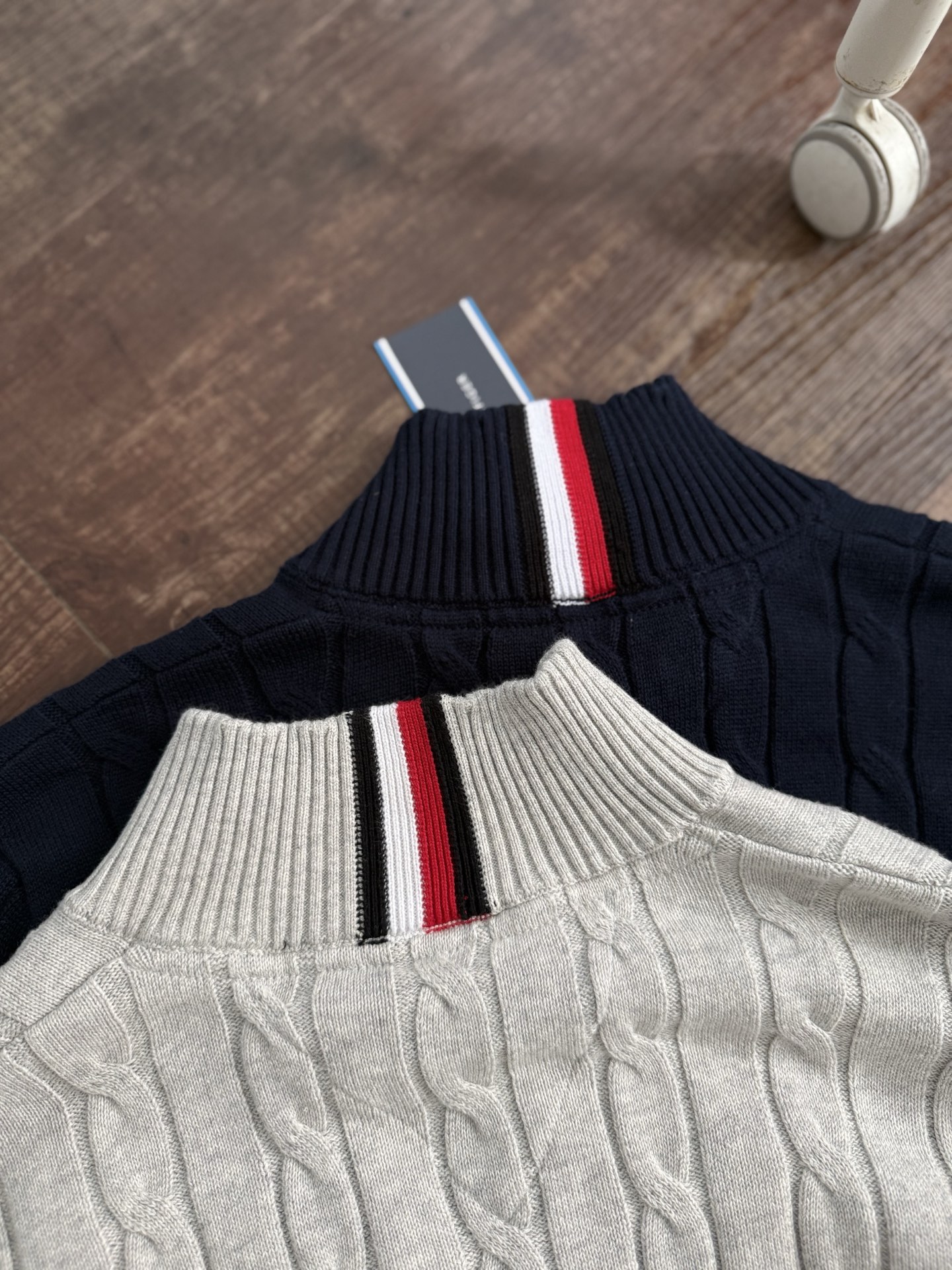 今年老钱风势不可挡!汤家的绞花设计不亚于拉夫家的毛衣!半拉链设计,休闲商务两不误!偏修身的款式,但弹力很大,对身材包容性很强!