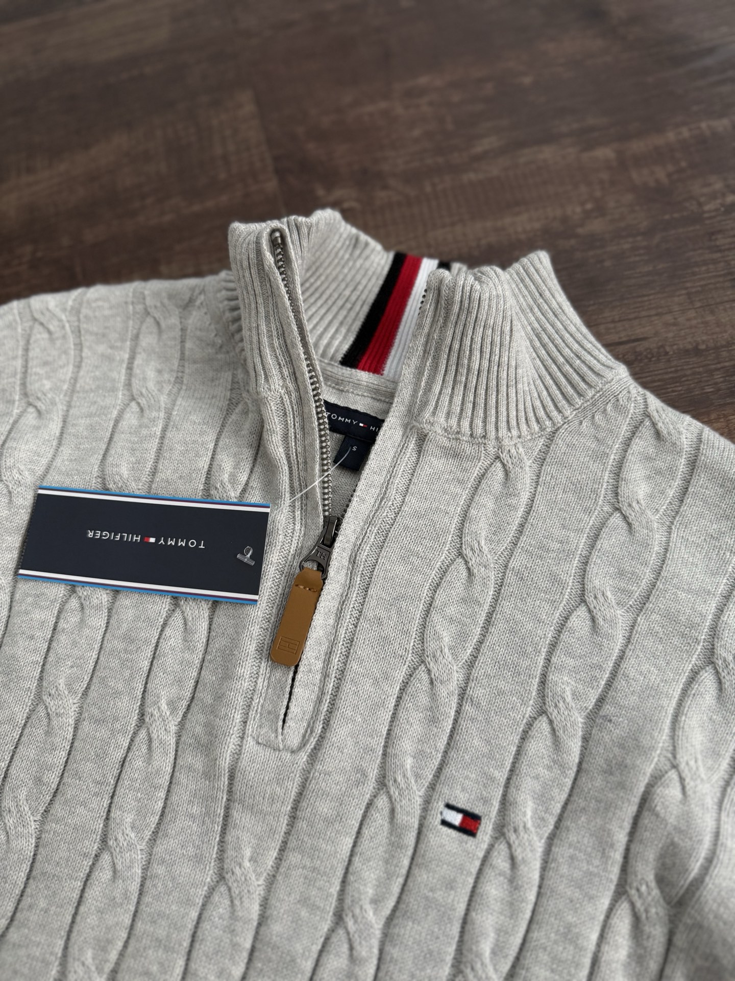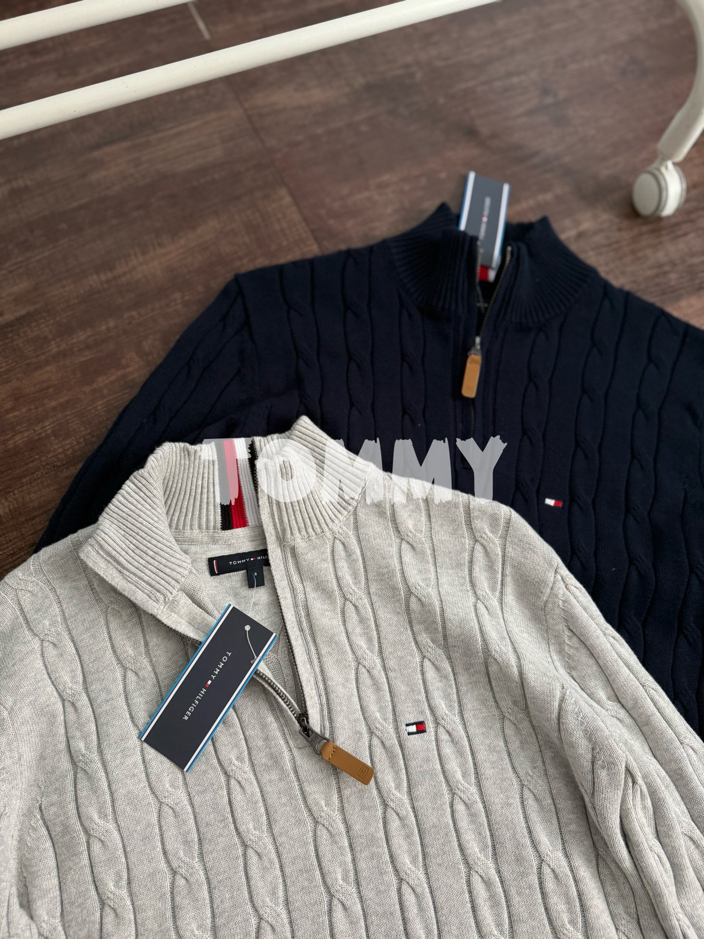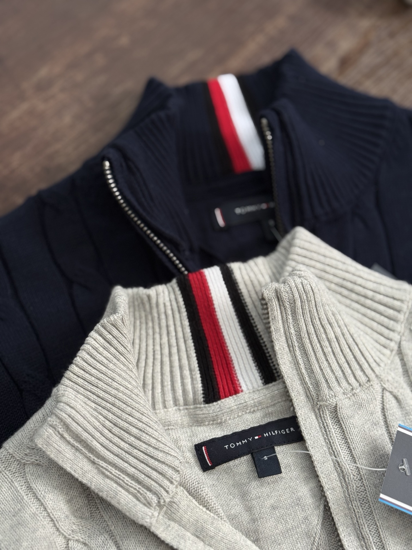 tommy Hilfiger男女同款麻花/绞花半拉链毛衣,范丞丞同款,纯棉质地,多色可选,单穿叠穿都好好看半拉链纯色小标刺绣logo针织毛衣。