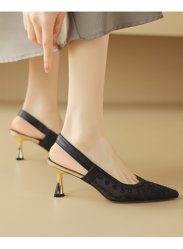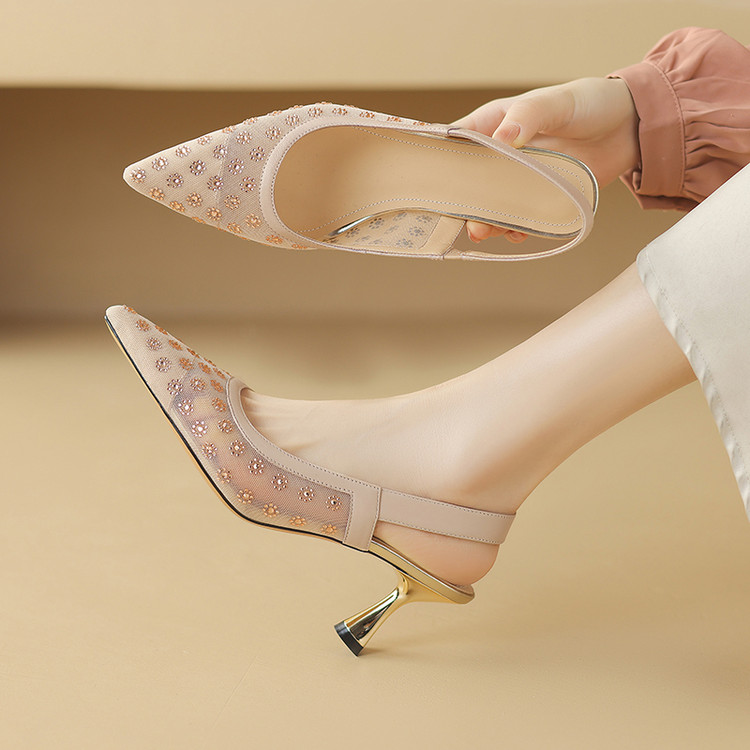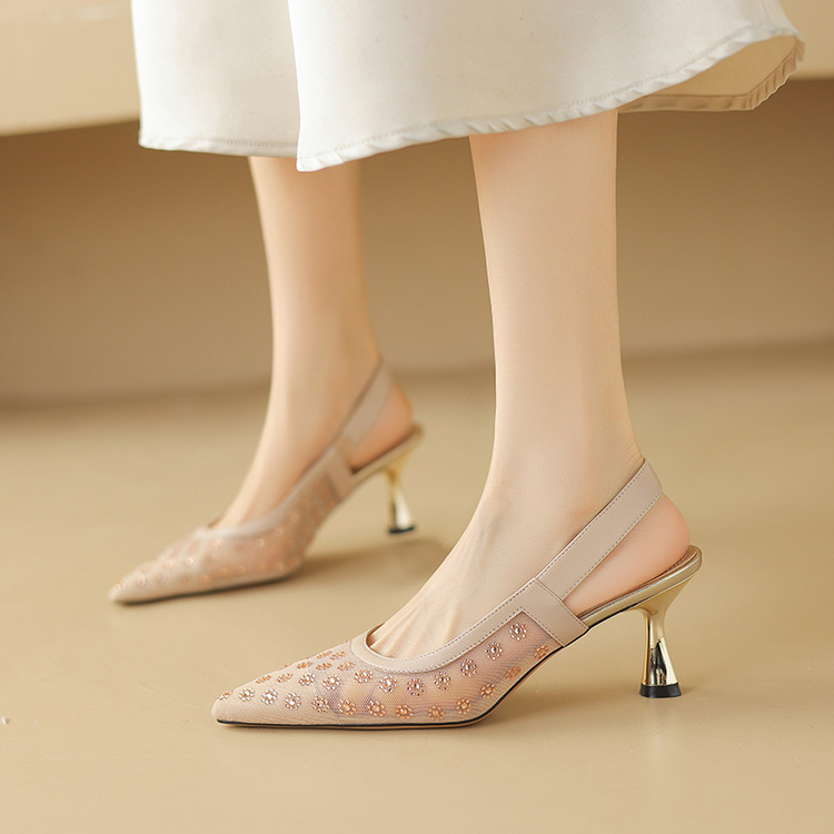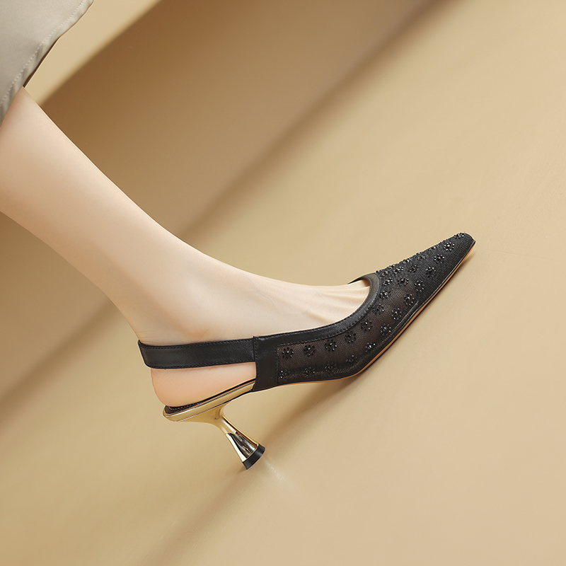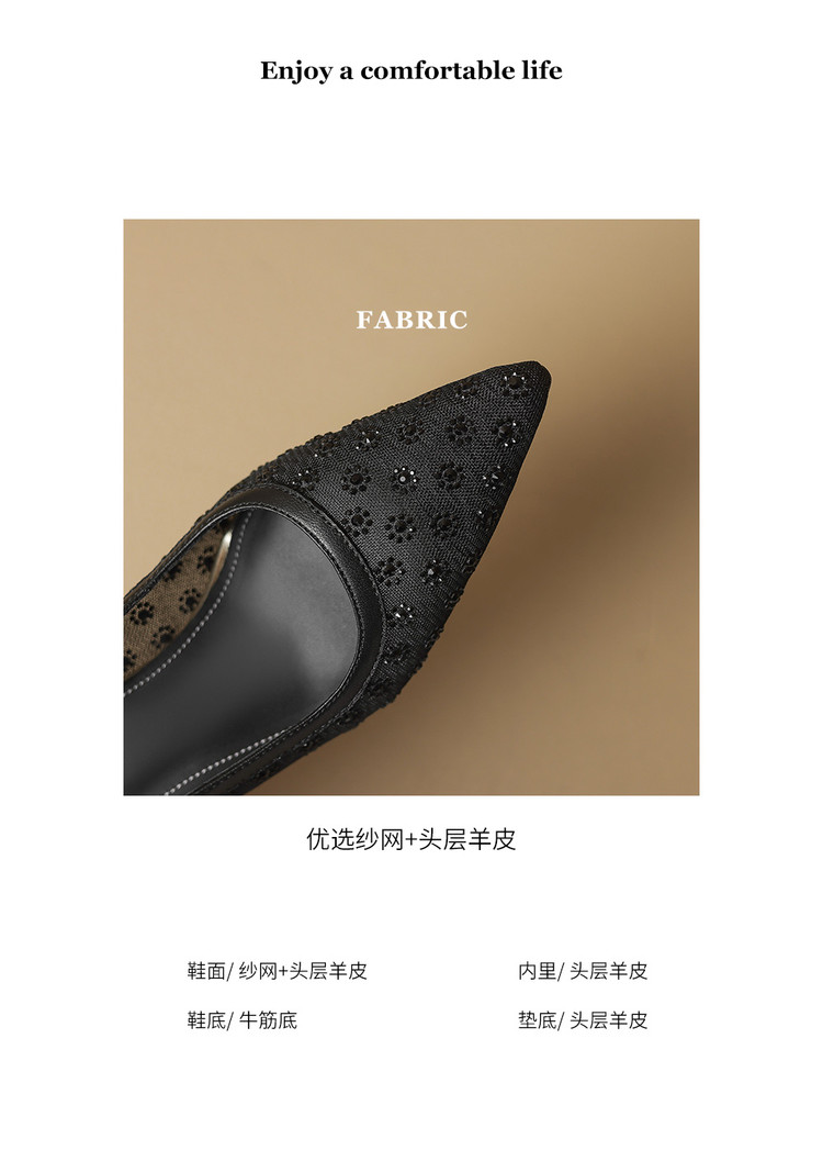 【货 号】7090【鞋 面】头层羊皮+纱网【内 里】头层羊皮【鞋 垫】头层羊皮【鞋 底】牛筋底【跟 高】6.5CM【颜 色】裸色 黑色【尺 码】34-40(大小定制不退换)