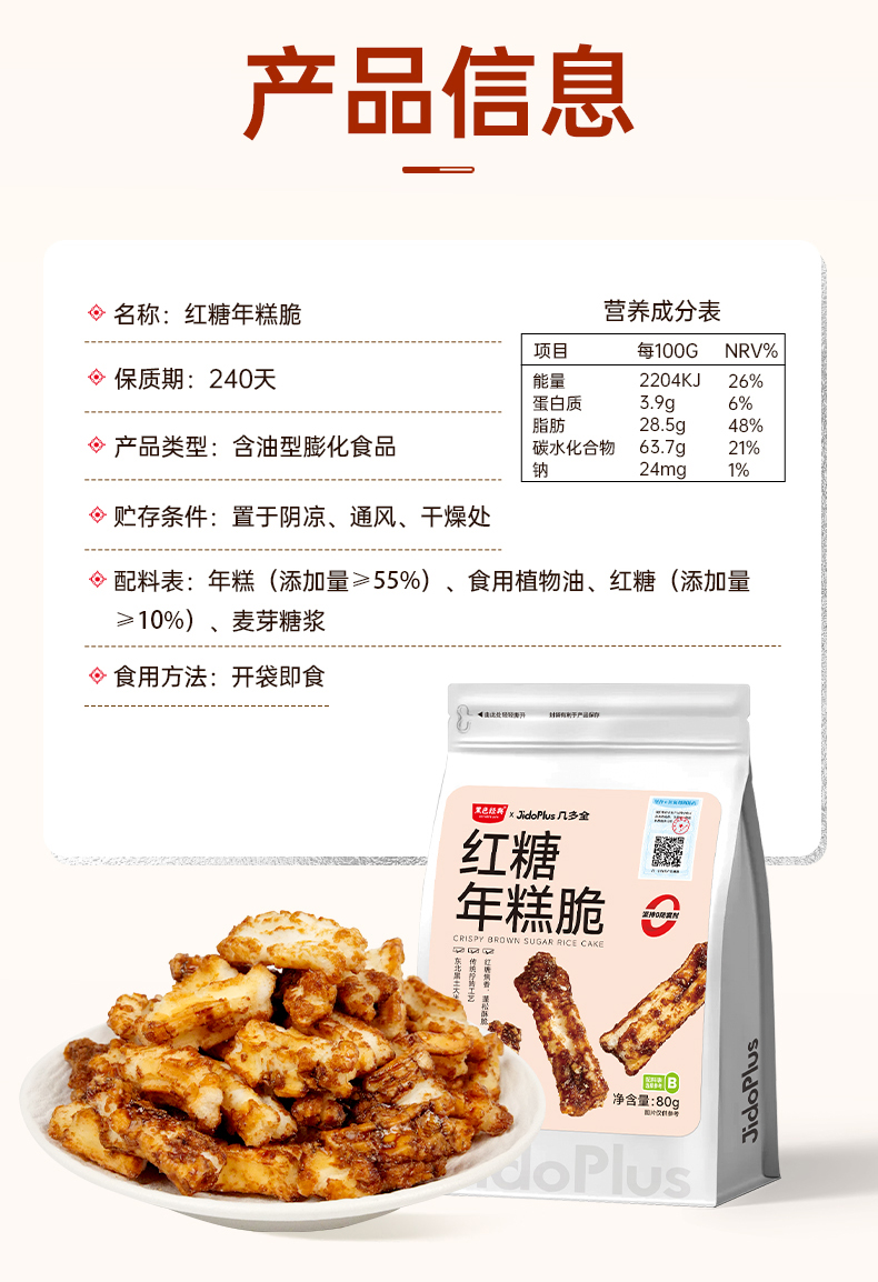 【鲜食新品】黑色经典X几多全红糖年糕脆 80g