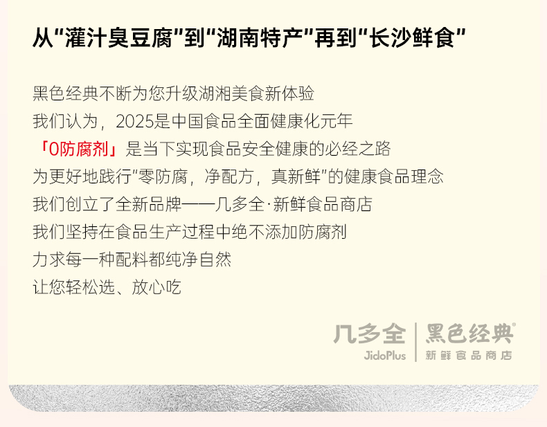 黑色经典湖南特产商城是长沙著名特色小吃“黑色经典长沙臭豆腐”旗下的线上官方商城。黑色经典面向全国,以长沙臭豆腐为核心,辐射覆盖湖南本土特色美食全系列产品,并对所有产品的生产工艺及包装进行了独特的改良。