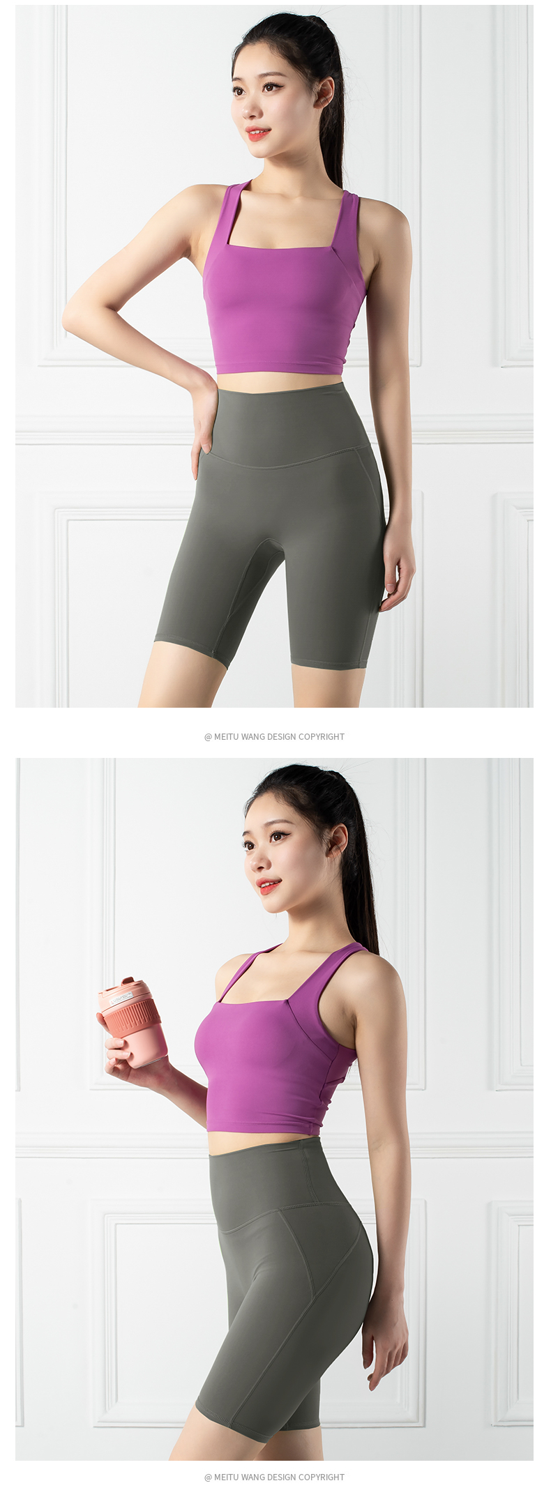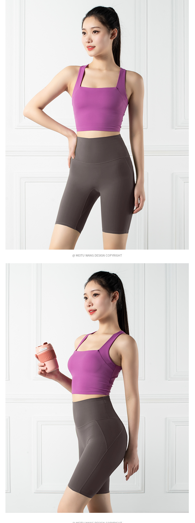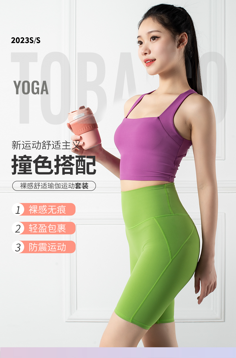 跃牌【禅语梵心系列】裸感无痕防震聚拢瑜伽文胸一片式无痕裸感提臀瑜伽裤F2151(可拆胸垫)+F2117
