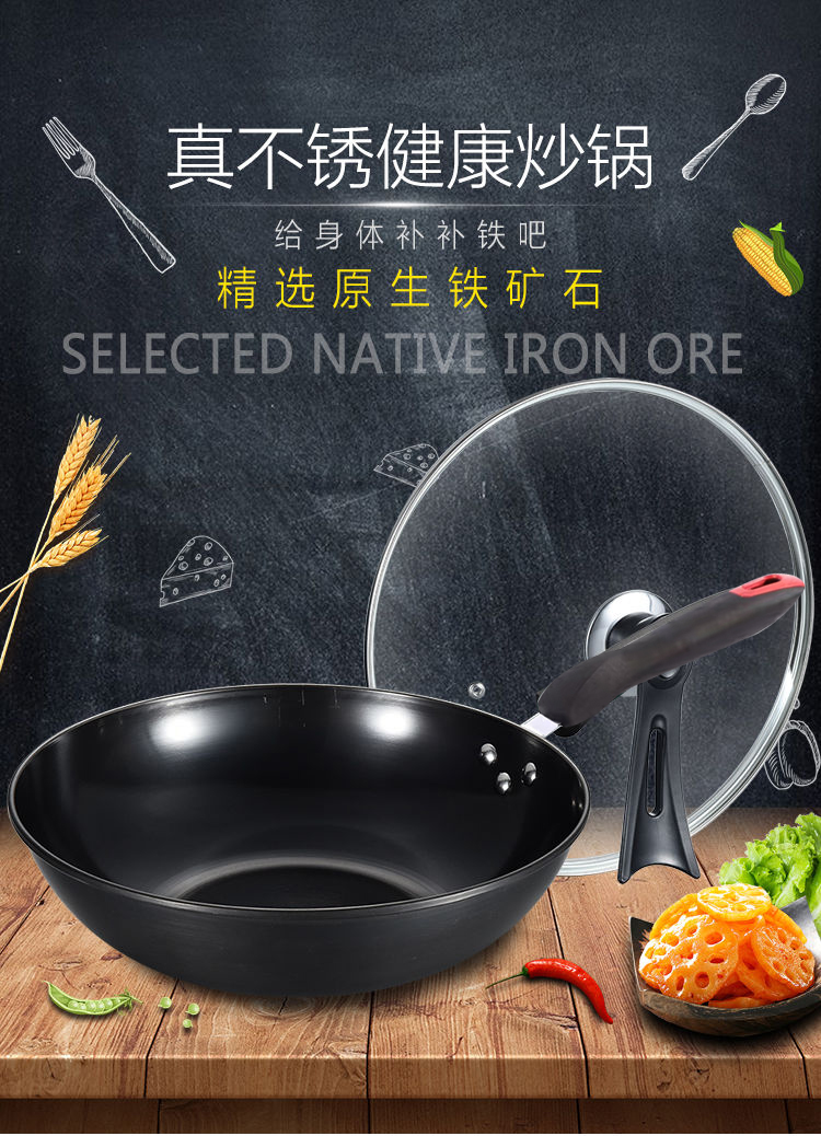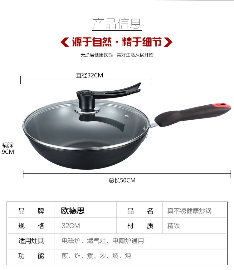【欧德思锅具】源自德国的高端品牌 零涂层晶钻极铁锅32cm家用炒锅