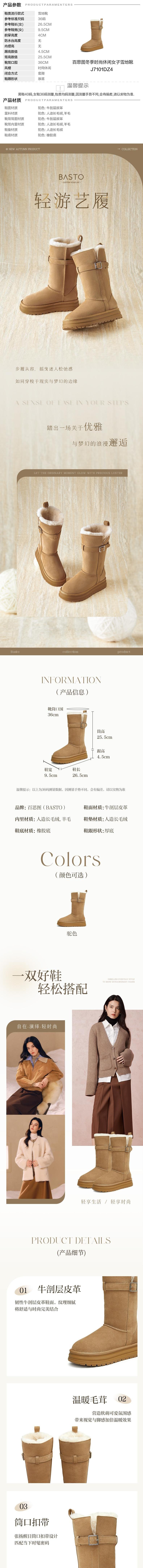 BASTO百思图 女雪地靴 J7101DZ4