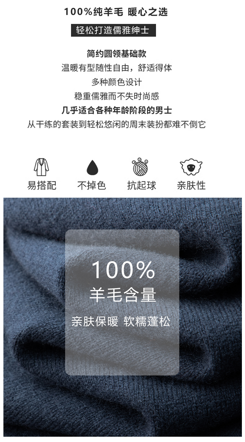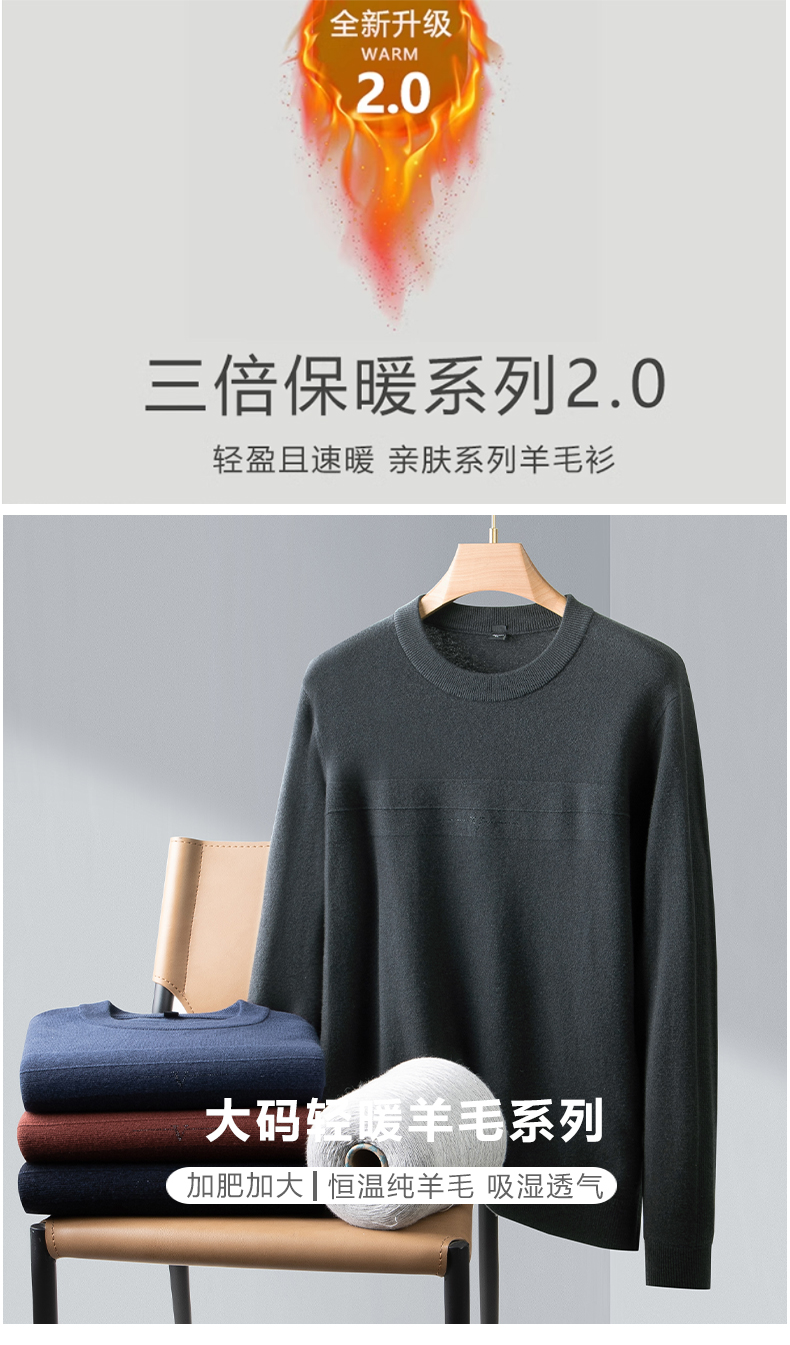 100%羊毛【新款DDS】大依优型大码男装羊毛衫圆领毛衣针织衫休闲加肥加大男士胖子大码内搭上衣