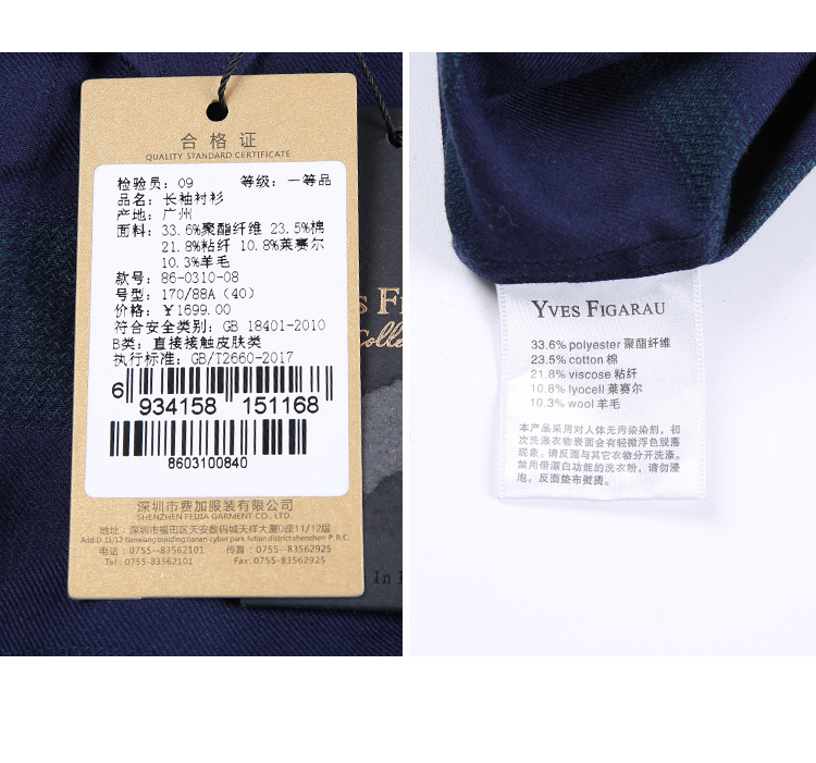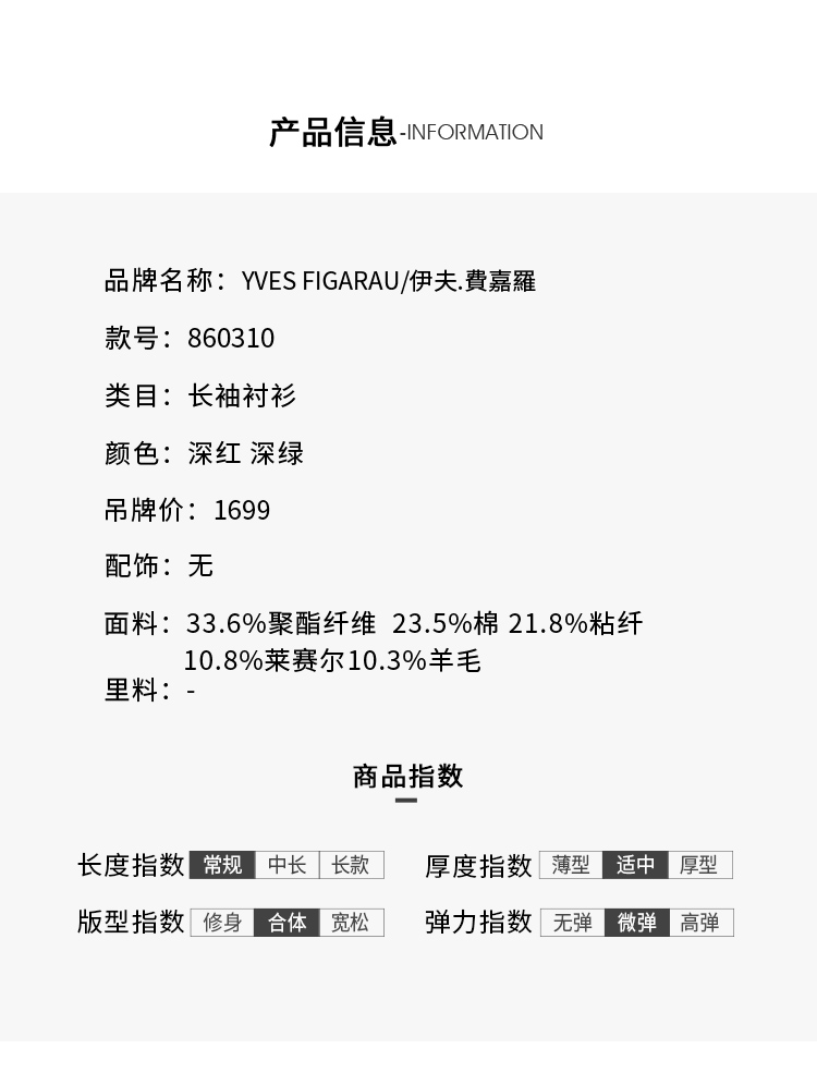 YvesFigarau伊夫·费嘉罗秋冬商务休闲简约舒适保暖长袖衬衫860310