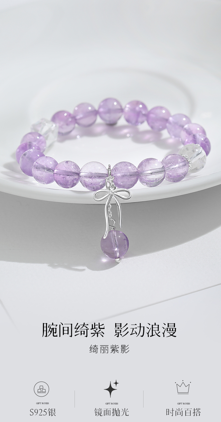 Winy s925银绮丽紫影手链搭配水晶/紫晶配证书送女友闺蜜节日生日礼物