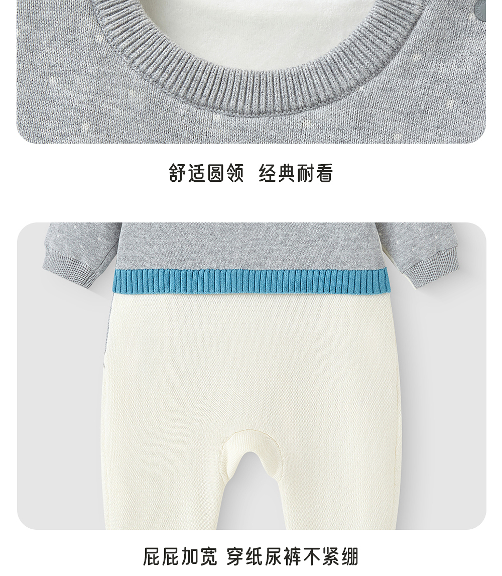 【商场同款】英氏婴儿爬服长款蛤衣连身衣长袖保暖冬季男宝新款
