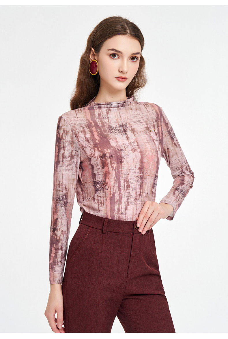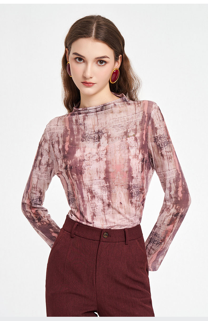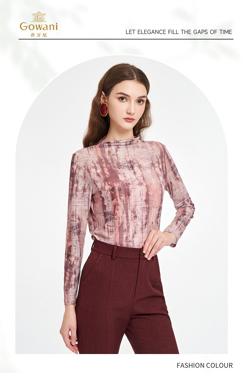 乔万尼2025秋新品柔美梦幻水彩晕染透气长袖打底T恤ED3C288
