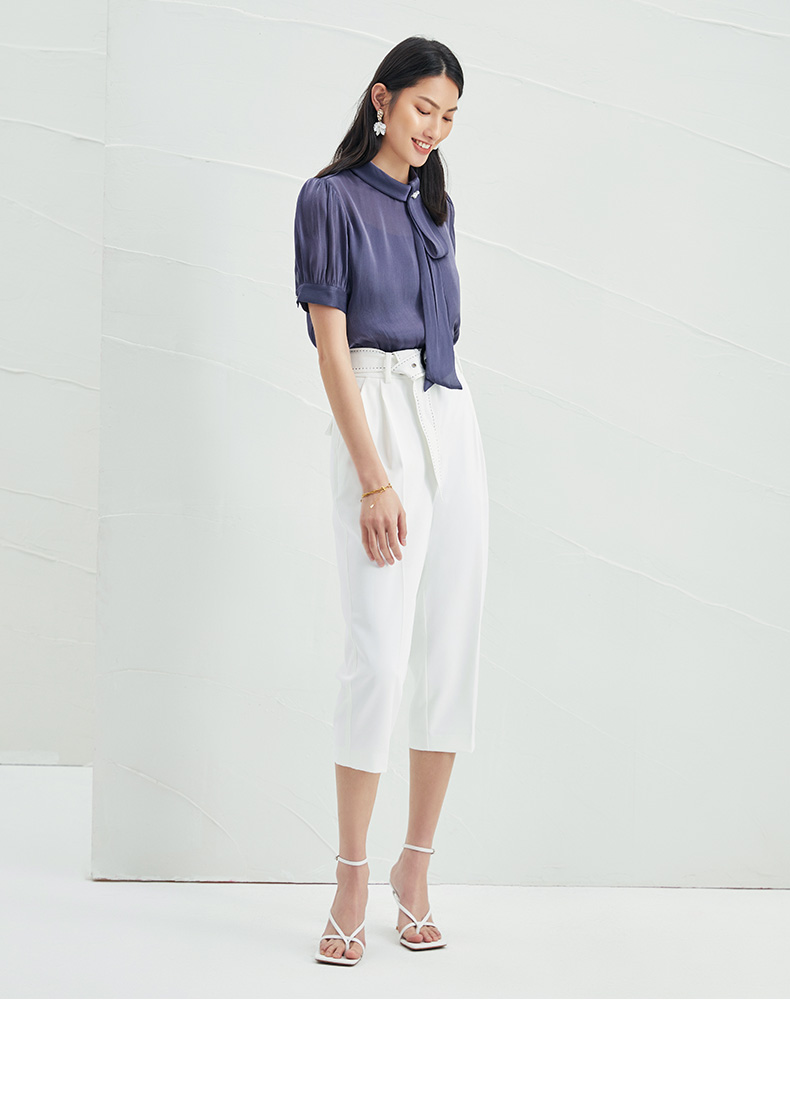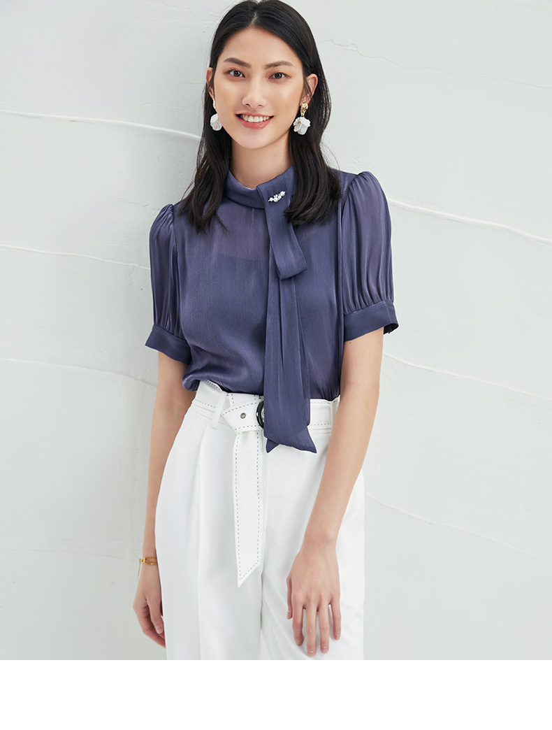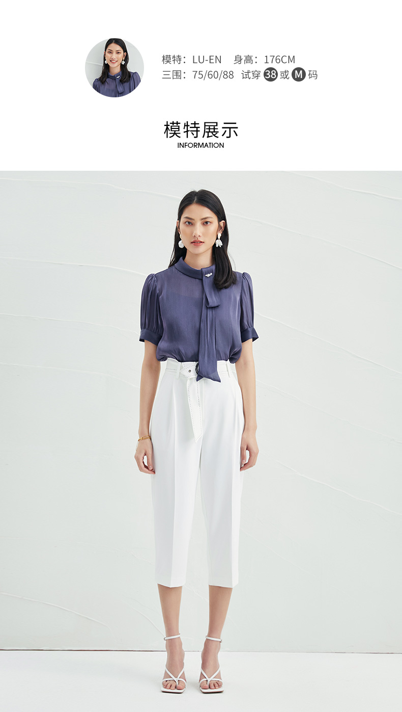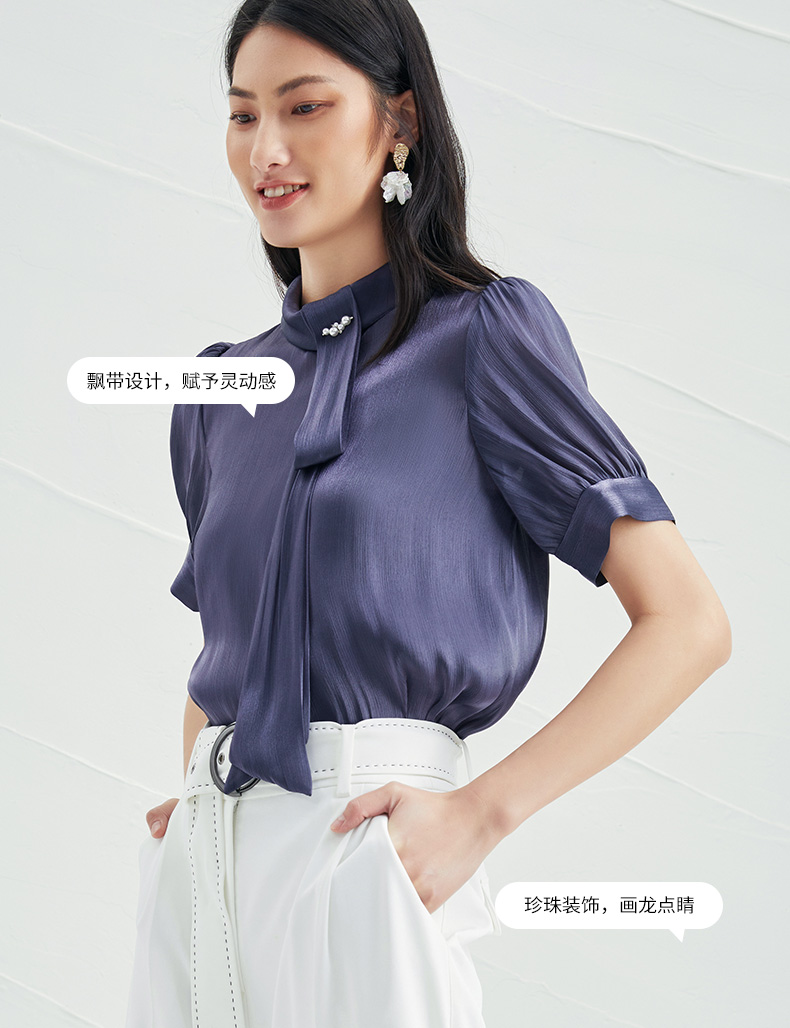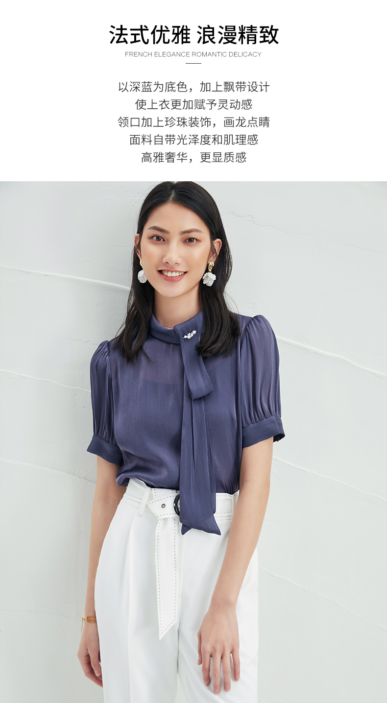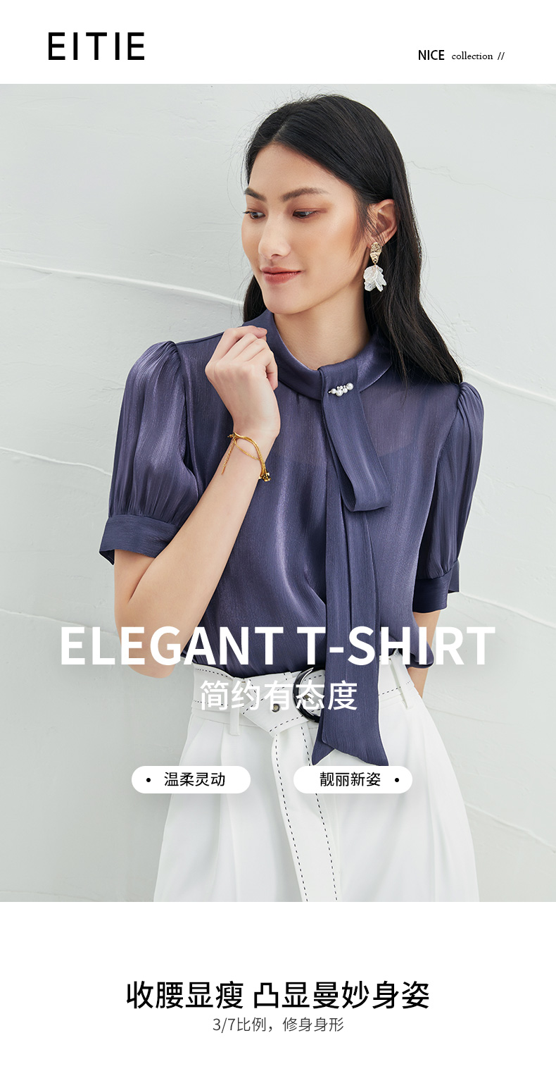 EITIE爱特爱女装早秋雪纺长袖套套系带上衣T恤雪纺衫女5713411