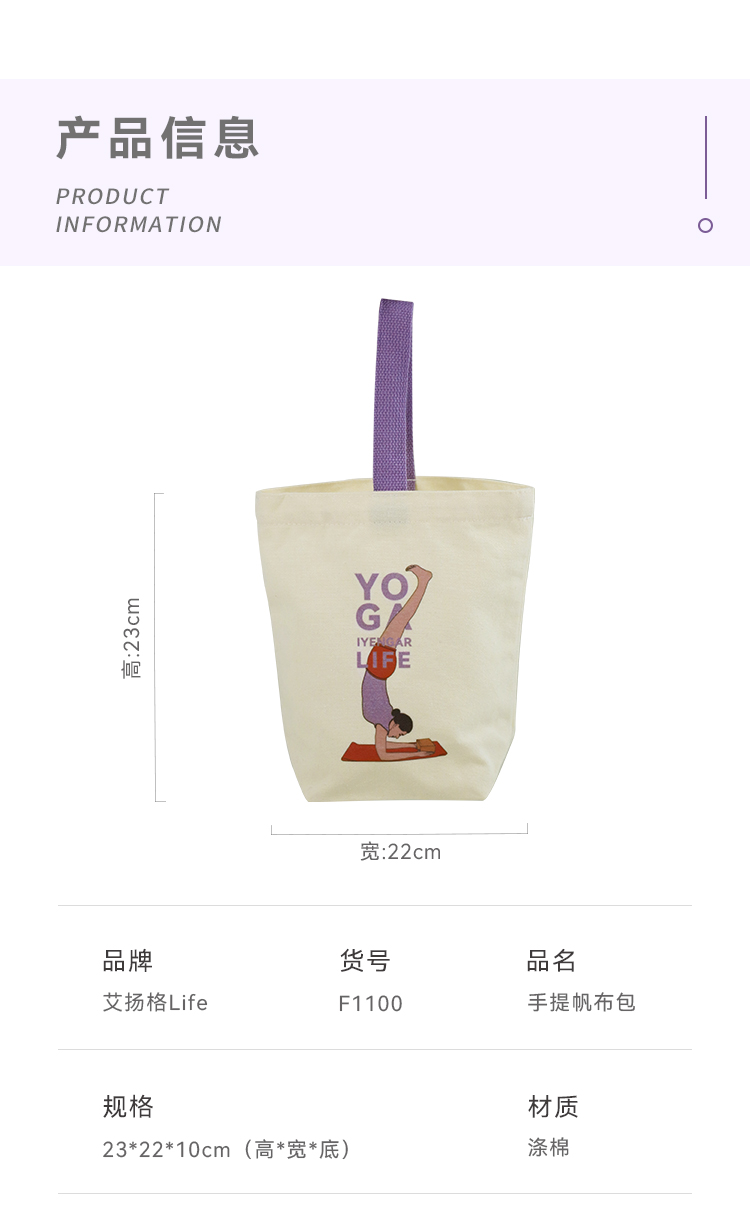 艾扬格life F1100孔雀起舞式瑜伽手提帆布包 轻盈简约,生活随行
