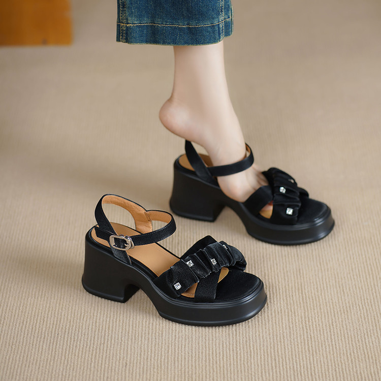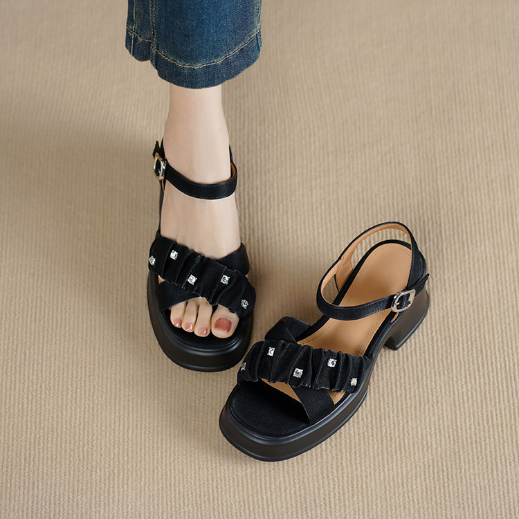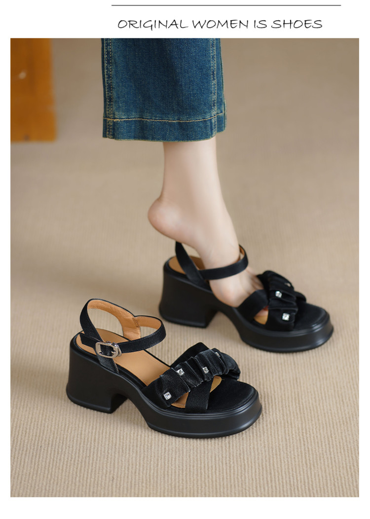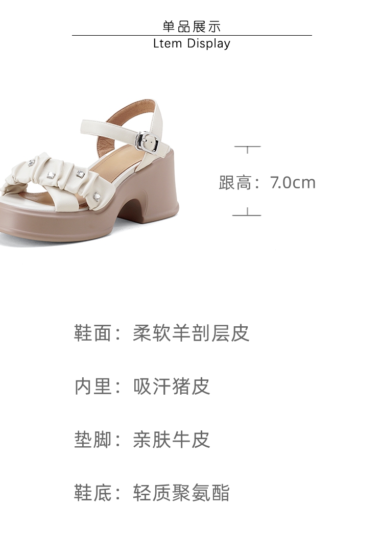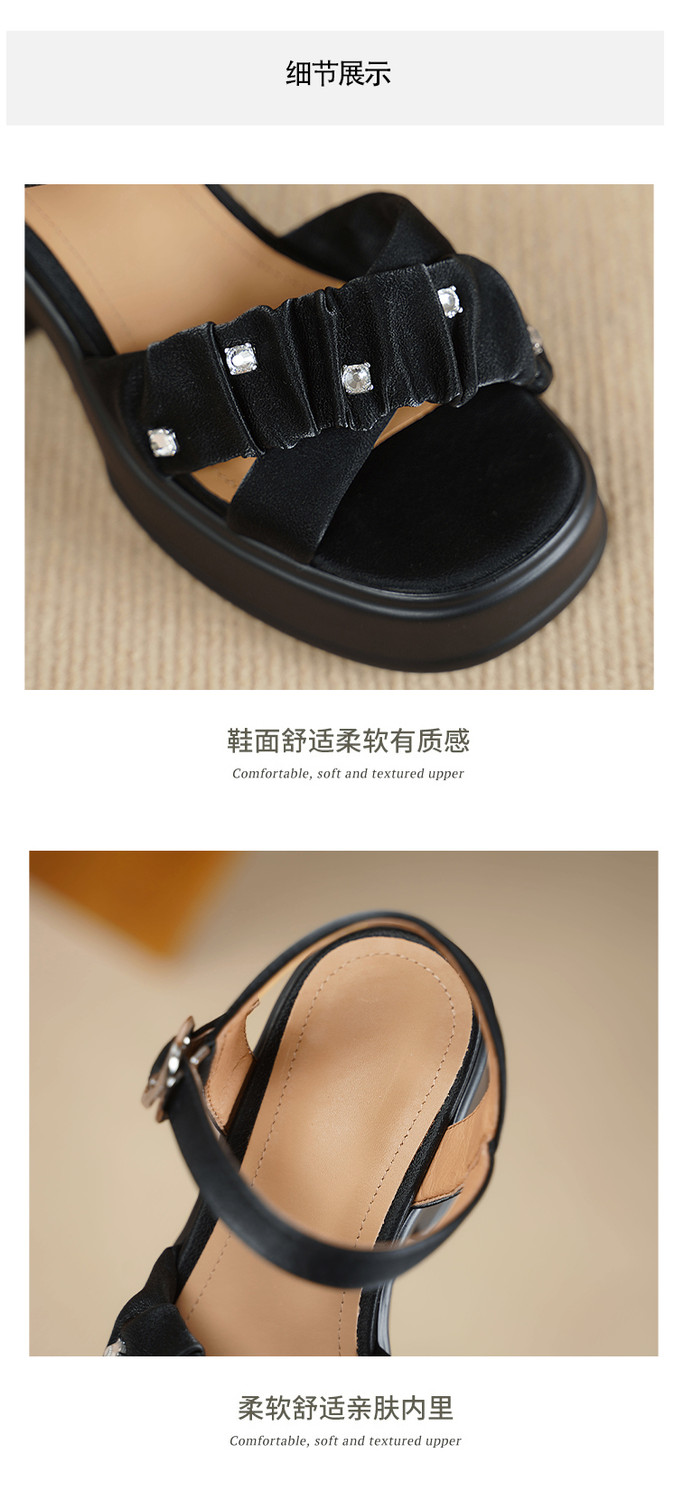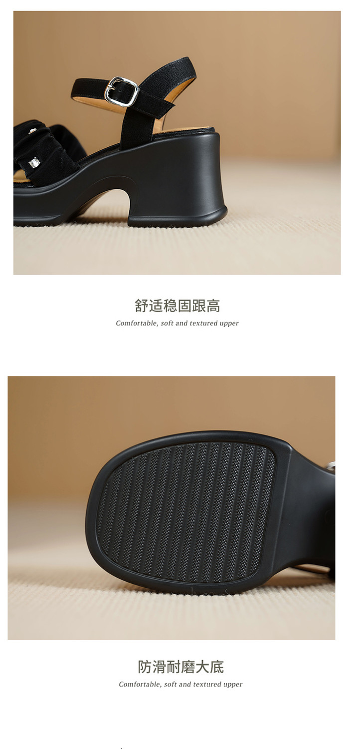 【预售5天】夏季新款外穿凉鞋女粗跟厚底一字口露趾松糕软底水钻凉鞋DTN&530-6