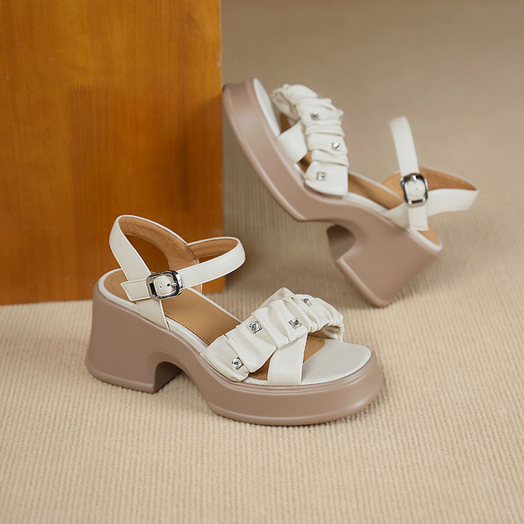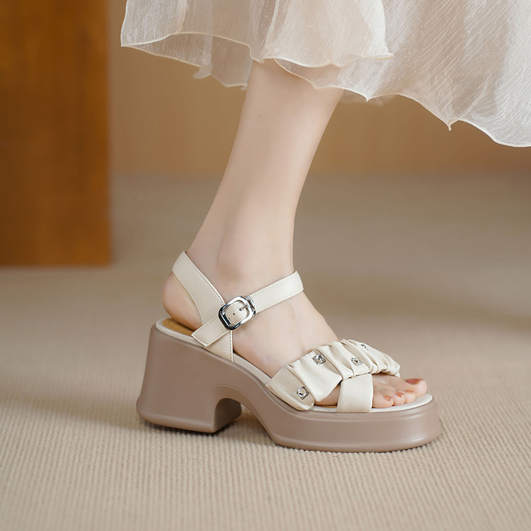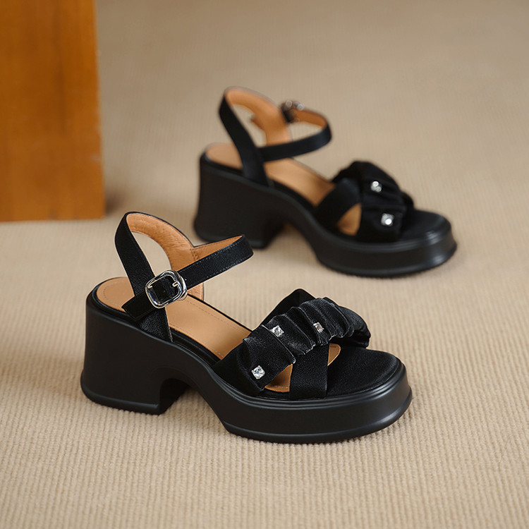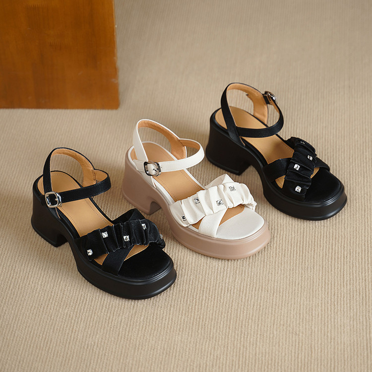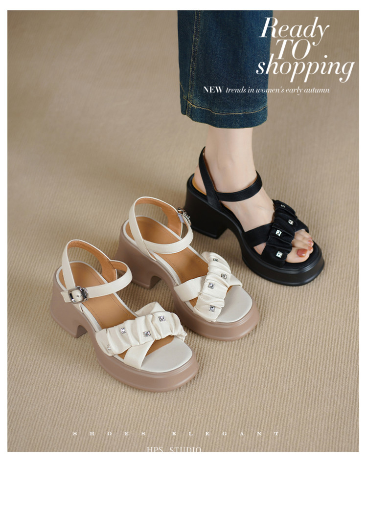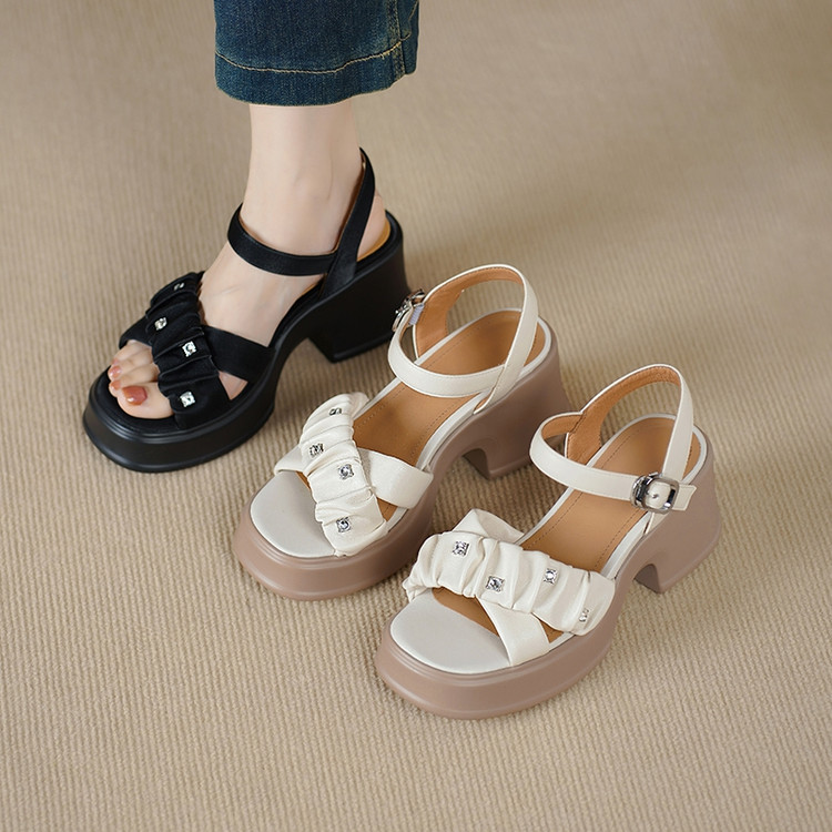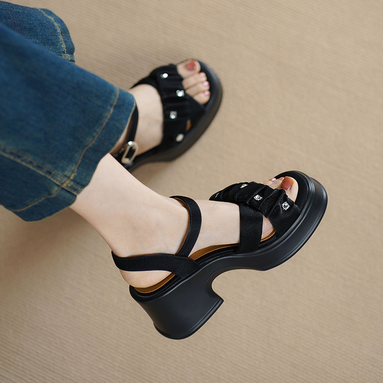 【预售5天】夏季新款外穿凉鞋女粗跟厚底一字口露趾松糕软底水钻凉鞋DTN&530-6