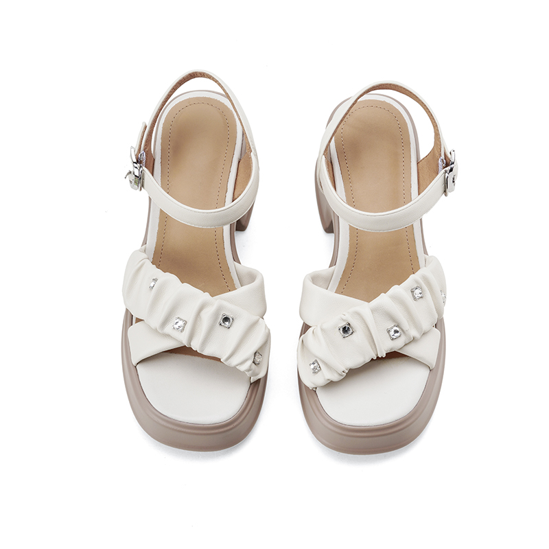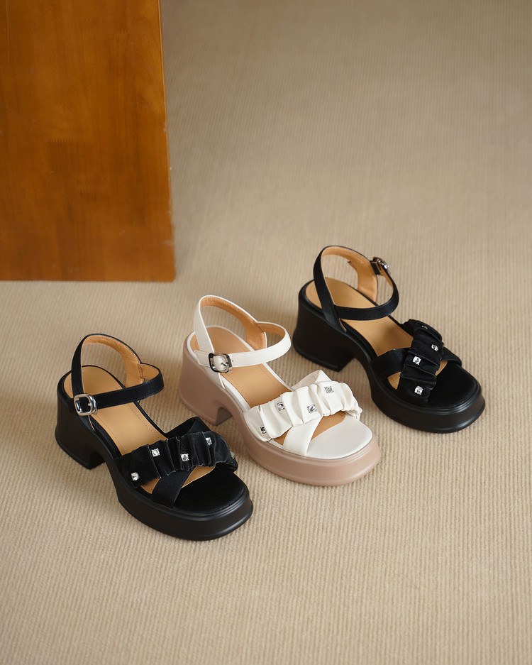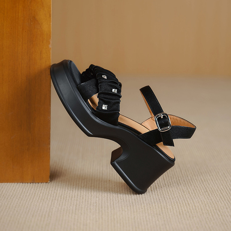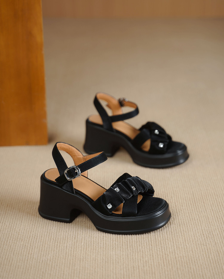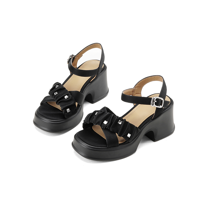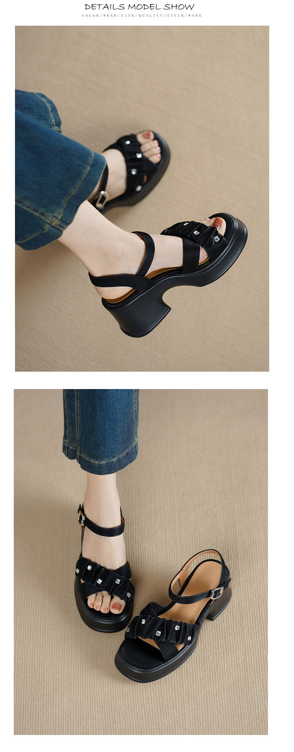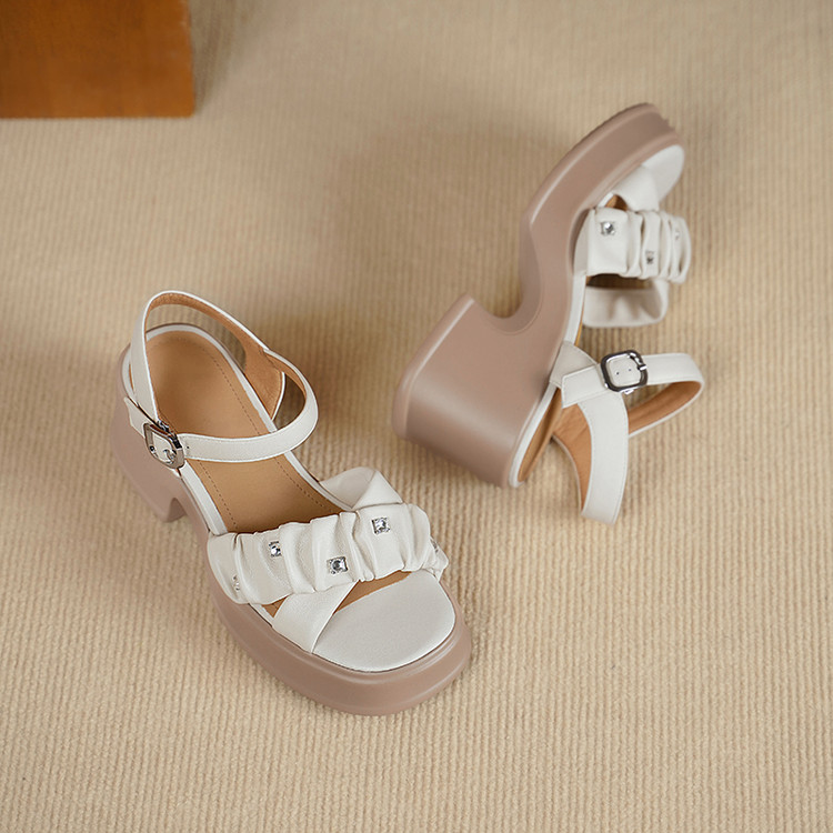 【预售5天】夏季新款外穿凉鞋女粗跟厚底一字口露趾松糕软底水钻凉鞋DTN&530-6