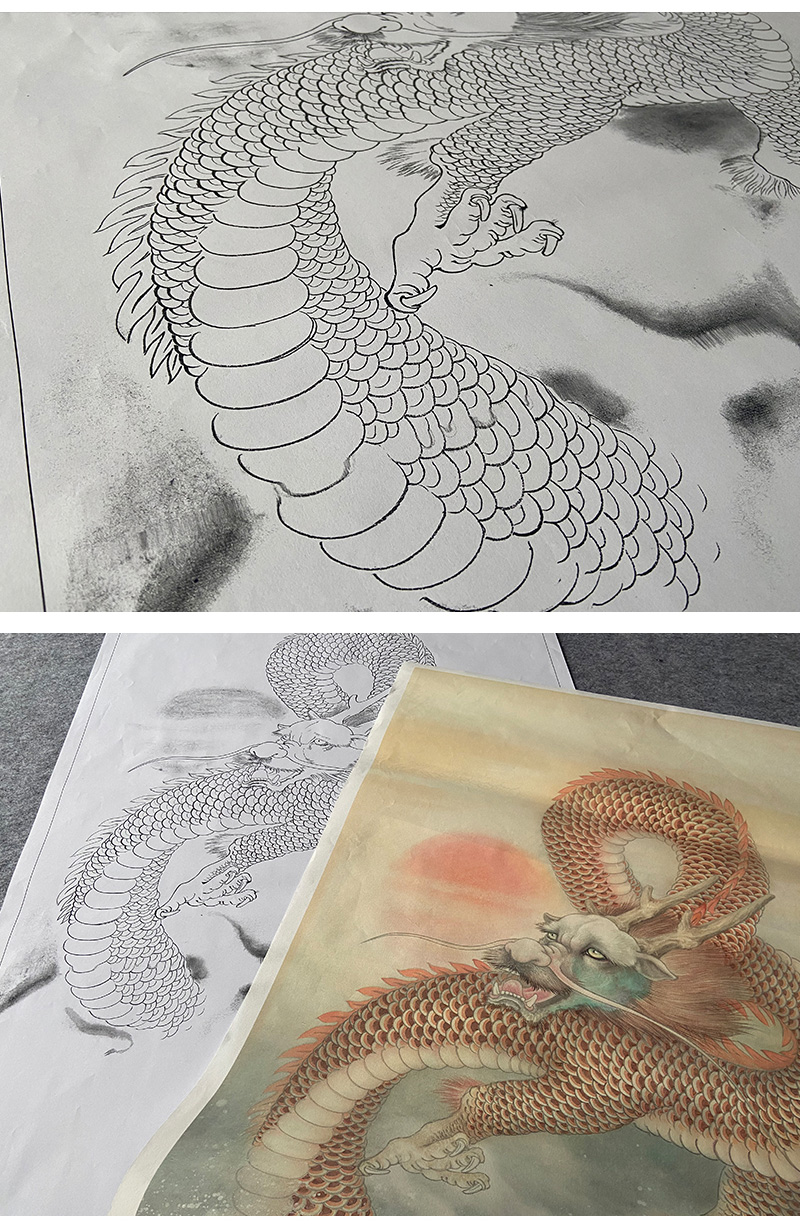 【大彩图】刘继彪工笔画白描底稿《龙》初学者临摹动物线稿A633