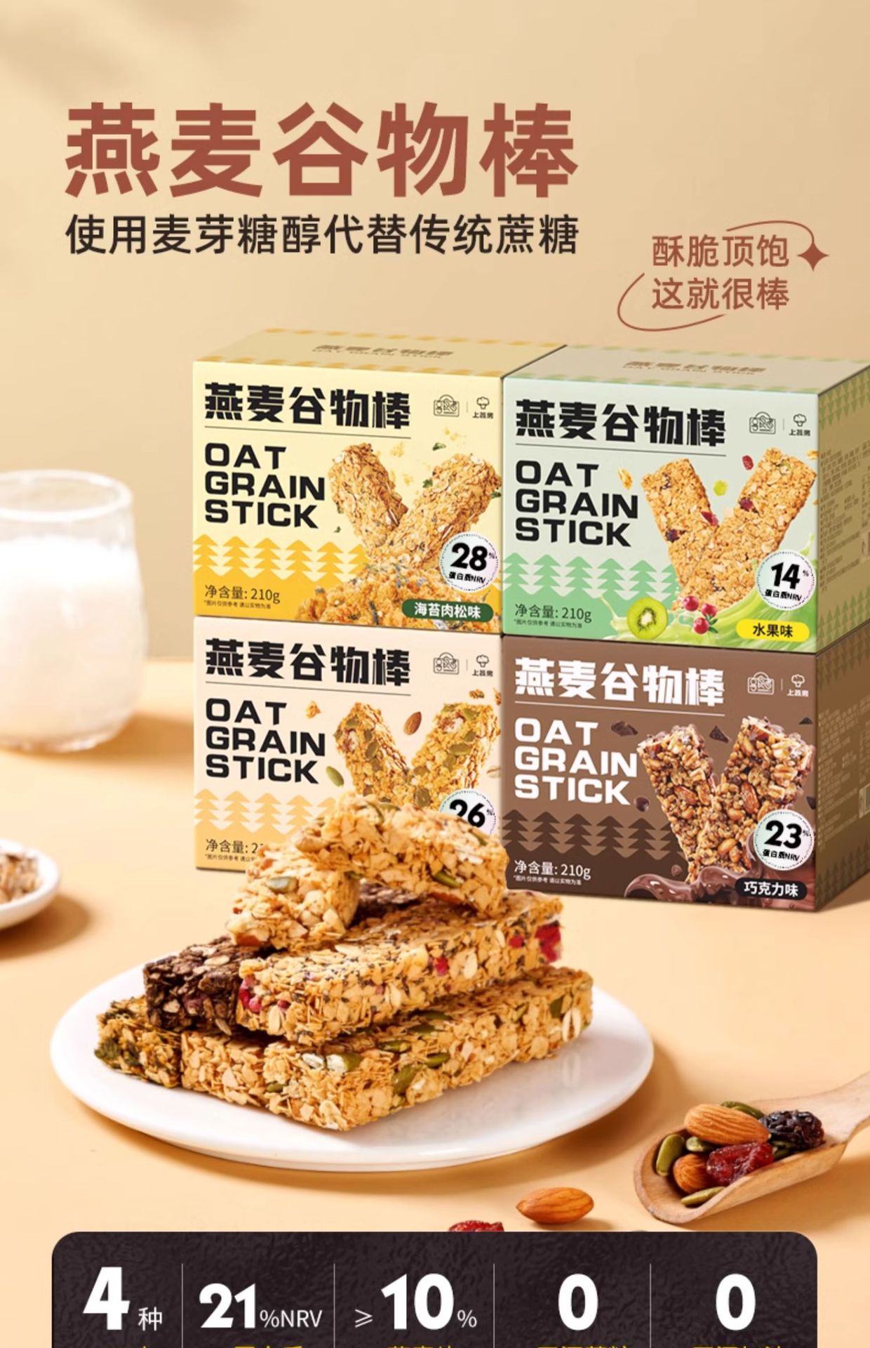 【十分香脆 满分谷力~】上蔬房蛋白棒 代餐燕麦脂能量肪 饼干无糖精 解馋热量谷物 饱腹零食坚果早餐-QQ