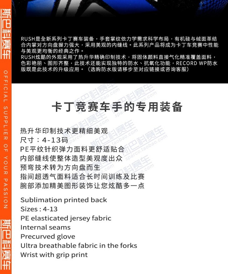 长款卡丁训练手套 RUSH