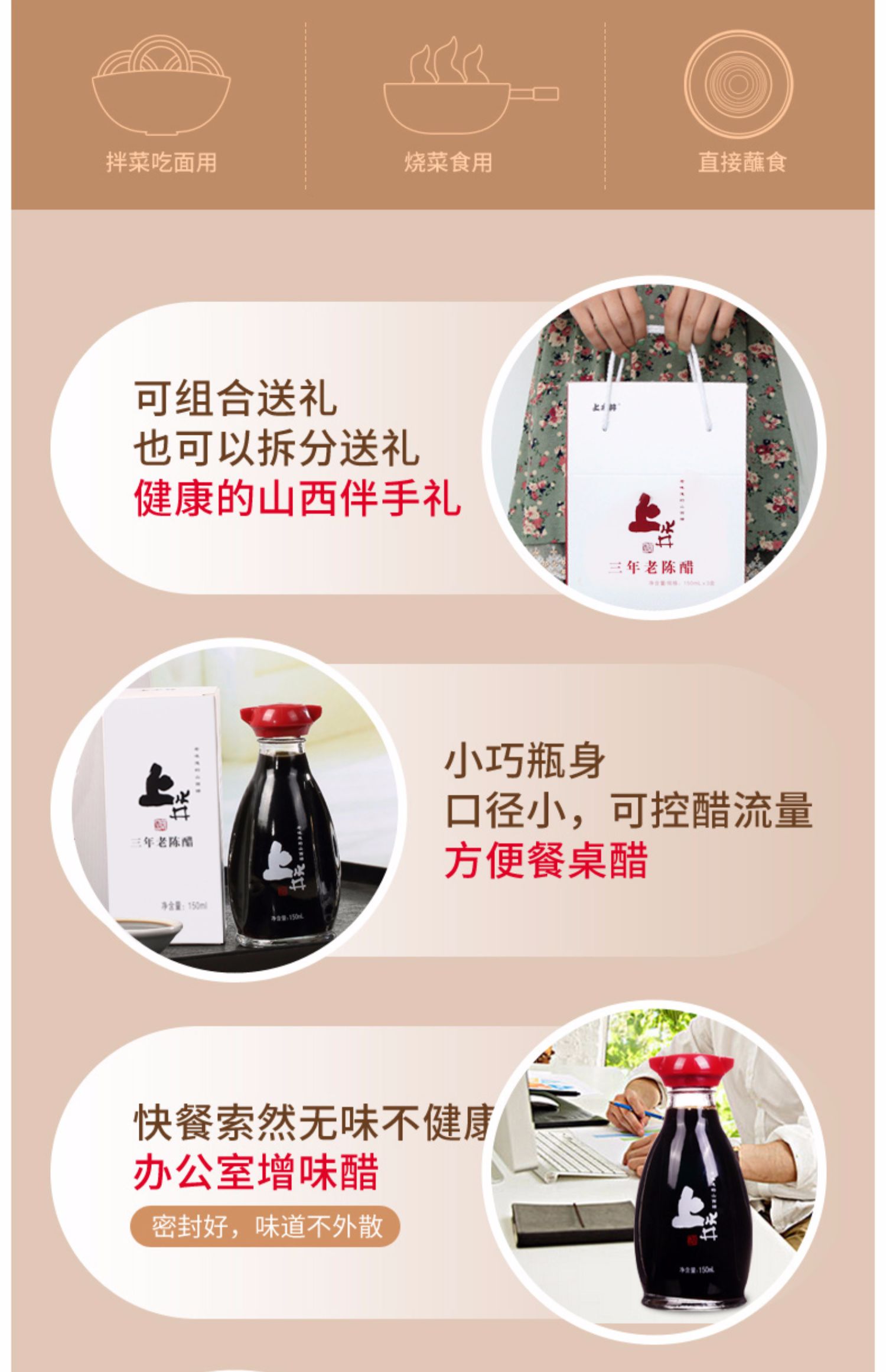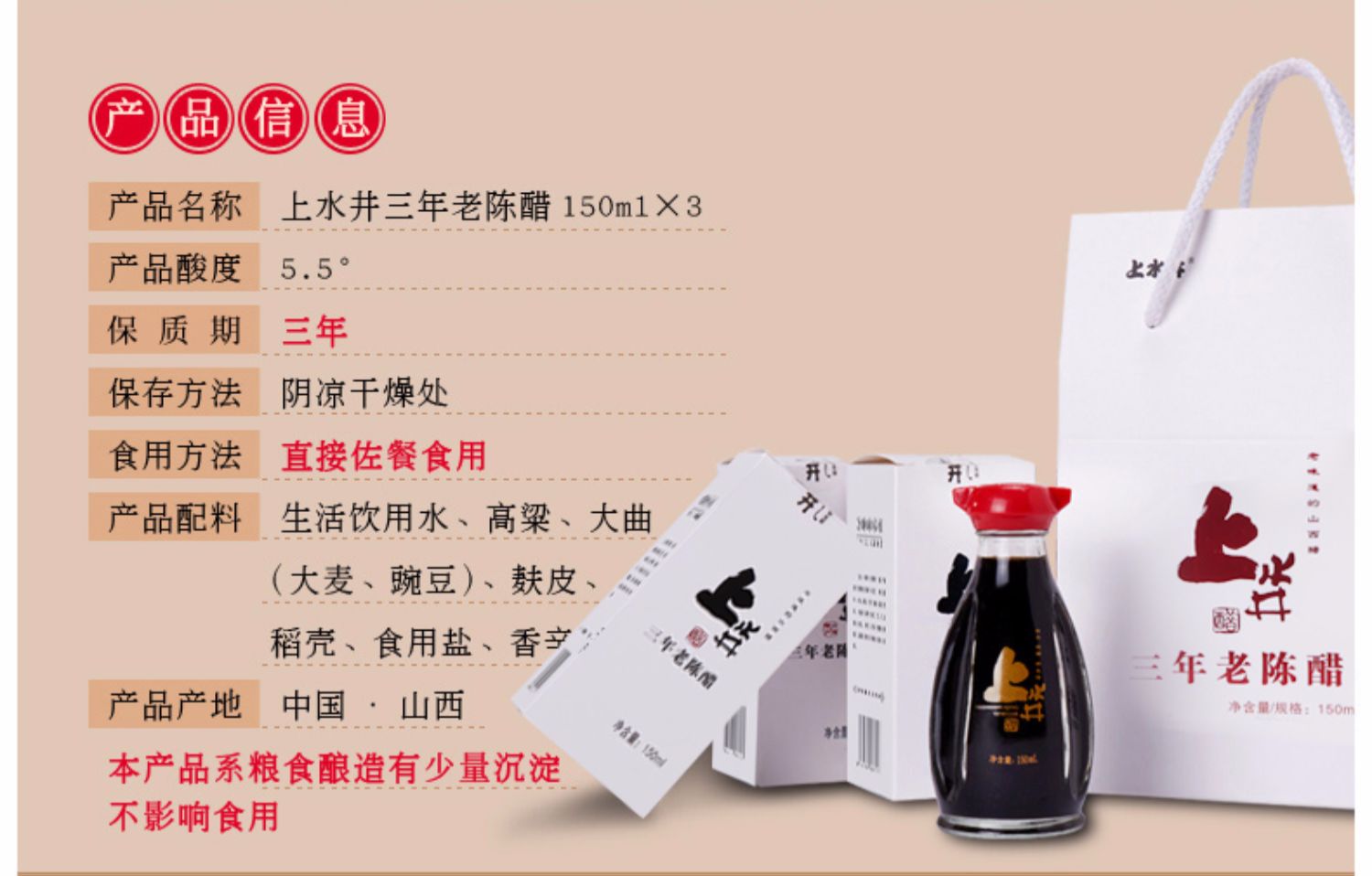 【三年陈酿礼盒】山西上水井老陈醋三年陈酿150ml*3 礼盒醋送礼馈赠佳品