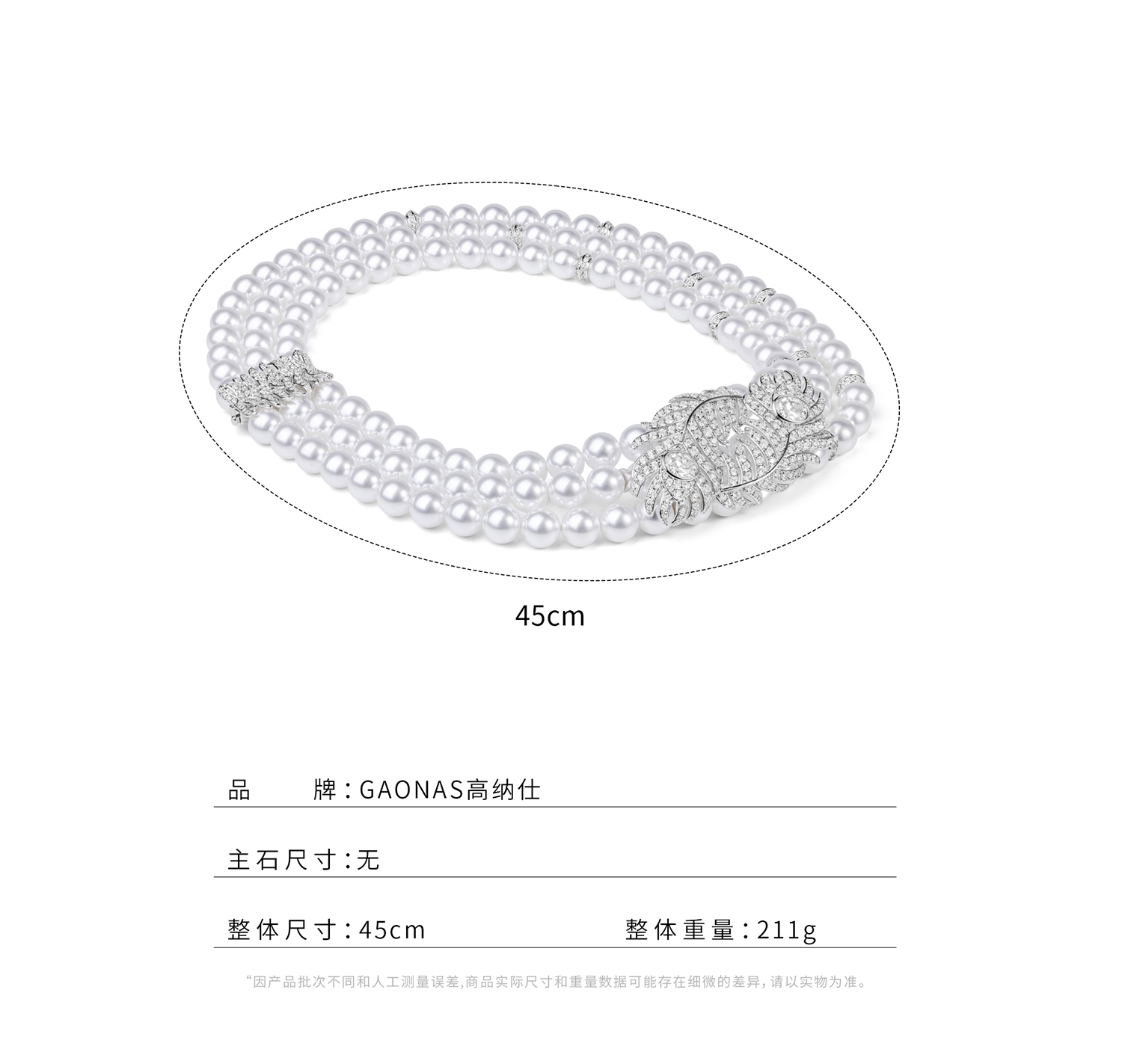 GAONAS 羽翎珠华 臻奢羽毛白色珠项链11212XW